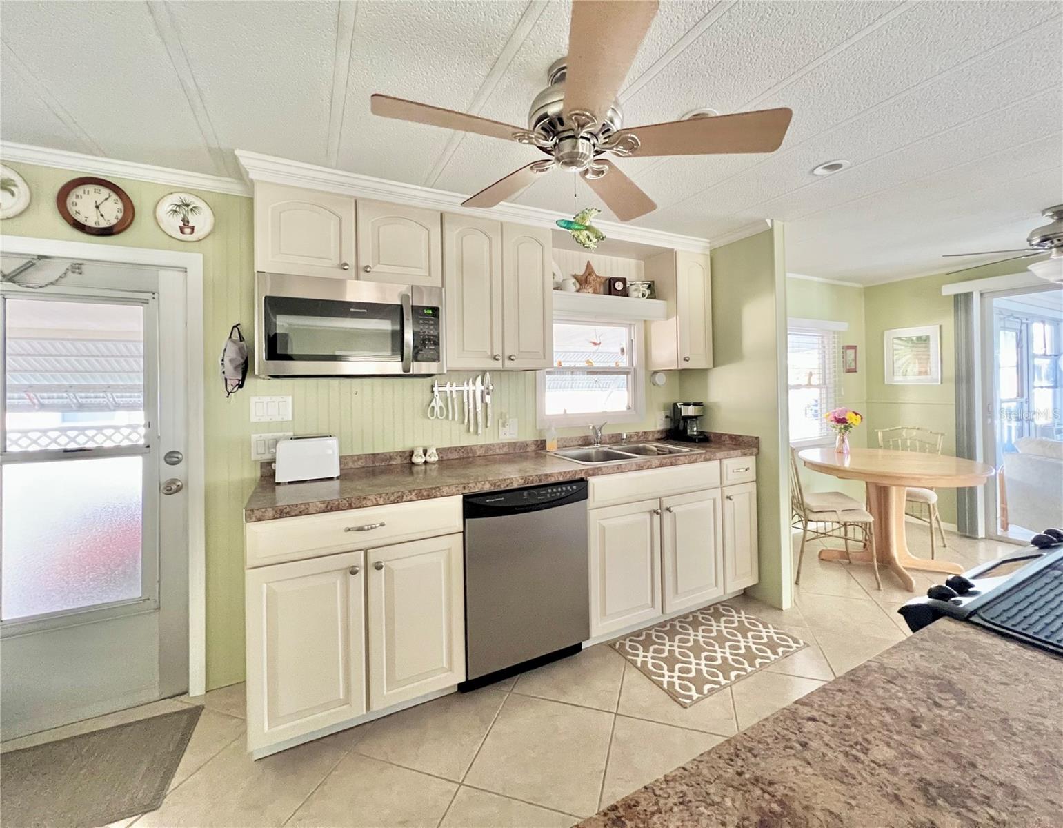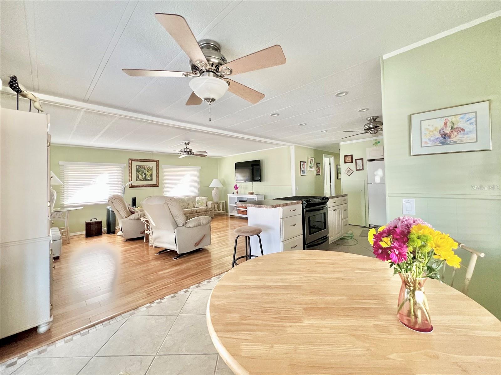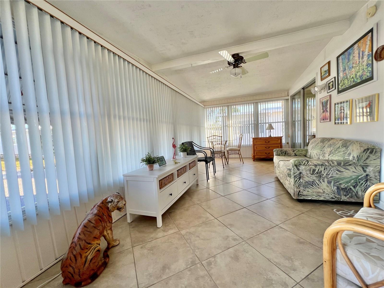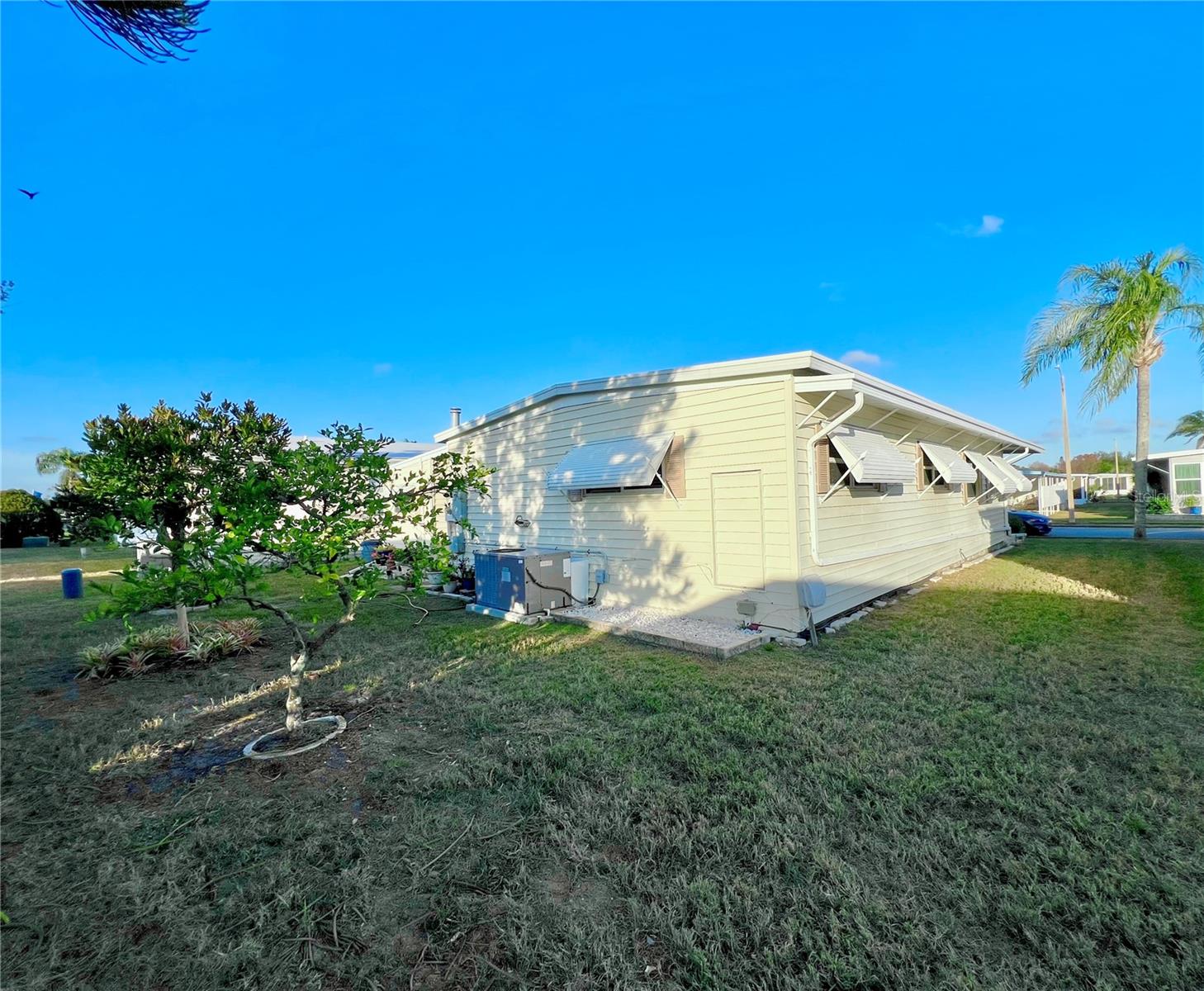 This charming 2-bedroom, 2-bath home offers 960 sq ft of living space, plus a 200sq ft Florida room that faces East and adds extra comfort and functionality. With great curb appeal, the home features a parking space for two vehicles and a golf cart under carport. The front Florida room faces east, making it the perfect spot to enjoy your morning coffee and watch the sunrise. Updated windows were installed throughout, allowing plenty of natural light to flow through. The kitchen has been thoughtfully updated, with a wall professionally removed to create an open-concept space that connects seamlessly to the living room. The kitchen island is equipped with a stove, and there is still ample space for food preparation. The home comes furnished, minus a few personal items, wall hangings, and the sellers' two recliners, which will be taken with them. Additional highlights include a large hallway bathroom with a walk-in shower, a storage shed located under the carport with a washer, dryer, and wash tub, and several updates to the home’s systems: the roof was replaced in December 2016, the outside electrical box was upgraded in 2016, the water heater was replaced in 2018, and the A/C was installed in November 2015. This home offers both comfort and functionality, making it an excellent choice for your next move. Fairway Village, a premier 55+ manufactured home community, includes a share in the list price, providing additional value. The community offers an impressive array of amenities, including a newly opened 19,000 sq. ft. clubhouse featuring spaces for dances, bingo, card games, and more. Residents can also enjoy two pools, jacuzzis, eight covered shuffleboard courts, and a 9-hole par 3 golf course for a small fee. Ideally located near major attractions, airports, and beautiful beaches, Fairway Village provides an ideal setting for both year-round living and seasonal stays. This is a wonderful opportunity to join a vibrant and welcoming community and make the most of your retirement years. Schedule your private showing today!