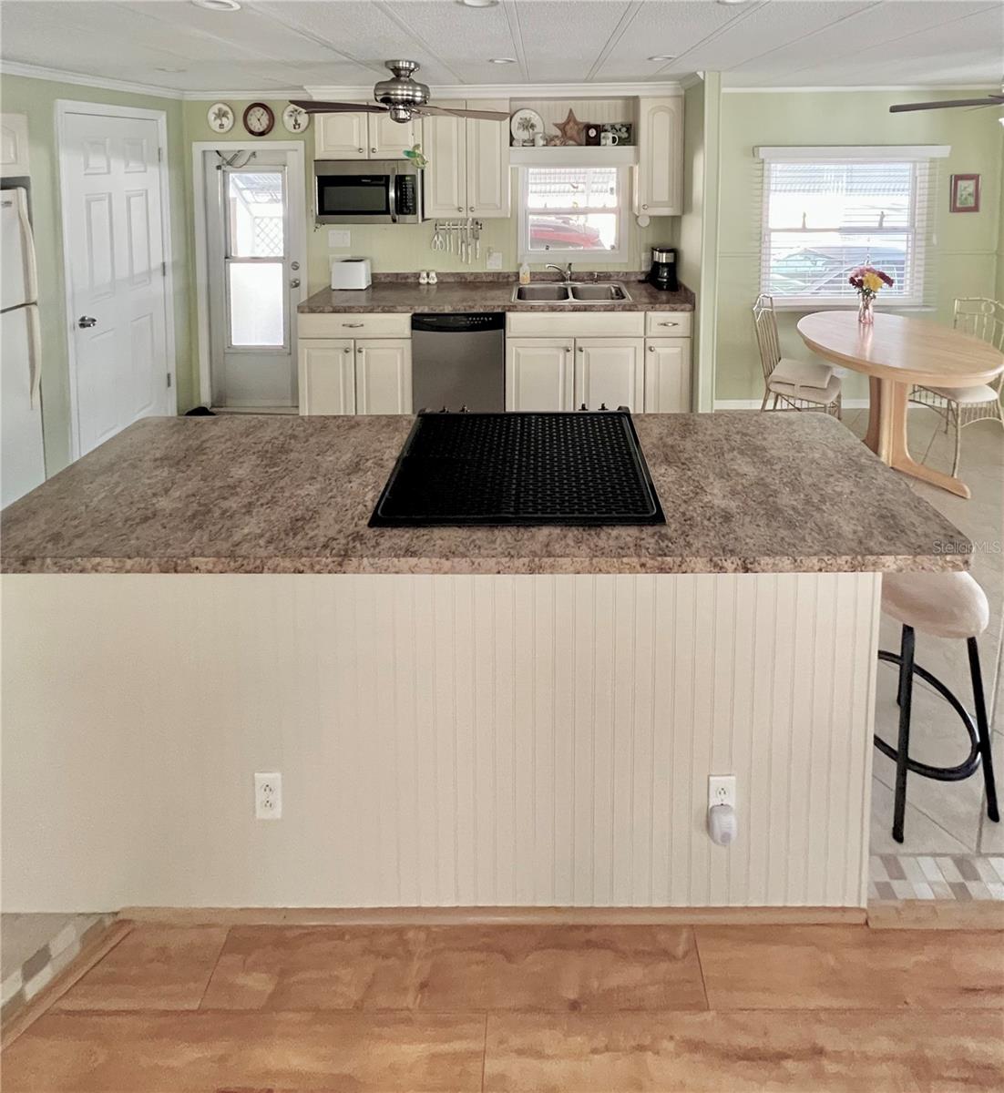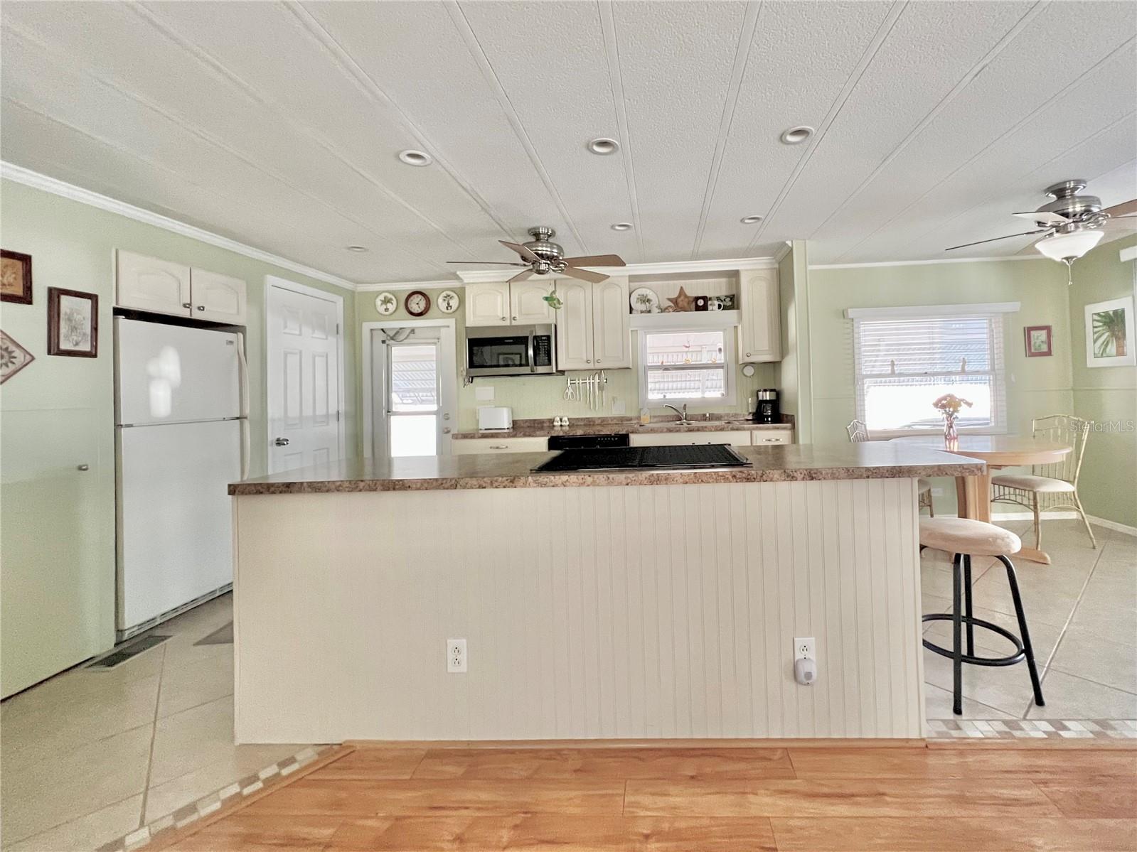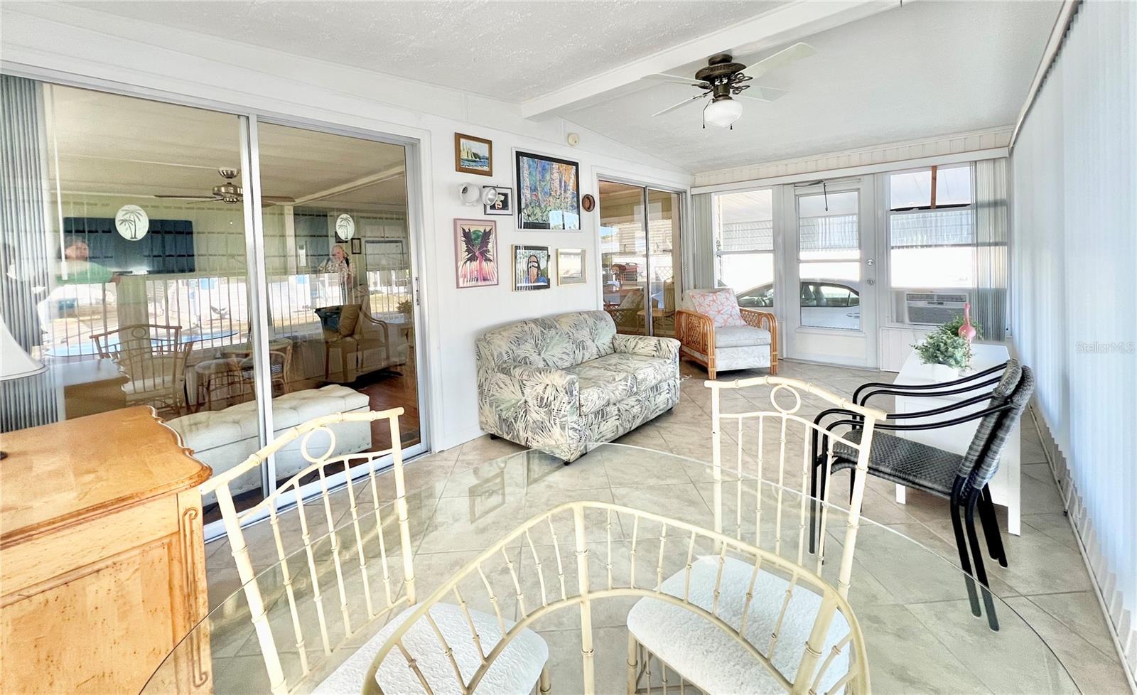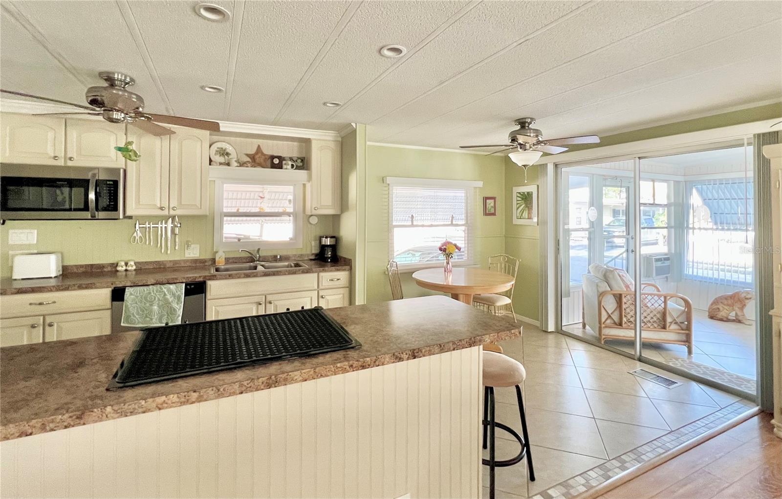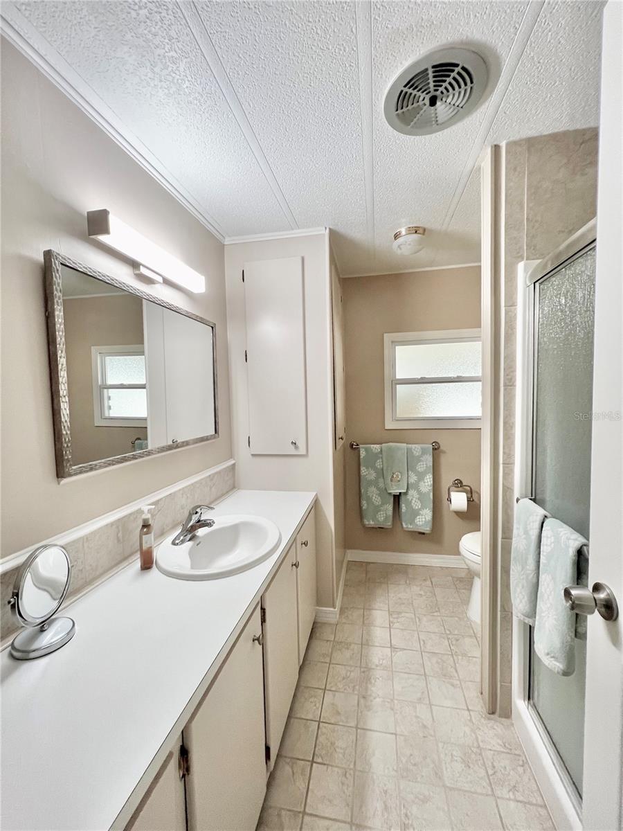 This charming 2-bedroom, 2-bath home offers 960 sq ft of living space, plus a 200sq ft Florida room that faces East and adds extra comfort and functionality. With great curb appeal, the home features a parking space for two vehicles and a golf cart under carport. The front Florida room faces east, making it the perfect spot to enjoy your morning coffee and watch the sunrise. Updated windows were installed throughout, allowing plenty of natural light to flow through. The kitchen has been thoughtfully updated, with a wall professionally removed to create an open-concept space that connects seamlessly to the living room. The kitchen island is equipped with a stove, and there is still ample space for food preparation. The home comes furnished, minus a few personal items, wall hangings, and the sellers' two recliners, which will be taken with them. Additional highlights include a large hallway bathroom with a walk-in shower, a storage shed located under the carport with a washer, dryer, and wash tub, and several updates to the home’s systems: the roof was replaced in December 2016, the outside electrical box was upgraded in 2016, the water heater was replaced in 2018, and the A/C was installed in November 2015. This home offers both comfort and functionality, making it an excellent choice for your next move. Fairway Village, a premier 55+ manufactured home community, includes a share in the list price, providing additional value. The community offers an impressive array of amenities, including a newly opened 19,000 sq. ft. clubhouse featuring spaces for dances, bingo, card games, and more. Residents can also enjoy two pools, jacuzzis, eight covered shuffleboard courts, and a 9-hole par 3 golf course for a small fee. Ideally located near major attractions, airports, and beautiful beaches, Fairway Village provides an ideal setting for both year-round living and seasonal stays. This is a wonderful opportunity to join a vibrant and welcoming community and make the most of your retirement years. Schedule your private showing today!
