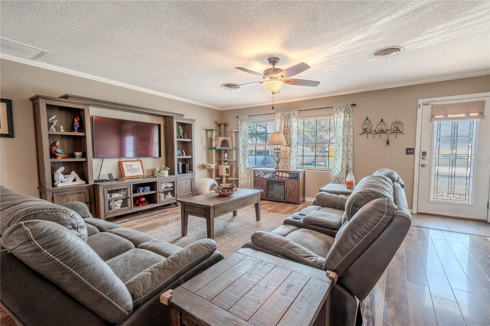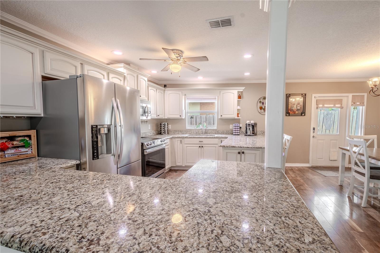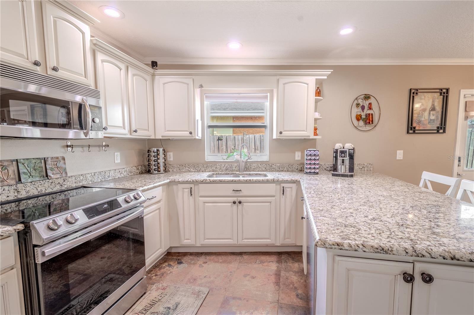 Bright & Spacious 3-Bedroom, 2-Bath Home – Steps from Belleair Beach! Welcome home to this beautifully maintained 3-bedroom, 2-bath home with a split, open floor plan and a 2-car garage in a prime location! Situated on a large corner lot in a family-friendly neighborhood, this home offers modern updates, timeless charm, and no HOA fees, no deed restrictions, and no flood insurance required! Inside, you will find a spacious living room filled with natural light, featuring elegant crown molding, rich wood flooring, and a picture window. A beveled glass front door welcomes guests in style, while a ceiling fan with a light kit adds comfort. The open-concept kitchen is delightful, with granite countertops, wood cabinetry with soft-close doors and drawers, and a stainless steel appliance suite, including a ThinQ French door refrigerator (2021) with an ice maker and water dispenser, and a ThinkQ electric range with air fryer and convection oven (2021). Additional highlights include recessed lighting, a ceiling fan, tile flooring, a breakfast bar, and a double-basin stainless steel sink perfectly positioned beneath a window with a backyard view. The adjacent dining room is perfect for gatherings, featuring wood flooring, crown molding, and a stylish six-globe chandelier. The open floor plan makes entertaining a breeze! The primary bedroom features wood flooring, a ceiling fan, a spacious walk-in closet, and an ensuite bath. The primary bathroom boasts a mirrored vanity with storage, a step-in shower, and a relaxing jetted tub. The second bedroom features a built-in closet, tile flooring, and a ceiling fan, while the 2nd bathroom offers dual sinks, a mirrored vanity, ceramic tile flooring, and a tub/shower combination. Bedroom 3 features terrazzo flooring, a builing in closet and a ceiling fan with light kit. Additional features include: NEW ROOF – January 2025Industrial-grade A/C Hot Water Heater – Sept 2020 ADT Security System Prime Location! Take a leisurely 15-minute stroll to Belleair Beach or enjoy quick access to airports, parks, shopping, dining, and the scenic Pinellas Trail. This move-in-ready home offers the perfect blend of modern convenience, space, and an unbeatable location. Schedule your private showing today!