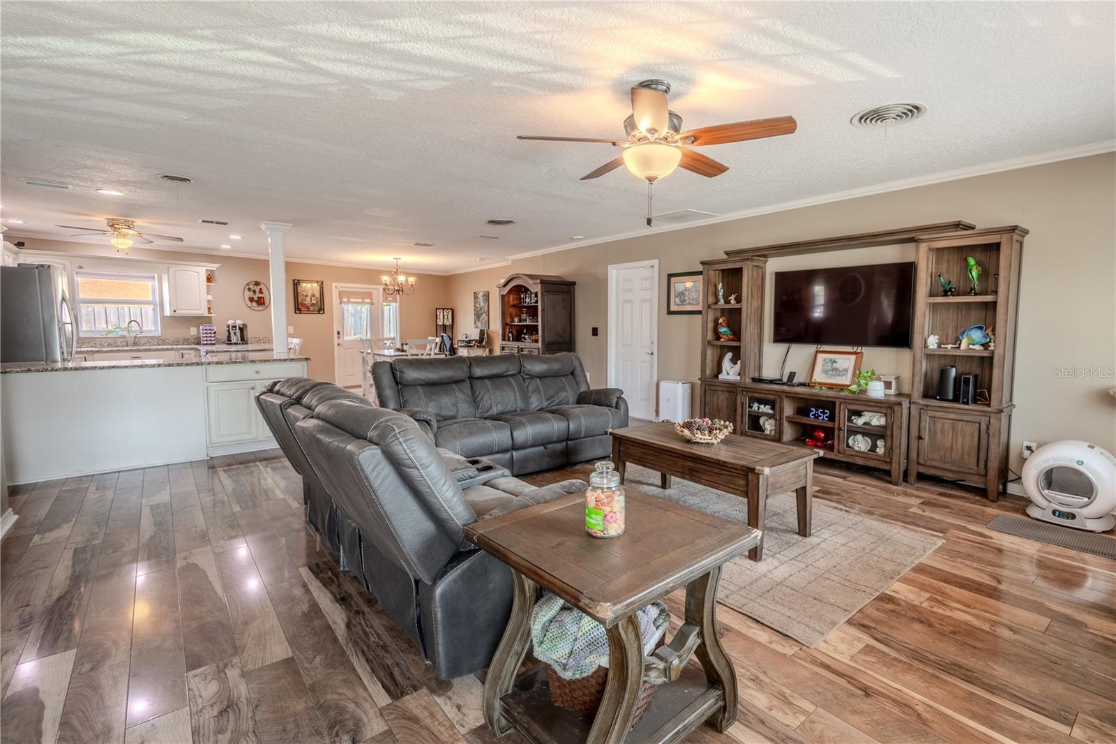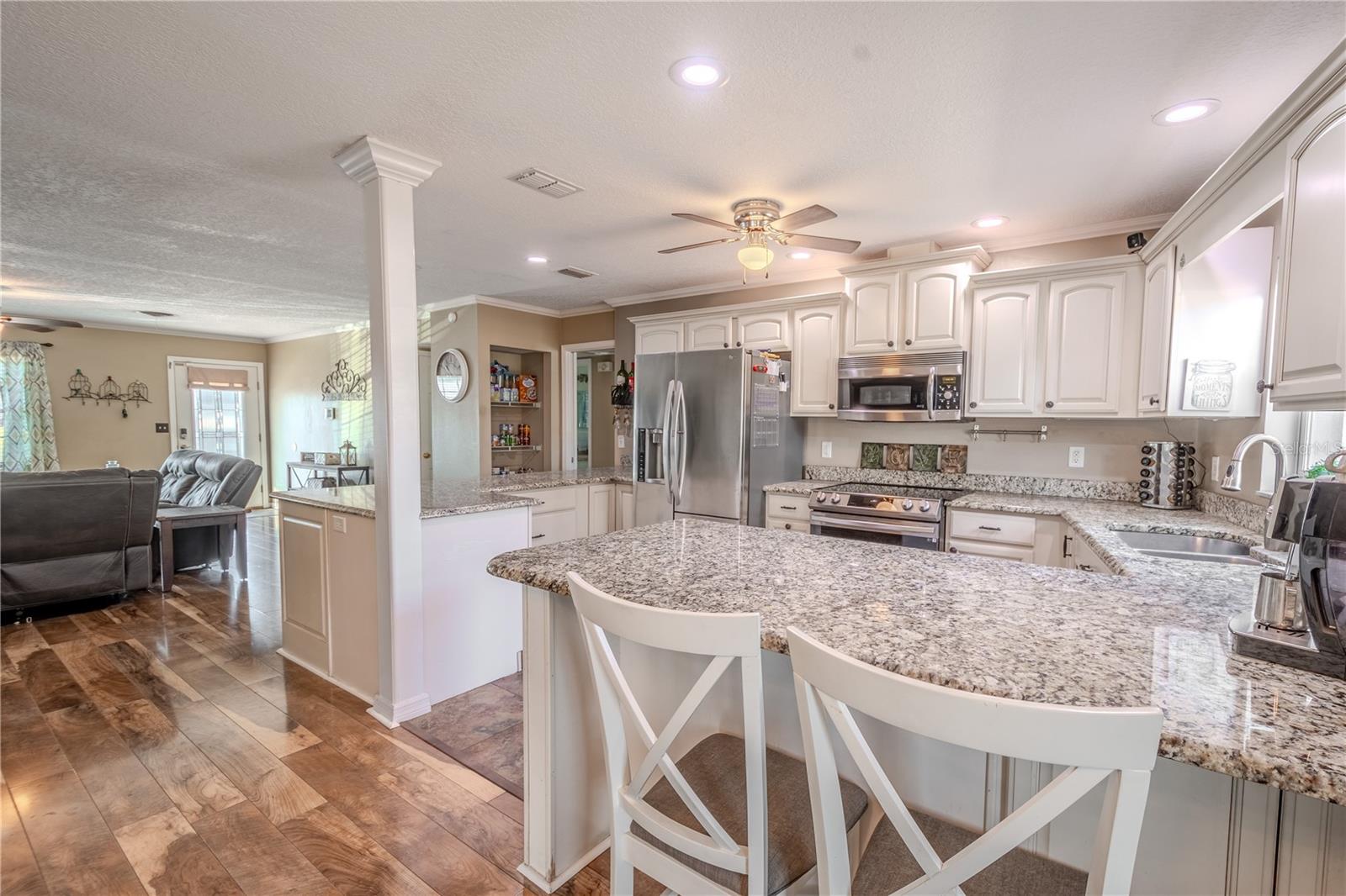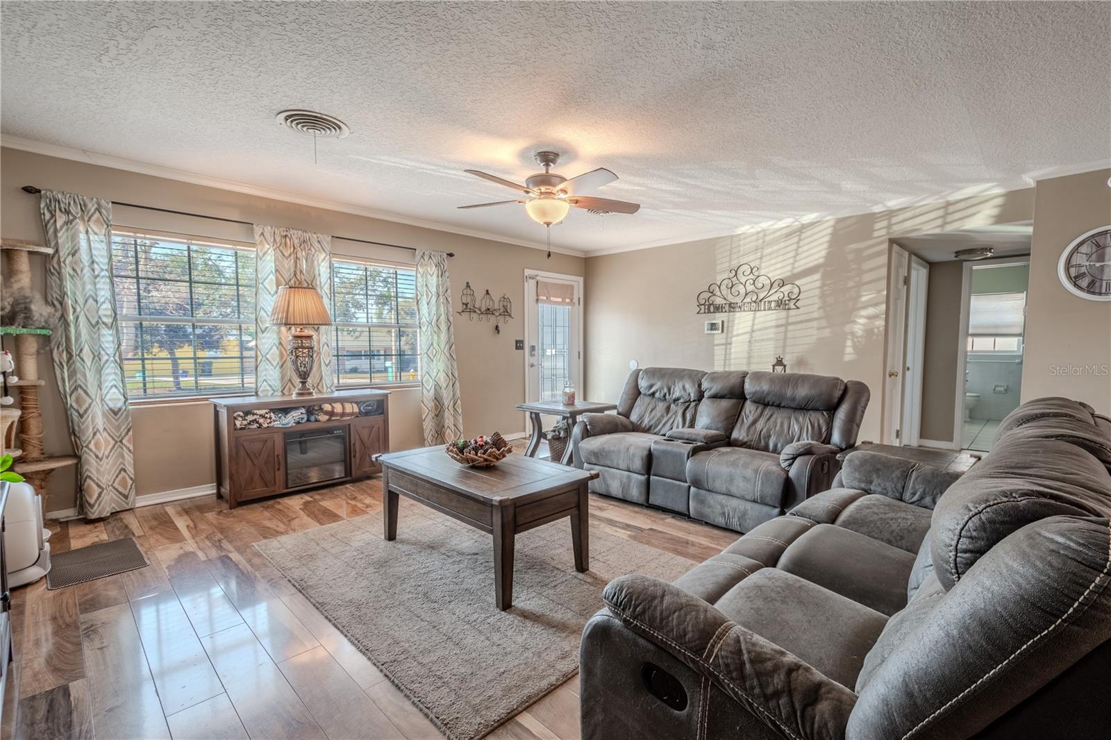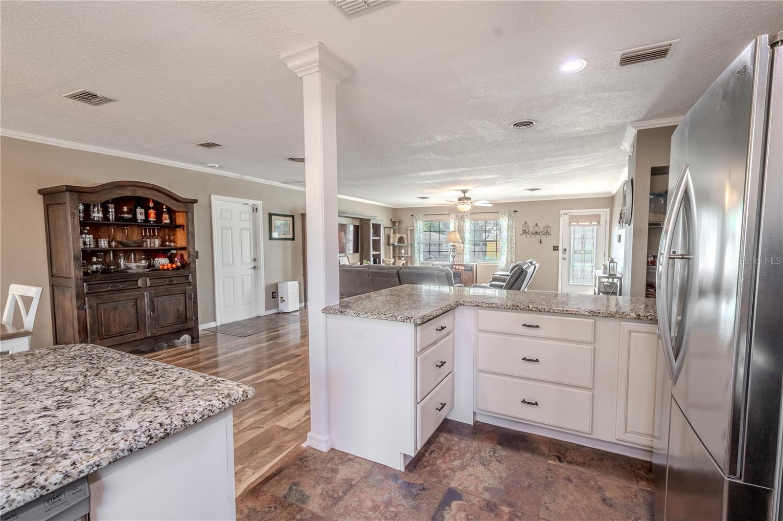 Bright & Spacious 3-Bedroom, 2-Bath Home – Steps from Belleair Beach! Welcome home to this beautifully maintained 3-bedroom, 2-bath home with a split, open floor plan and a 2-car garage in a prime location! Situated on a large corner lot in a family-friendly neighborhood, this home offers modern updates, timeless charm, and no HOA fees, no deed restrictions, and no flood insurance required! Inside, you will find a spacious living room filled with natural light, featuring elegant crown molding, rich wood flooring, and a picture window. A beveled glass front door welcomes guests in style, while a ceiling fan with a light kit adds comfort. The open-concept kitchen is delightful, with granite countertops, wood cabinetry with soft-close doors and drawers, and a stainless steel appliance suite, including a ThinQ French door refrigerator (2021) with an ice maker and water dispenser, and a ThinkQ electric range with air fryer and convection oven (2021). Additional highlights include recessed lighting, a ceiling fan, tile flooring, a breakfast bar, and a double-basin stainless steel sink perfectly positioned beneath a window with a backyard view. The adjacent dining room is perfect for gatherings, featuring wood flooring, crown molding, and a stylish six-globe chandelier. The open floor plan makes entertaining a breeze! The primary bedroom features wood flooring, a ceiling fan, a spacious walk-in closet, and an ensuite bath. The primary bathroom boasts a mirrored vanity with storage, a step-in shower, and a relaxing jetted tub. The second bedroom features a built-in closet, tile flooring, and a ceiling fan, while the 2nd bathroom offers dual sinks, a mirrored vanity, ceramic tile flooring, and a tub/shower combination. Bedroom 3 features terrazzo flooring, a builing in closet and a ceiling fan with light kit. Additional features include: NEW ROOF – January 2025Industrial-grade A/C Hot Water Heater – Sept 2020 ADT Security System Prime Location! Take a leisurely 15-minute stroll to Belleair Beach or enjoy quick access to airports, parks, shopping, dining, and the scenic Pinellas Trail. This move-in-ready home offers the perfect blend of modern convenience, space, and an unbeatable location. Schedule your private showing today!