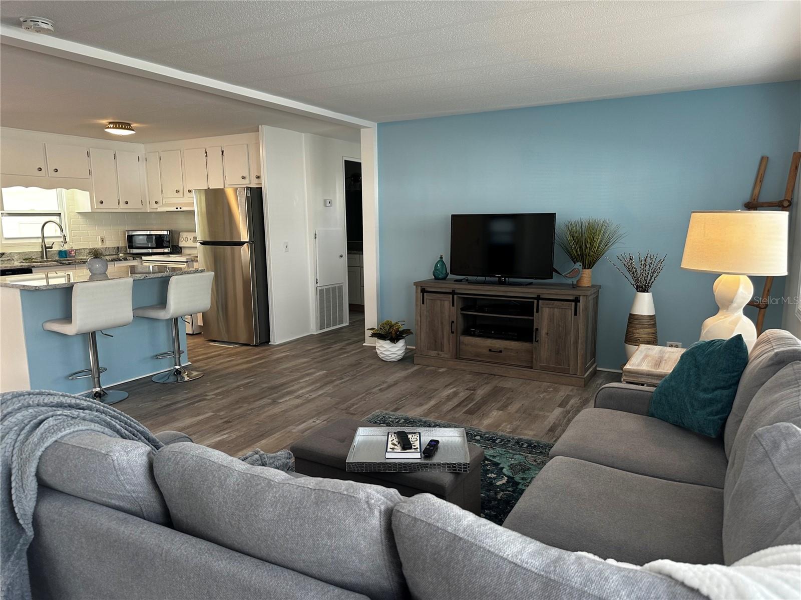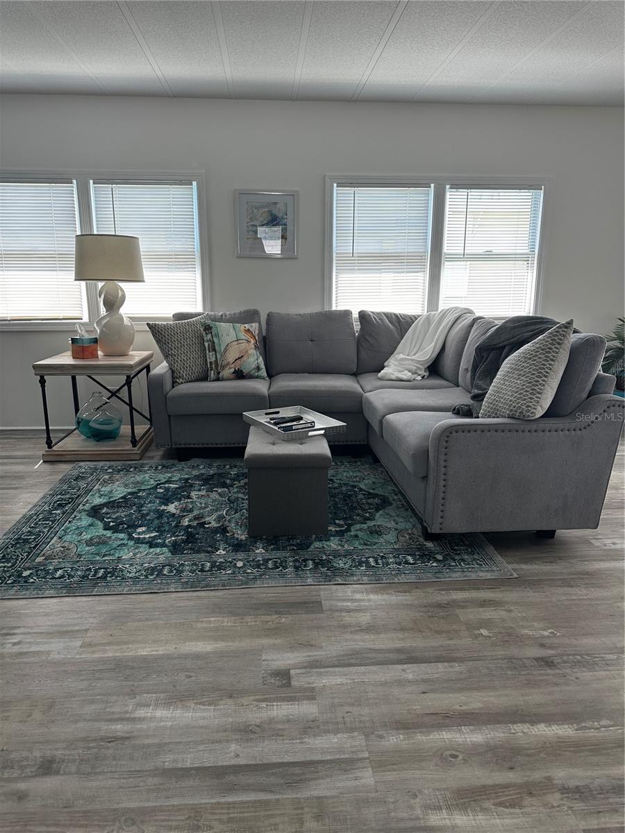 The key word with this home is NEW! New upgraded luxury vinyl flooring with 3/4" sub floor, NEW Duct work, NEW vapor barrier, New beautifully updated open kitchen with gorgeous granite counter tops and center island and new appliances. Living area walls have been upgraded with sheet rock to deliver a high end feel. Filled with natural light, the open kitchen plan flows easily into the dining and living room areas. This fully furnished home includes a washer & dryer. Fairway Village is a spacious, premier manufactured home community. A perfect place to live your dream, whether you stay year-round or spend some months elsewhere. A Resident Owned Manufactured Home Community of 751 homes for persons 55-plus years of age. Located in sunny Largo, on Florida's Gulf coast and close to many of Florida's major attractions. A wonderful feeling of spaciousness with our wide curbed streets with streetlights and sidewalks. All homes are located with established setbacks from the street. Amenities include: A private 9 hole par 3 golf course with two lakefront fairways and a practice putting green A five-plus acre lake for catch and release fishing Two swimming pools with hot tubs Eight sheltered shuffleboard courts A new 19,000+ sq. ft. Clubhouse was completed January, 2022, that includes the following: 700 seat Auditorium/Ballroom, Large commercial kitchen, Stage for chorus and programs, Separate conference rooms, Fitness center, Library, Billiard room, Card playing room, Sitting areas, Wi-fi service throughout. Fairway Village's 2024 maintenance fee of $396/month includes water, sewer, in-home high speed internet access, 220+ Spectrum cable TV channels, curbside trash pickup, lawn pest control and lawncare. 2025 Annual Golf memberships are available to residents for unlimited play. Non-members pay a $15 greens fee during season and $8 off season. The Fairway Village Social Committee (FSC) promotes and coordinates over 50 social activities. While the listing information is deemed reliable, please note, it is not guaranteed and should be independently verified for accuracy.