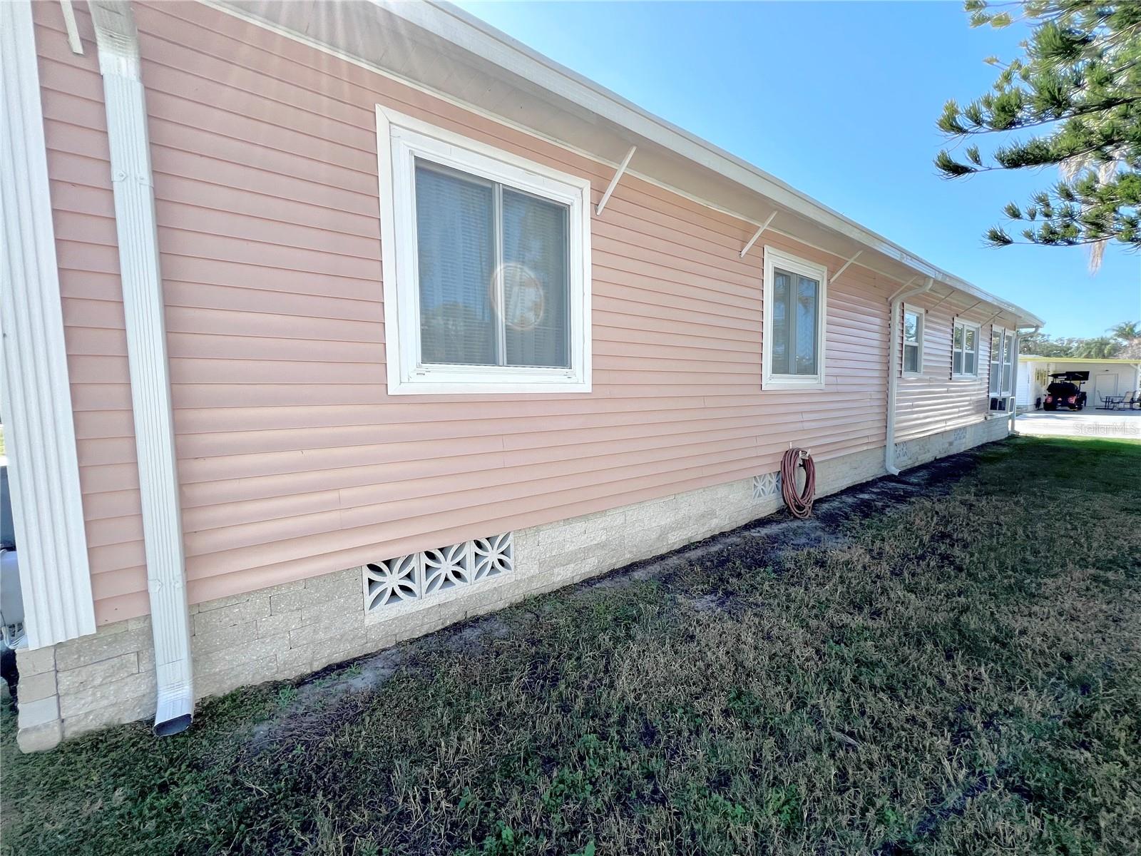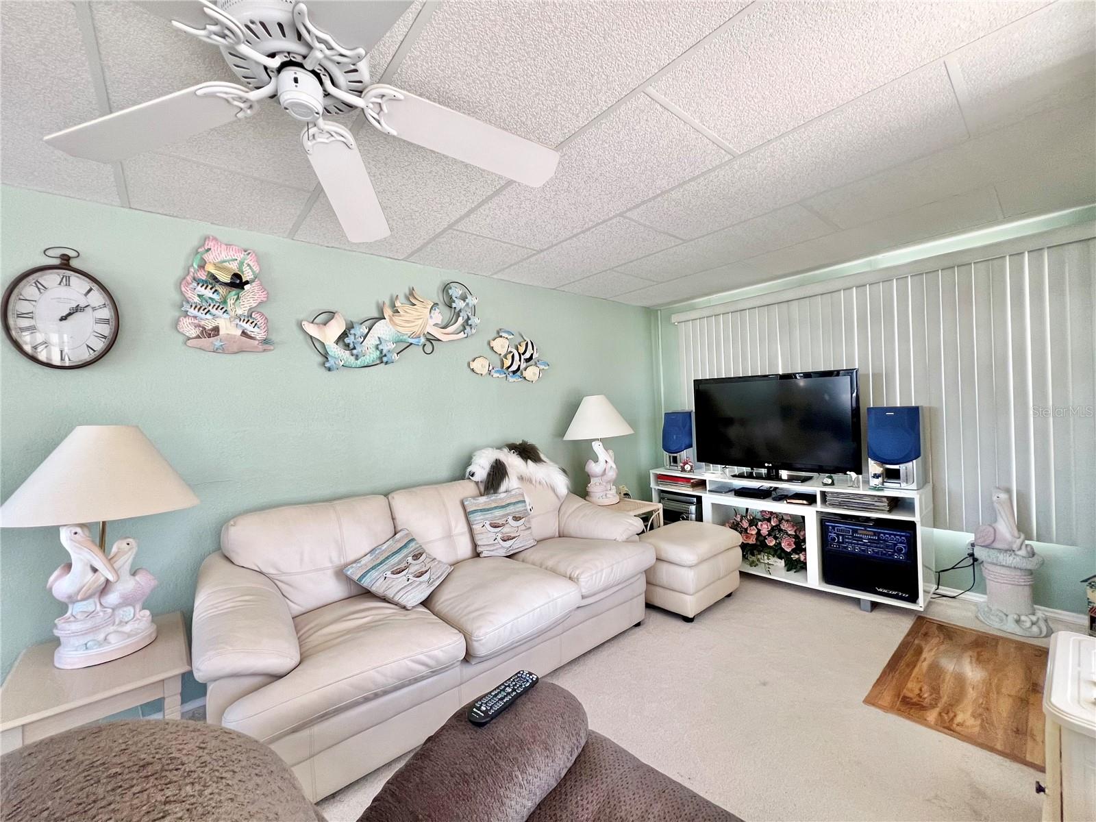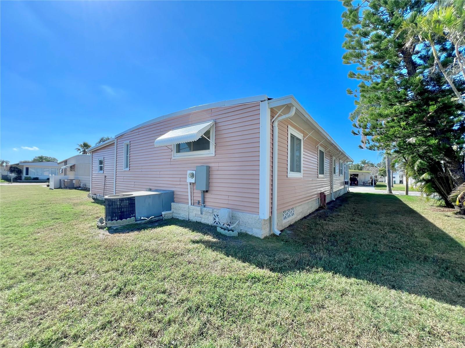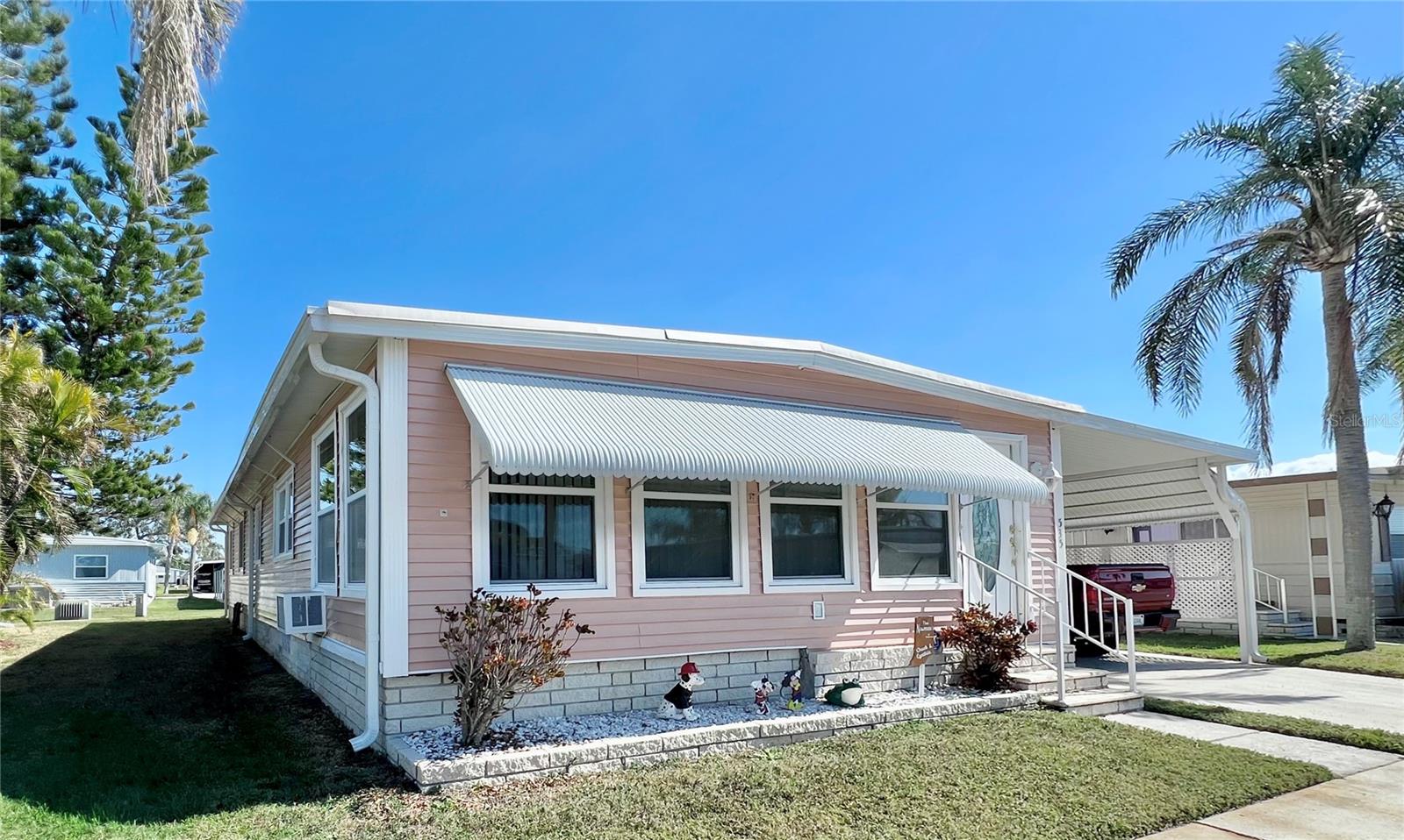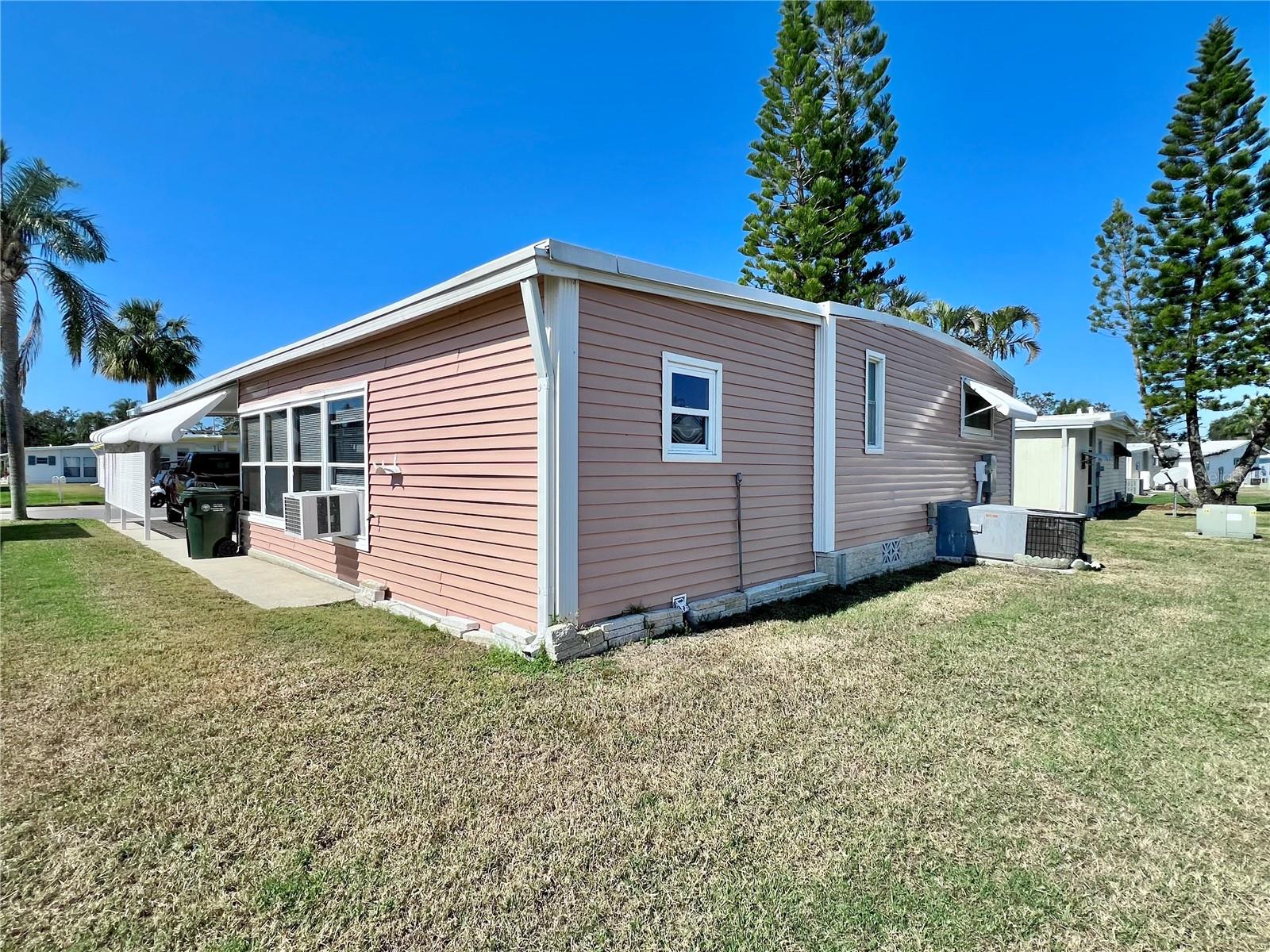 This meticulously maintained 2-bedroom, 2-bathroom home has been lovingly cared for by the same owners for 26 years, showcasing true pride of ownership. With many updates in the 1,584 square feet of usable living space (including two Florida rooms not counted in the stated heated and cooled 1,152 square footage), This home is both spacious and comfortable, as well as being sold fully furnished. Move right in!!!! The extended driveway fits two vehicles, and there's a convenient Florida room under the carport, complete with double French doors perfect for storing your golf cart when you're away for the summer or on vacation. The home features newer windows throughout and an awning over the front west-facing windows, ensuring the space remains cool and shaded. As you approach, the stunning NEW front door creates a welcoming entry. Step inside to the Florida room, thoughtfully transformed into a cozy TV/Den space with a dining table for those perfect sunset meals. The large living and dining areas are perfect for entertaining, with furniture that will impress and stay with the home. The kitchen has been updated with crisp white shaker cabinets, a cooktop stove with a vent hood, a wall oven, plus a small bar area to sit and conversate with the cook. All appliances, both large and small, along with cookware, are included. A broom closet could easily be converted into a pantry if desired. The dining area is modern with built-in storage and plenty of space. The home also boasts upgraded drywall and pristine flooring, with ceiling fans in every room. The spacious primary bedroom includes 4 closets, one of which is a walk-in, and the attached bathroom features a double vanity and fully tiled shower. The guest bedroom is conveniently located across the hall from the updated guest bathroom. This move-in ready home is perfect for anyone looking to enjoy the Florida lifestyle in a welcoming community. It’s located in Fairway Village, a premier 55+ manufactured home community, where a share is included in the list price for additional value. The community boasts an impressive 19,000 sq. ft. clubhouse with spaces for dances, bingo, card games, and more. There are two pools, jacuzzis, eight covered shuffleboard courts, and even a 9-hole par 3 golf course for a small fee. Ideally situated near major attractions, airports, and stunning beaches, Fairway Village offers the perfect balance of relaxation and convenience for both year-round living and seasonal stays. This is your chance to join a vibrant, active community and enjoy the best of your retirement years. Make your appointment today to see this wonderful home!