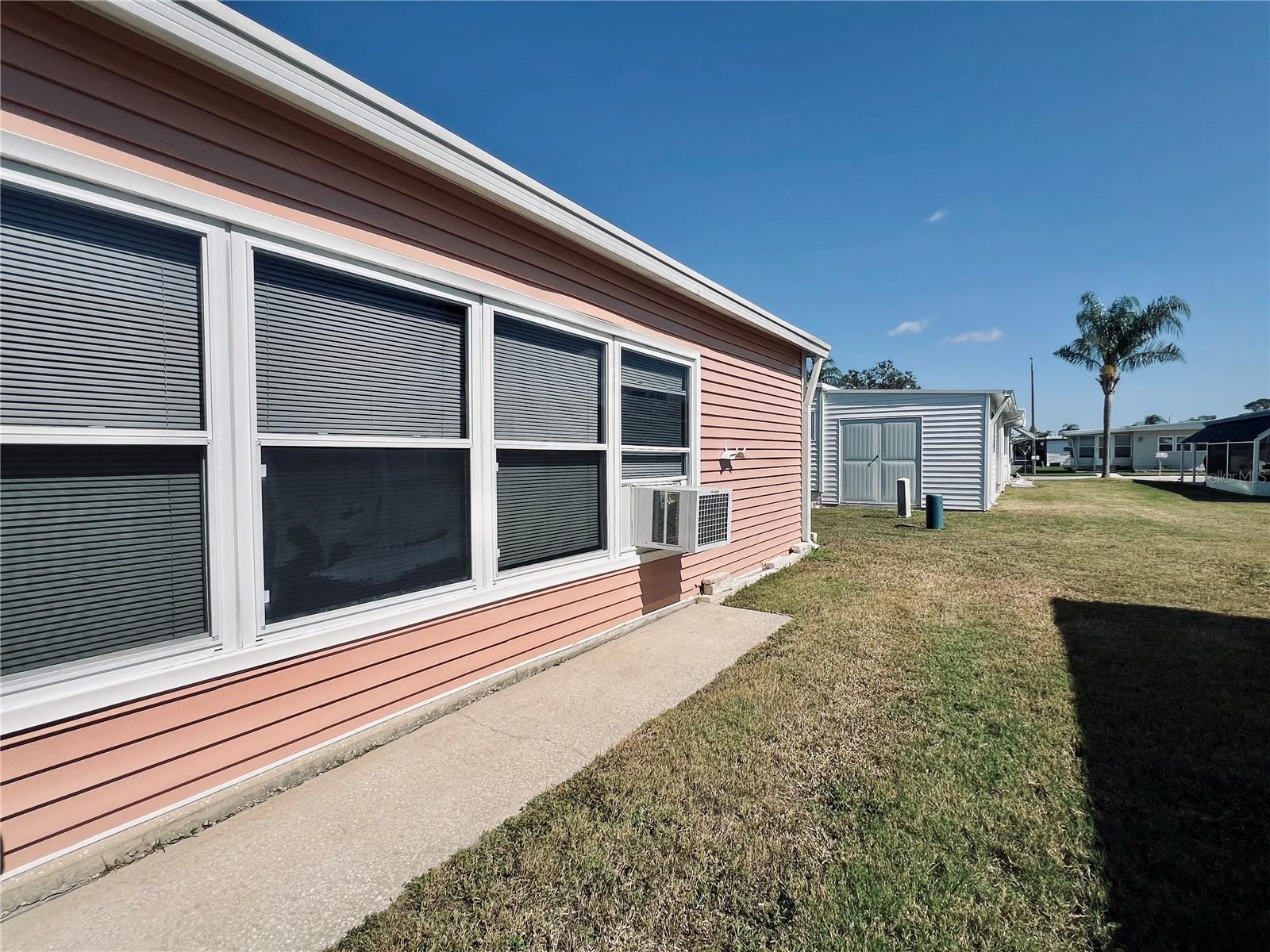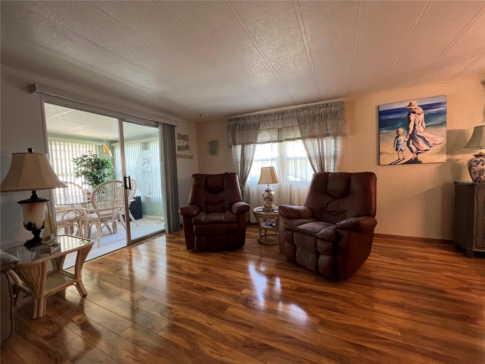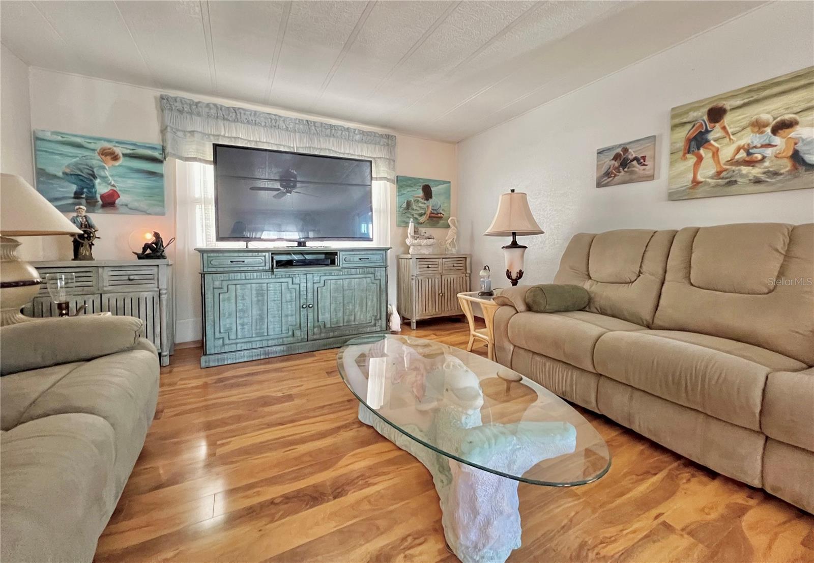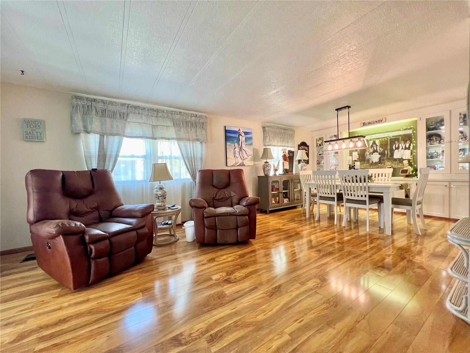This meticulously maintained 2-bedroom, 2-bathroom home has been lovingly cared for by the same owners for 26 years, showcasing true pride of ownership. With many updates in the 1,584 square feet of usable living space (including two Florida rooms not counted in the stated heated and cooled 1,152 square footage), This home is both spacious and comfortable, as well as being sold fully furnished. Move right in!!!! The extended driveway fits two vehicles, and there's a convenient Florida room under the carport, complete with double French doors perfect for storing your golf cart when you're away for the summer or on vacation. The home features newer windows throughout and an awning over the front west-facing windows, ensuring the space remains cool and shaded. As you approach, the stunning NEW front door creates a welcoming entry. Step inside to the Florida room, thoughtfully transformed into a cozy TV/Den space with a dining table for those perfect sunset meals. The large living and dining areas are perfect for entertaining, with furniture that will impress and stay with the home. The kitchen has been updated with crisp white shaker cabinets, a cooktop stove with a vent hood, a wall oven, plus a small bar area to sit and conversate with the cook. All appliances, both large and small, along with cookware, are included. A broom closet could easily be converted into a pantry if desired. The dining area is modern with built-in storage and plenty of space. The home also boasts upgraded drywall and pristine flooring, with ceiling fans in every room. The spacious primary bedroom includes 4 closets, one of which is a walk-in, and the attached bathroom features a double vanity and fully tiled shower. The guest bedroom is conveniently located across the hall from the updated guest bathroom. This move-in ready home is perfect for anyone looking to enjoy the Florida lifestyle in a welcoming community. It’s located in Fairway Village, a premier 55+ manufactured home community, where a share is included in the list price for additional value. The community boasts an impressive 19,000 sq. ft. clubhouse with spaces for dances, bingo, card games, and more. There are two pools, jacuzzis, eight covered shuffleboard courts, and even a 9-hole par 3 golf course for a small fee. Ideally situated near major attractions, airports, and stunning beaches, Fairway Village offers the perfect balance of relaxation and convenience for both year-round living and seasonal stays. This is your chance to join a vibrant, active community and enjoy the best of your retirement years. Make your appointment today to see this wonderful home!