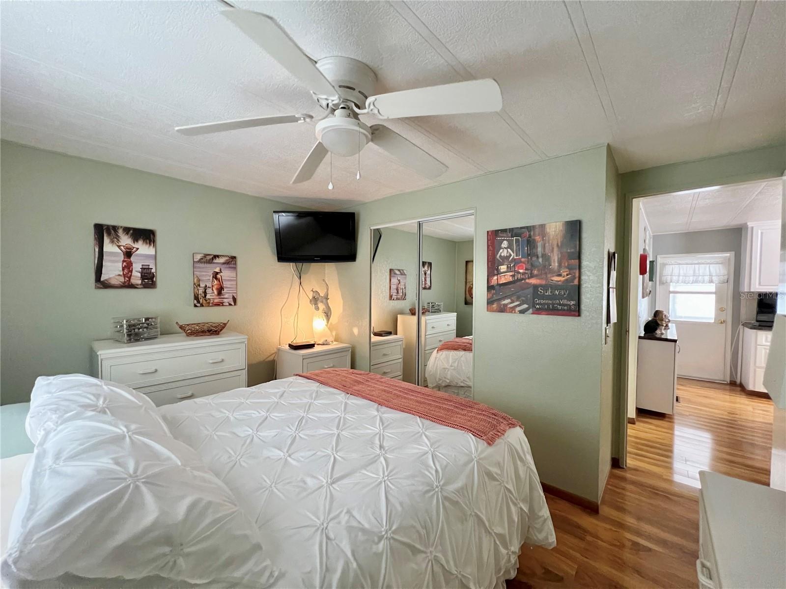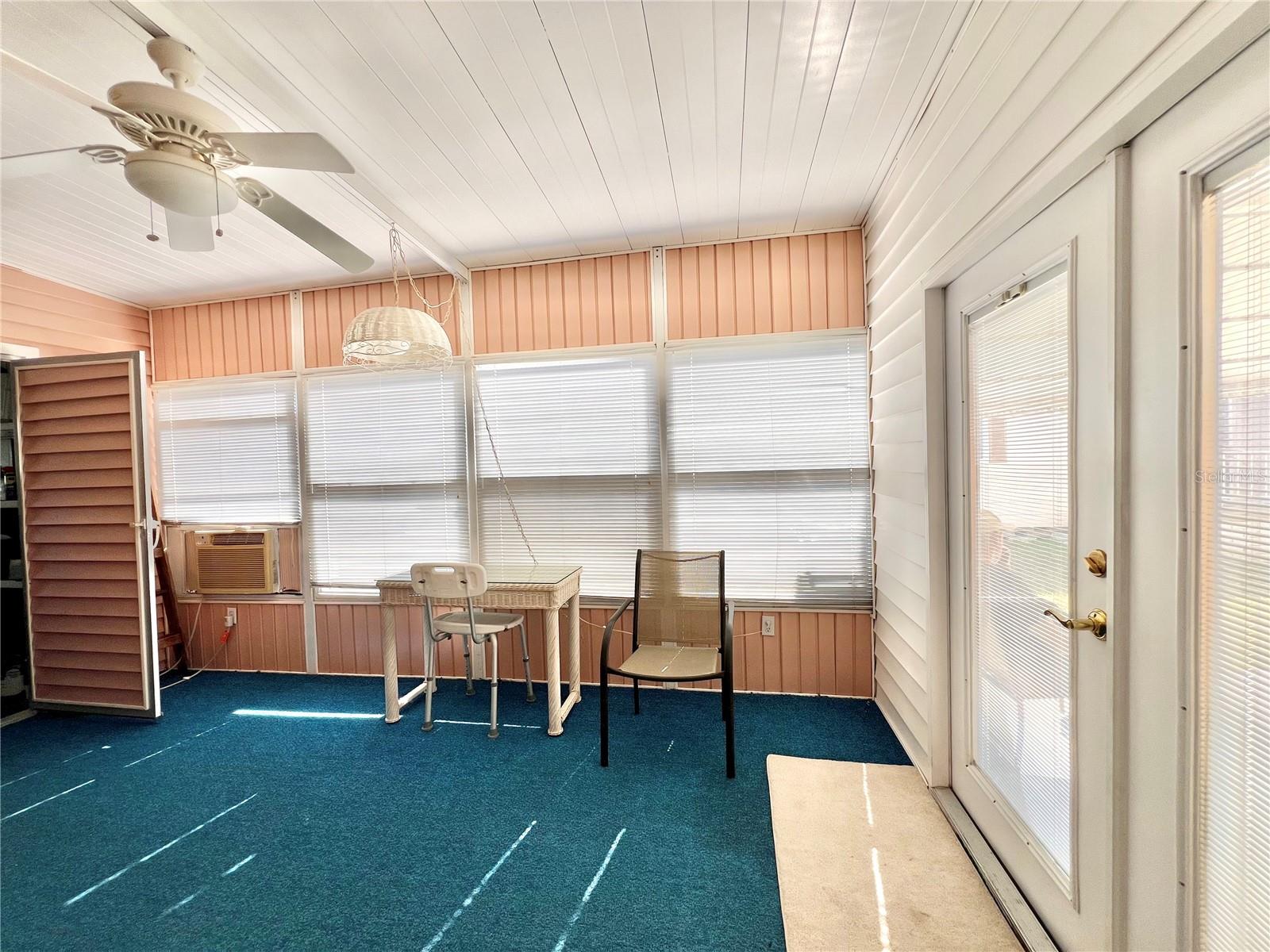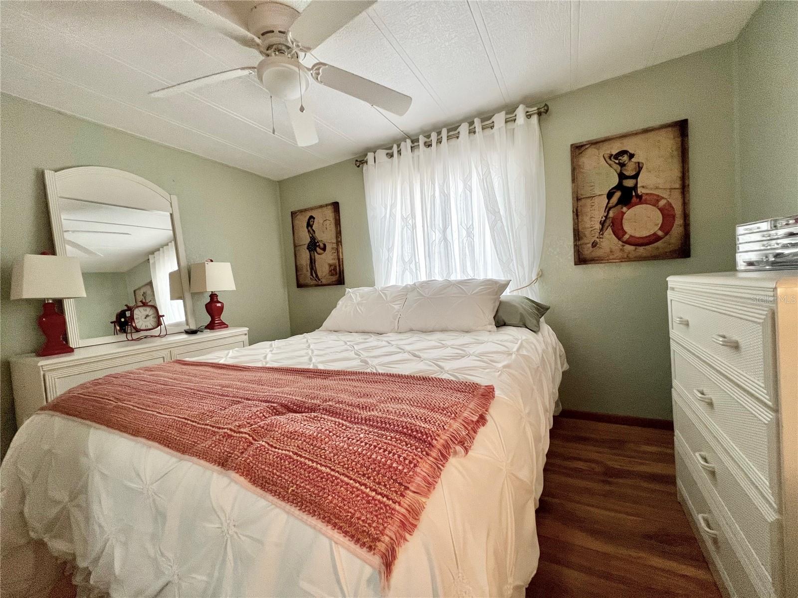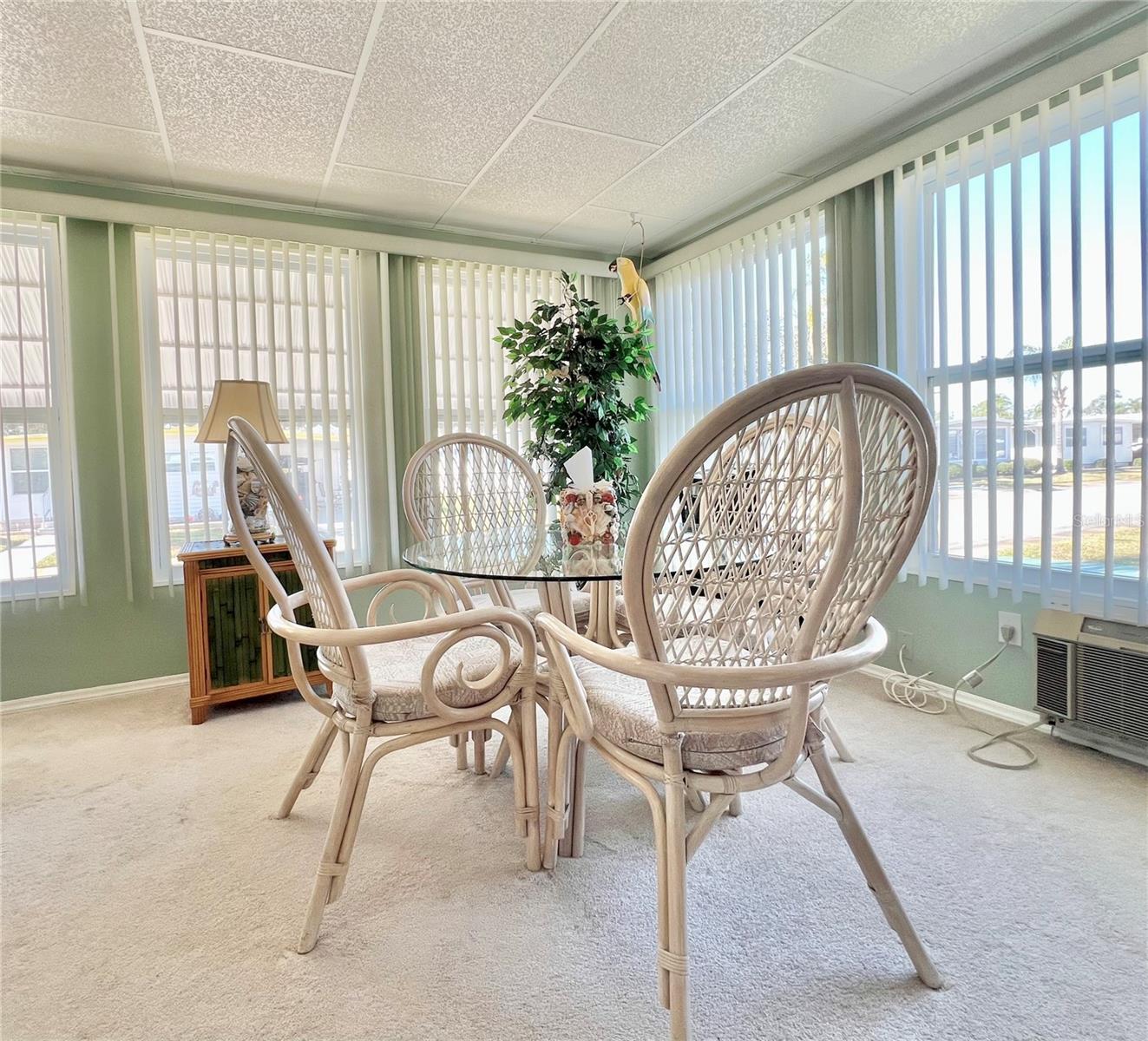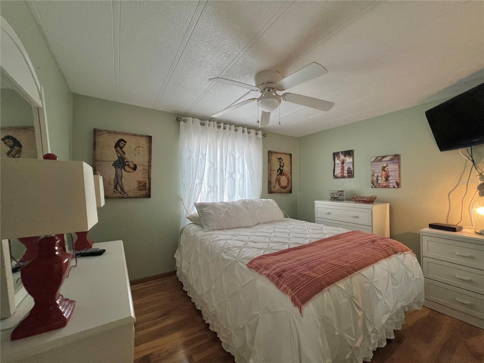 This meticulously maintained 2-bedroom, 2-bathroom home has been lovingly cared for by the same owners for 26 years, showcasing true pride of ownership. With many updates in the 1,584 square feet of usable living space (including two Florida rooms not counted in the stated heated and cooled 1,152 square footage), This home is both spacious and comfortable, as well as being sold fully furnished. Move right in!!!! The extended driveway fits two vehicles, and there's a convenient Florida room under the carport, complete with double French doors perfect for storing your golf cart when you're away for the summer or on vacation. The home features newer windows throughout and an awning over the front west-facing windows, ensuring the space remains cool and shaded. As you approach, the stunning NEW front door creates a welcoming entry. Step inside to the Florida room, thoughtfully transformed into a cozy TV/Den space with a dining table for those perfect sunset meals. The large living and dining areas are perfect for entertaining, with furniture that will impress and stay with the home. The kitchen has been updated with crisp white shaker cabinets, a cooktop stove with a vent hood, a wall oven, plus a small bar area to sit and conversate with the cook. All appliances, both large and small, along with cookware, are included. A broom closet could easily be converted into a pantry if desired. The dining area is modern with built-in storage and plenty of space. The home also boasts upgraded drywall and pristine flooring, with ceiling fans in every room. The spacious primary bedroom includes 4 closets, one of which is a walk-in, and the attached bathroom features a double vanity and fully tiled shower. The guest bedroom is conveniently located across the hall from the updated guest bathroom. This move-in ready home is perfect for anyone looking to enjoy the Florida lifestyle in a welcoming community. It’s located in Fairway Village, a premier 55+ manufactured home community, where a share is included in the list price for additional value. The community boasts an impressive 19,000 sq. ft. clubhouse with spaces for dances, bingo, card games, and more. There are two pools, jacuzzis, eight covered shuffleboard courts, and even a 9-hole par 3 golf course for a small fee. Ideally situated near major attractions, airports, and stunning beaches, Fairway Village offers the perfect balance of relaxation and convenience for both year-round living and seasonal stays. This is your chance to join a vibrant, active community and enjoy the best of your retirement years. Make your appointment today to see this wonderful home!