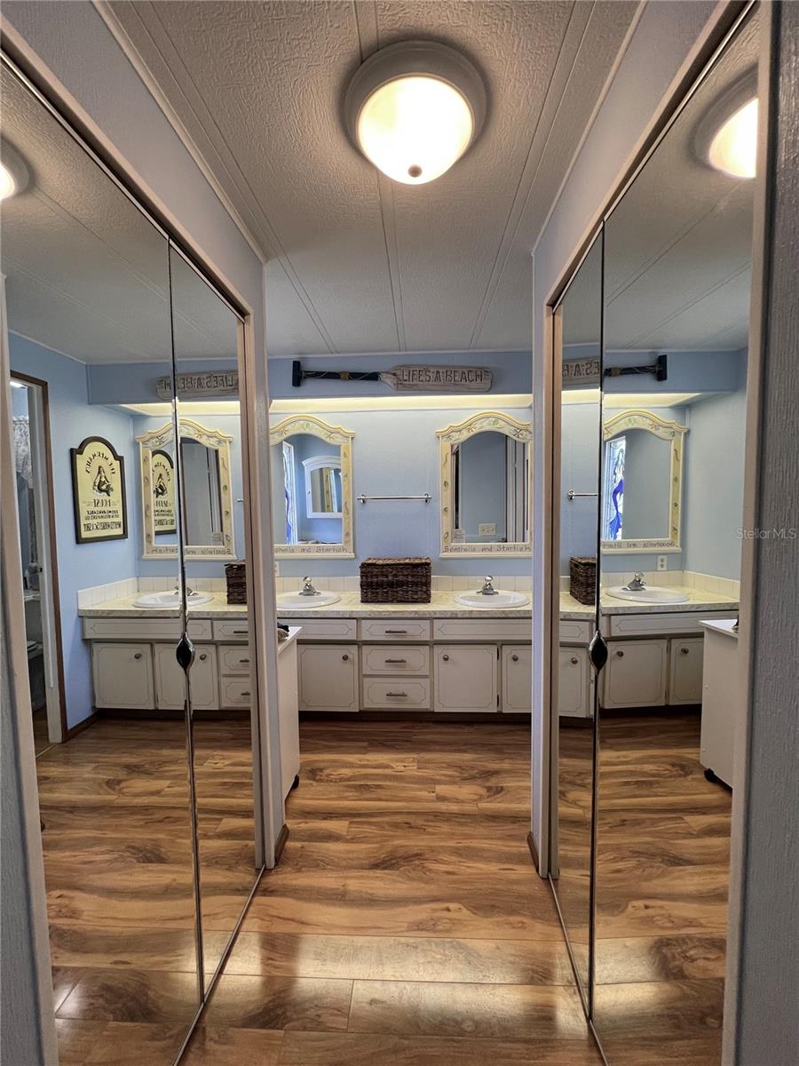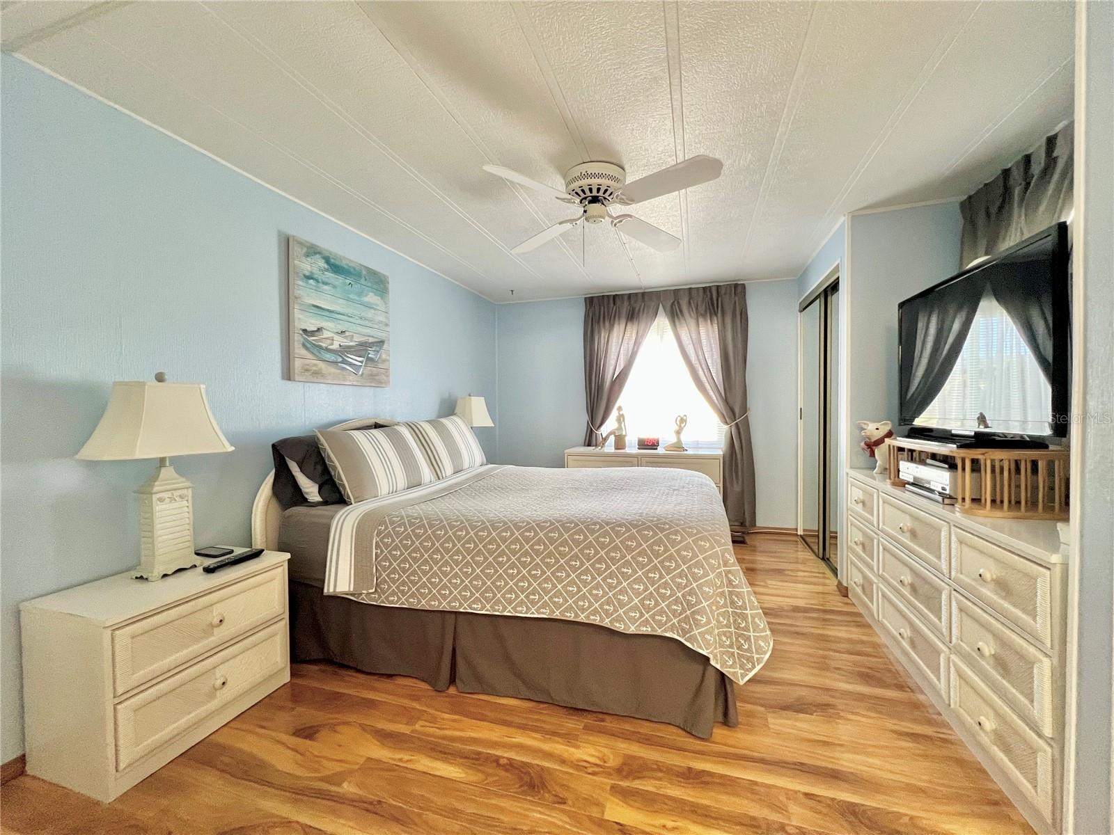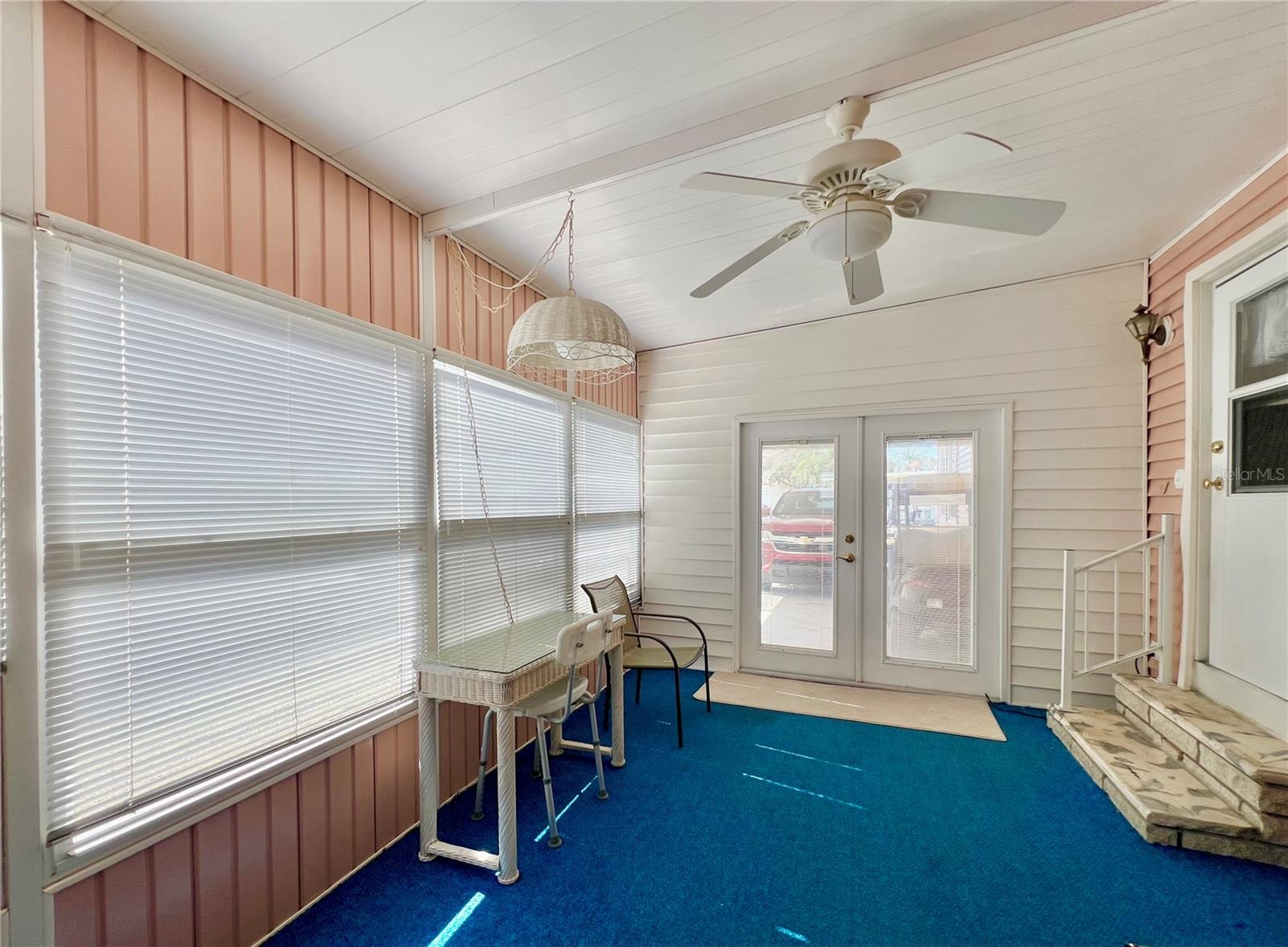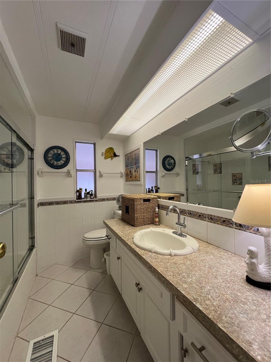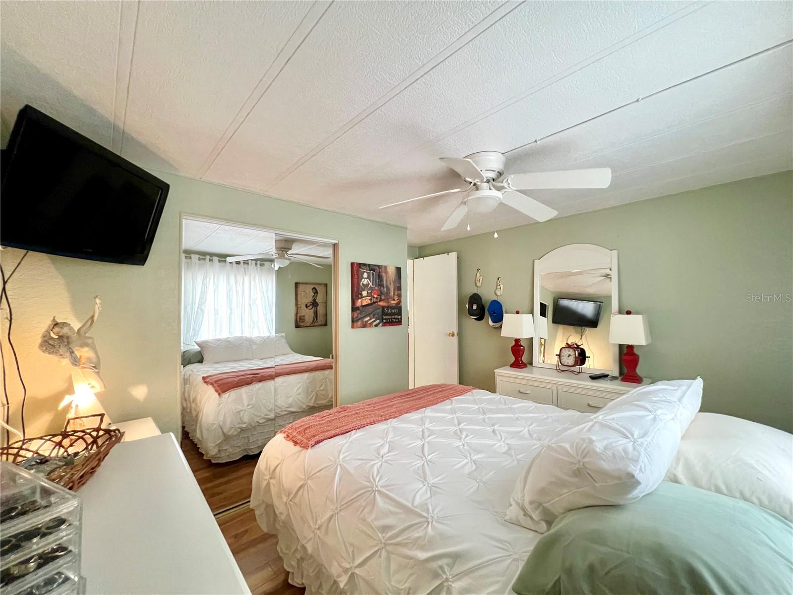 This meticulously maintained 2-bedroom, 2-bathroom home has been lovingly cared for by the same owners for 26 years, showcasing true pride of ownership. With many updates in the 1,584 square feet of usable living space (including two Florida rooms not counted in the stated heated and cooled 1,152 square footage), This home is both spacious and comfortable, as well as being sold fully furnished. Move right in!!!! The extended driveway fits two vehicles, and there's a convenient Florida room under the carport, complete with double French doors perfect for storing your golf cart when you're away for the summer or on vacation. The home features newer windows throughout and an awning over the front west-facing windows, ensuring the space remains cool and shaded. As you approach, the stunning NEW front door creates a welcoming entry. Step inside to the Florida room, thoughtfully transformed into a cozy TV/Den space with a dining table for those perfect sunset meals. The large living and dining areas are perfect for entertaining, with furniture that will impress and stay with the home. The kitchen has been updated with crisp white shaker cabinets, a cooktop stove with a vent hood, a wall oven, plus a small bar area to sit and conversate with the cook. All appliances, both large and small, along with cookware, are included. A broom closet could easily be converted into a pantry if desired. The dining area is modern with built-in storage and plenty of space. The home also boasts upgraded drywall and pristine flooring, with ceiling fans in every room. The spacious primary bedroom includes 4 closets, one of which is a walk-in, and the attached bathroom features a double vanity and fully tiled shower. The guest bedroom is conveniently located across the hall from the updated guest bathroom. This move-in ready home is perfect for anyone looking to enjoy the Florida lifestyle in a welcoming community. It’s located in Fairway Village, a premier 55+ manufactured home community, where a share is included in the list price for additional value. The community boasts an impressive 19,000 sq. ft. clubhouse with spaces for dances, bingo, card games, and more. There are two pools, jacuzzis, eight covered shuffleboard courts, and even a 9-hole par 3 golf course for a small fee. Ideally situated near major attractions, airports, and stunning beaches, Fairway Village offers the perfect balance of relaxation and convenience for both year-round living and seasonal stays. This is your chance to join a vibrant, active community and enjoy the best of your retirement years. Make your appointment today to see this wonderful home!