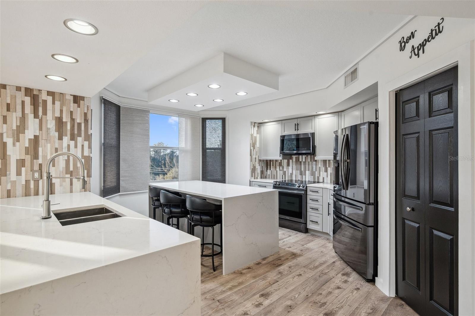Are you searching for a beautiful, high quality, better than new, turn-key lakeside condominium home? Step inside #3406 to discover an inviting open-concept living space, the large great room seamlessly connects to a big Euro-style kitchen all with sleek high-quality vinyl plank floors. See exquisite lighting fixtures with custom shades and blinds flooded with natural light. The gourmet kitchen is huge, with high-end finishes, custom soft-close cabinetry, finished with stainless steel Samsung appliances and waterfall quartz countertops. This condo is a haven for those who appreciate the finer things in modern upgraded living. The screened corner lanai for breathtaking sunsets is accessed from the living room and the expansive main bedroom suite. This is a truly a treat retreat, complete with two walk-in closets and luxurious 5-piece bathroom. For owner privacy guest bedrooms are split, with 2nd bathroom, multiple closet storage plus direct access to kitchen and laundry room. Versatile bedroom 3 has double doors and can be a dining room or study with Murphy bed! ALMOST NEW EVERYTHING including in 2023 NEW AC; Electric Tankless Water Heater; Whole Home Water Softener. Building Three has a NEW ROOF! Your under-building over-sized garage G16 is just a 25 yd covered walk from the elevator. Building Three is situated to give quick & easy access in & out of the community. This home blends accessibility with tranquility. DO NOT WORRY about Milestone inspections, not needed here for another 11 years. The first Structural Integrity Reserve Study is complete - no big deal. Golf Lake building are built to last with strength, security, community pride of ownership and peace of mind for owners. 3406 is equipped with hurricane-rated windows and upgraded glass sliders. High and dry in a non-flood zone and on the 4th floor - this community was built to withstand Cat 5 hurricanes. 3406 was unaffected by the back to back Hurricanes of 2024 - NO EVACUATION IS NECESSARY - adding to the peace of mind for all. The HOA management is strong and proven, a dedicated professional property manager is on site most weekdays. Building Three is FULLY FUNDED and fiscally well managed - reserves are high & healthy. Golf Lake has resort-style amenities including two pools, a hot tub, clubhouse and is conveniently located just minutes from world-class beaches, shopping, dining, and top Tampa Bay attractions. Golf Lake is in a great location - close to ER & medical services, entertainment, shopping & fine dining at new Seminole City Center or Largo Mall. Just 20 to 30 mins from St Pete, Tampa, Clearwater & airports with easy access to the white sands of our beautiful beaches in just 15 minutes. For a decade GLC was one of the best kept secrets of Tampa Bay, a hidden oasis but good news got around so Golf Lake is now a sought after Pinellas County community. This is an a one-of-a-kind, high-class, high-quality and desirable home in which to live a busy lifestyle of all that Tampa Bay Florida has to offer on your doorstep. Or this lovely place can simply provide a private quiet retreat to relax and appreciate nature in the tranquil beauty of this fine safe community. Live here as if you are on vacation or just relax in peaceful privacy - it does not get much better than #3406 at Golf Lake. Golf Lake Condominiums are excellent value and a sound investment. Please call today to schedule your private showing to DISCOVER IF GL 3406 IS YOUR IDEAL PLACE TO CALL HOME!