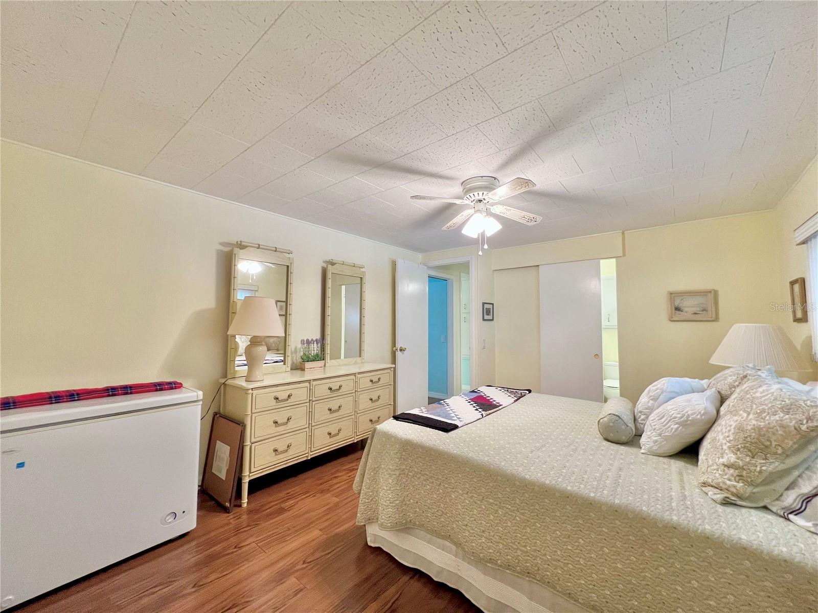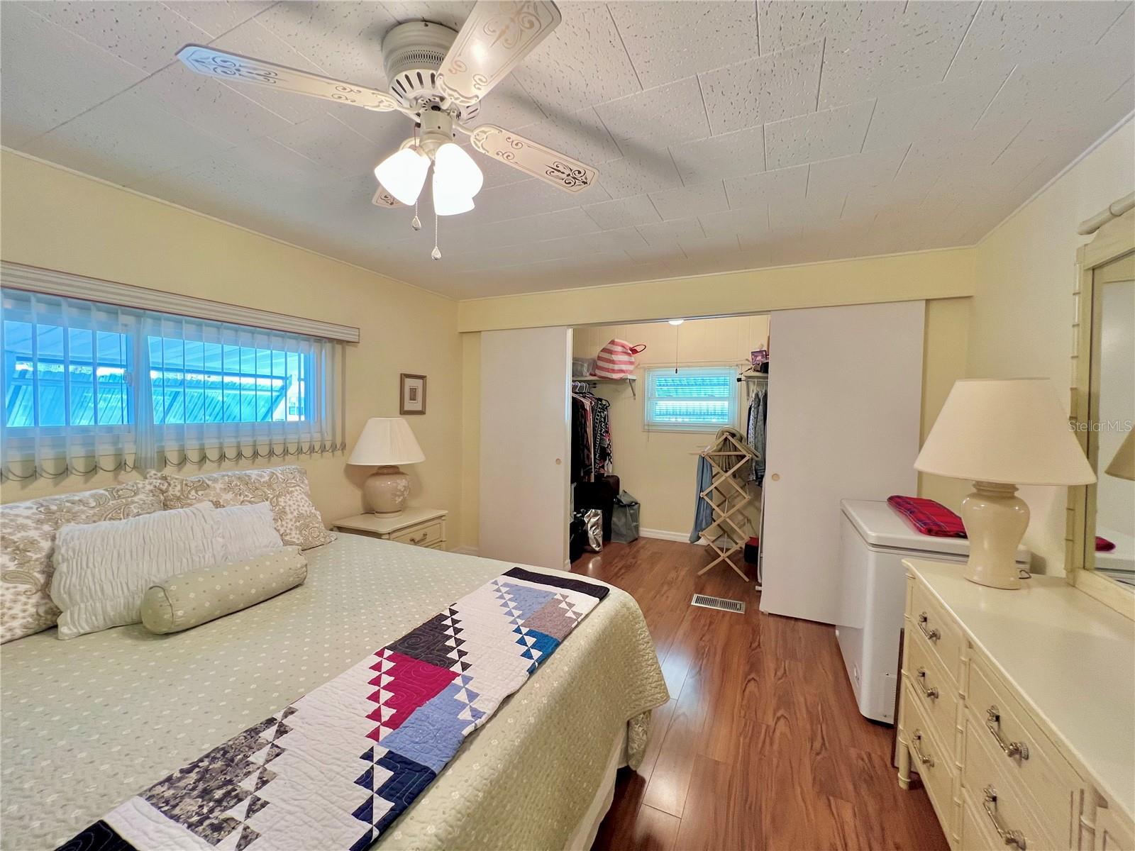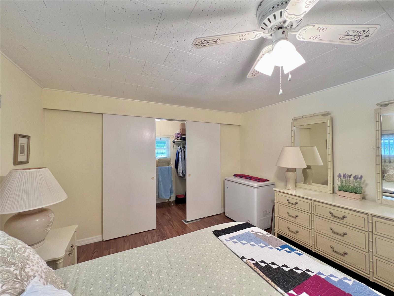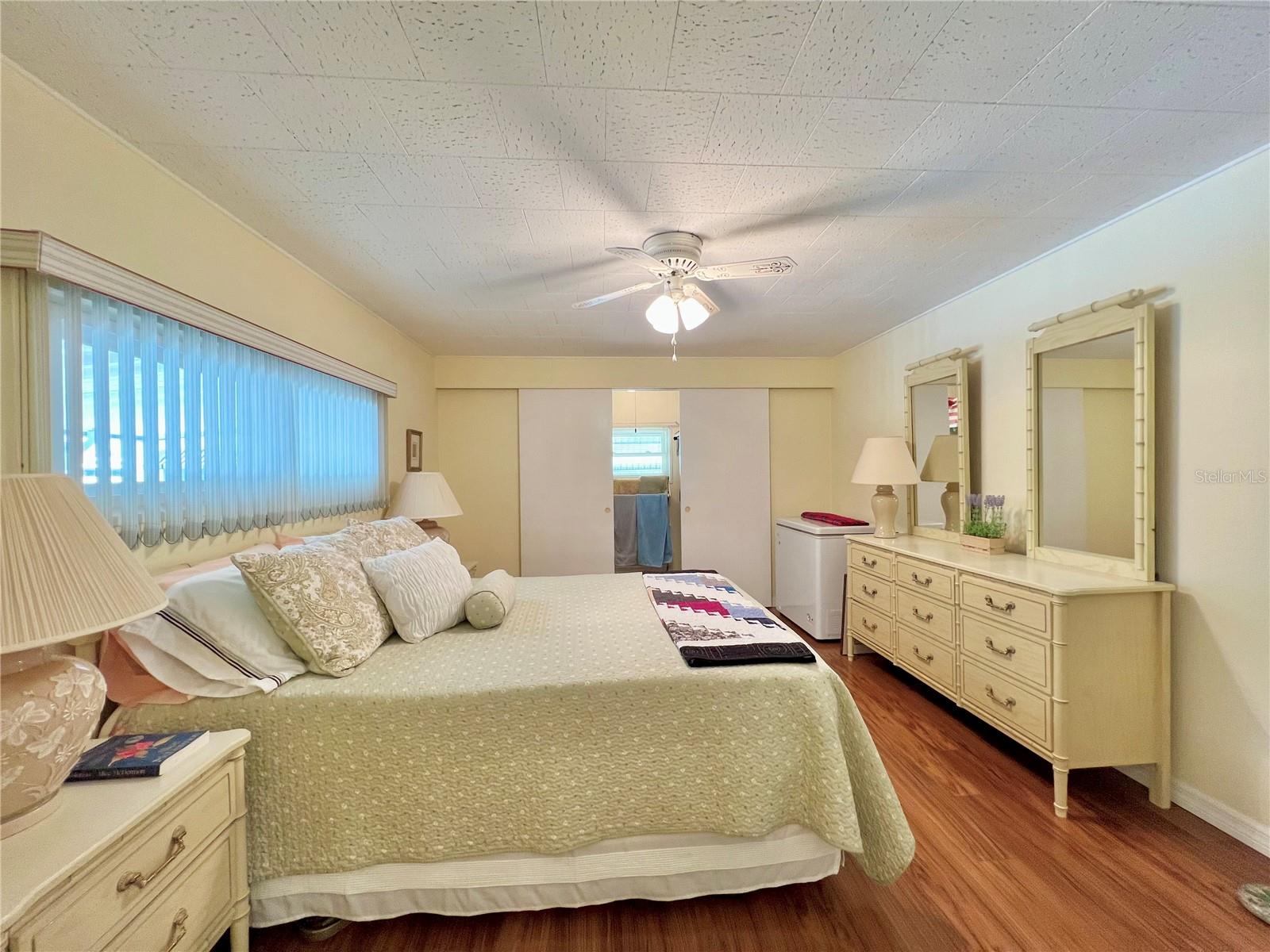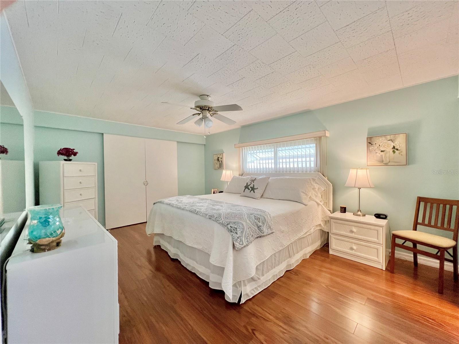 ON THE GOLF COURSE!!!!! DON'T let this one get away.... Rare for this community to see a golf course home come on the market at this price!!! This meticulously maintained 2-bedroom, 2-bathroom home, encompassing 1,372 sq. ft. plus a bonus room overlooking this fabulous view, showcases exceptional quality and thoughtful details throughout. Featuring a well-maintained metal Roof Over, Vinyl siding and newer windows throughout. This home offers peace of mind with dual outdoor water shutoff valves, a water softener and a vapor barrier in great condition, with enclosed decorative blocks for finishing touches under the home. The A/C unit, installed in April 2018, ensures year-round comfort, while the water heater and Dryer were updated in November 2024 add to the home's modern conveniences. The property boasts 1/2-inch plywood beneath the laminate floors, enhancing durability, and the appliances were all updated in 2018. The spacious Florida Room, complete with a sofa bed, serves as a versatile space, while both bedrooms feature generous walk-in closets and lovely bedroom furniture. Elegant granite countertops in both the kitchen and bathrooms elevate the overall aesthetic.This home is offered fully furnished, with all furniture staying in the property. The enclosed office/Florida Room is a standout feature, with sliding side-to-side windows that offer beautiful views of the golf course. Fairway Village, a premier 55+ manufactured home community, includes a share in the list price, providing additional value. The community offers an impressive array of amenities, including a newly opened 19,000 sq. ft. clubhouse featuring spaces for dances, bingo, card games, and more. Residents can also enjoy two pools, jacuzzis, eight covered shuffleboard courts, and a 9-hole par 3 golf course for a small fee. Ideally located near major attractions, airports, and beautiful beaches, Fairway Village provides an ideal setting for both year-round living and seasonal stays. This is a wonderful opportunity to join a vibrant and welcoming community and make the most of your retirement years. Schedule your private showing today to see these beautiful sunset views.