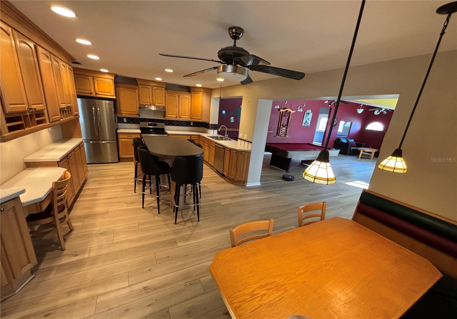 Located in the desirable Hillcrest Manor subdivision, This spacious 5-bedroom, 3-bath Pool home is ideal for relaxing beach days, poolside get-togethers, and peaceful living for the whole family. With its prime location —just one mile from the sparkling Gulf beaches, this concrete block home, with tile roof, sits in a no-evacuation, no-flood zone—offering peace of mind and the ultimate convenience. As you step inside, you'll find a versatile split bedroom floor plan with a large living room,expansive eat-in kitchen and a massive game room/family room with soaring ceilings,and a cozy wood burning fireplace. BRAND NEW durable luxury vinyl plank flooring has just been installed throughout the home to ensure low-maintenance living. Situated on a large corner lot at just under 1/3 of an acre, the property boasts a gorgeous screen enclosed pool with heated jacuzzi/spillover spa – perfect for outdoor living and relaxing in style. There is also a large laundry room and a 2-car garage offering ample room for vehicles and storage. Located in a walkable neighborhood with a nearby elementary school, you’ll love the convenience of being close to restaurants, stores, medical facilities and the airport. Whether you’re raising a family or looking for a one-level retreat, this home has it all. Don’t miss your chance to own this dream home in a fantastic community!