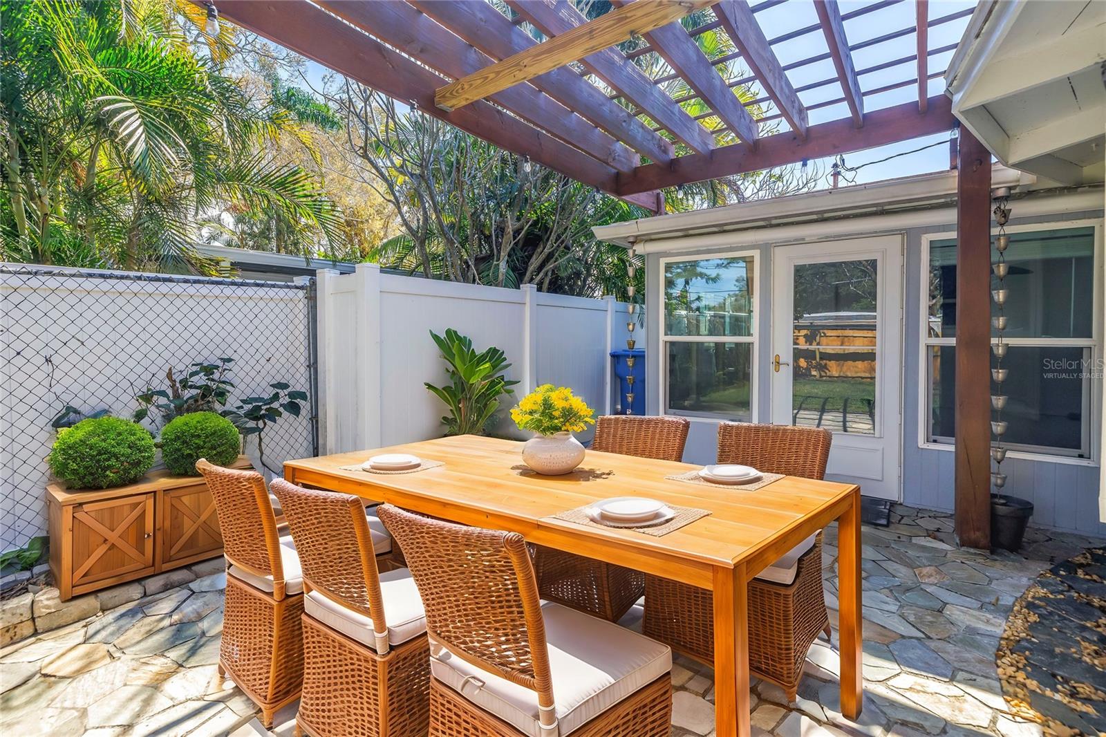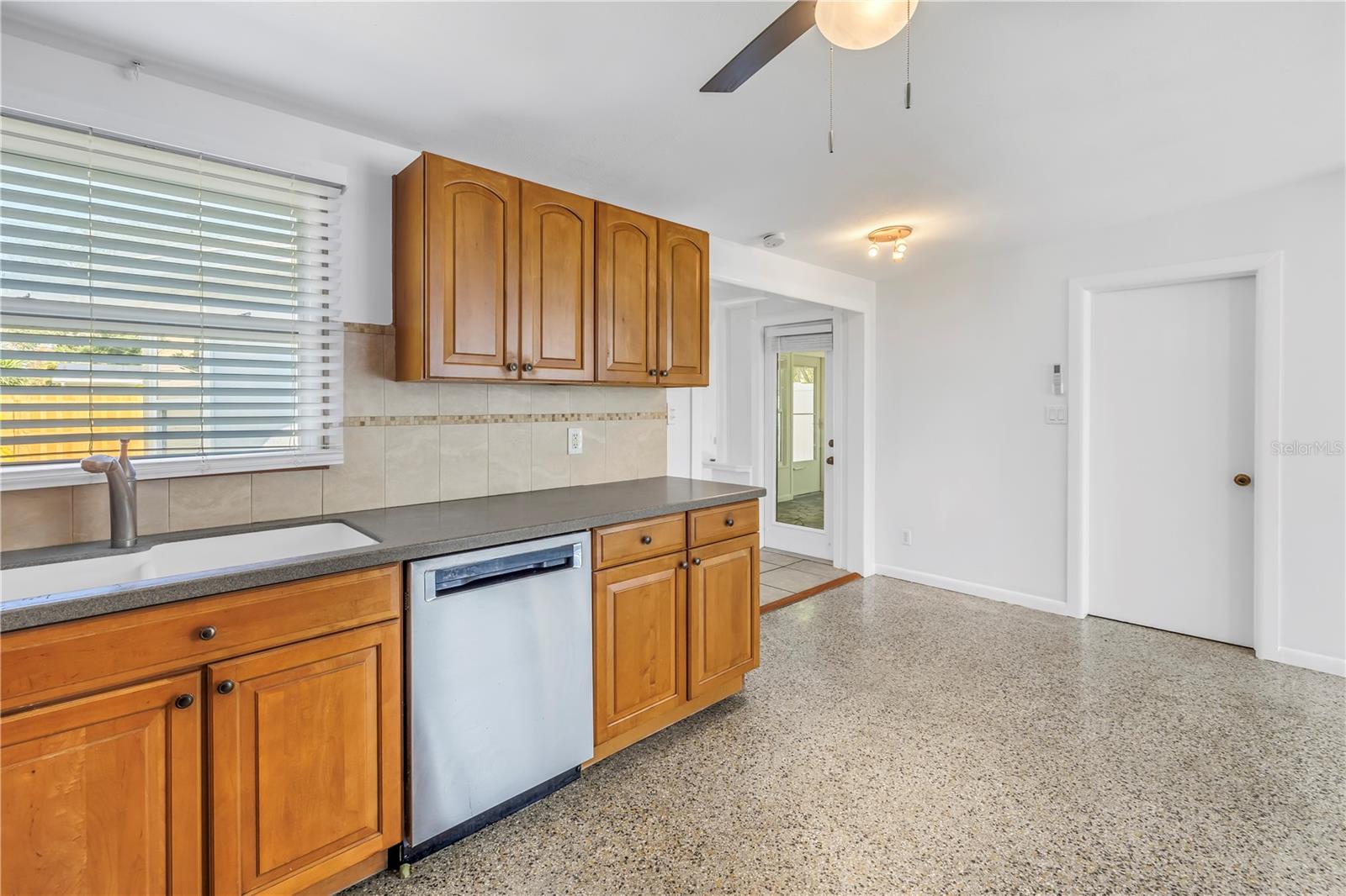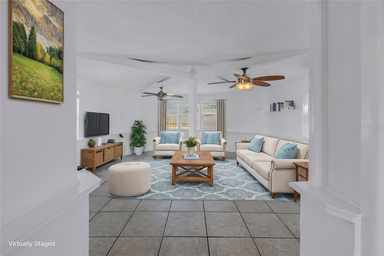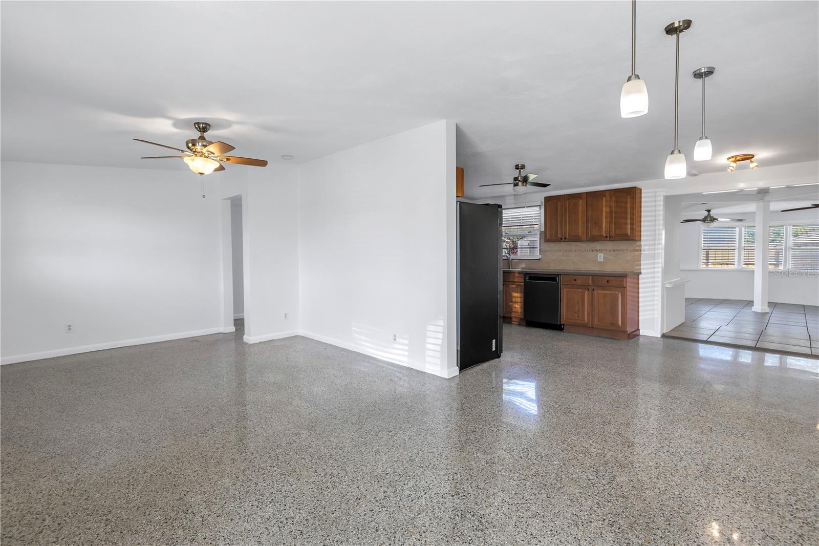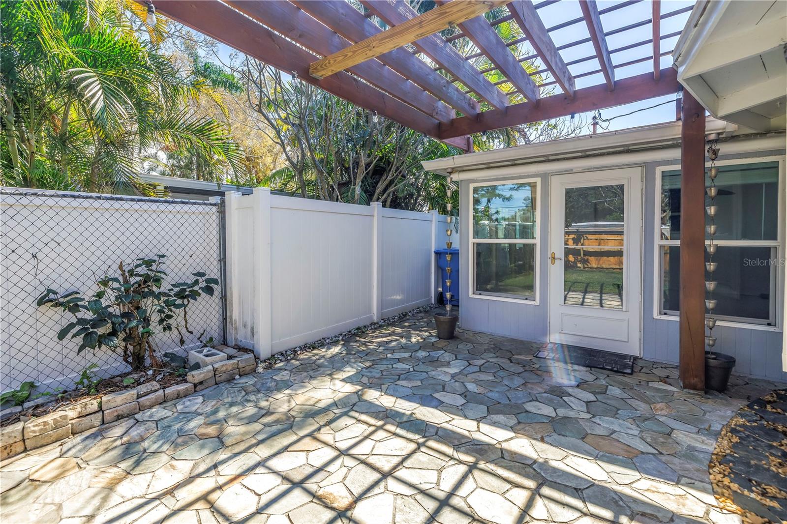 One or more photo(s) has been virtually staged. Back on the market through no fault of the property, previous buyer's financing fell through. Welcome to this very spacious, move in ready 2 bedroom, 1 bathroom home, filled with natural light! Situated on high elevation (non-flood zone) with no storm damage or flooding, this home offers peace of mind along with a variety of exterior bonus features. Enjoy a covered carport, an enclosed Florida room that can be cooled with the window AC unit (not included in the heated square footage), a pergola covered patio with charming stone pavers, and a storage shed for added convenience. Step inside and be greeted by fresh interior paint and original, refinished terrazzo floors in pristine condition. The home offers a living room, a spacious dining room, and a huge den that could easily be converted into a third bedroom. A major upgrade includes professionally installed mini-split systems throughout the entire house in 2024, costing $17,000 for energy efficient comfort. At the heart of the home, the kitchen boasts recent upgrades, including a brand-new, 5-burner, smart Wi-Fi-enabled convection range with an air fryer, a 2022 dark stainless Samsung refrigerator, and maple cabinetry. A perfectly situated window above the sink provides a lovely view of the backyard. Another standout feature is the huge laundry room, which doubles as a storage space and could easily be converted into a second full bathroom. Outside, the fully fenced in backyard offers plenty of space for relaxation, entertaining, or play. Conveniently located just a short drive from the beaches, Seminole Mall, Seminole Lake Park, endless dining options, and more—this home is a must-see! Don’t miss out on this incredible opportunity!
