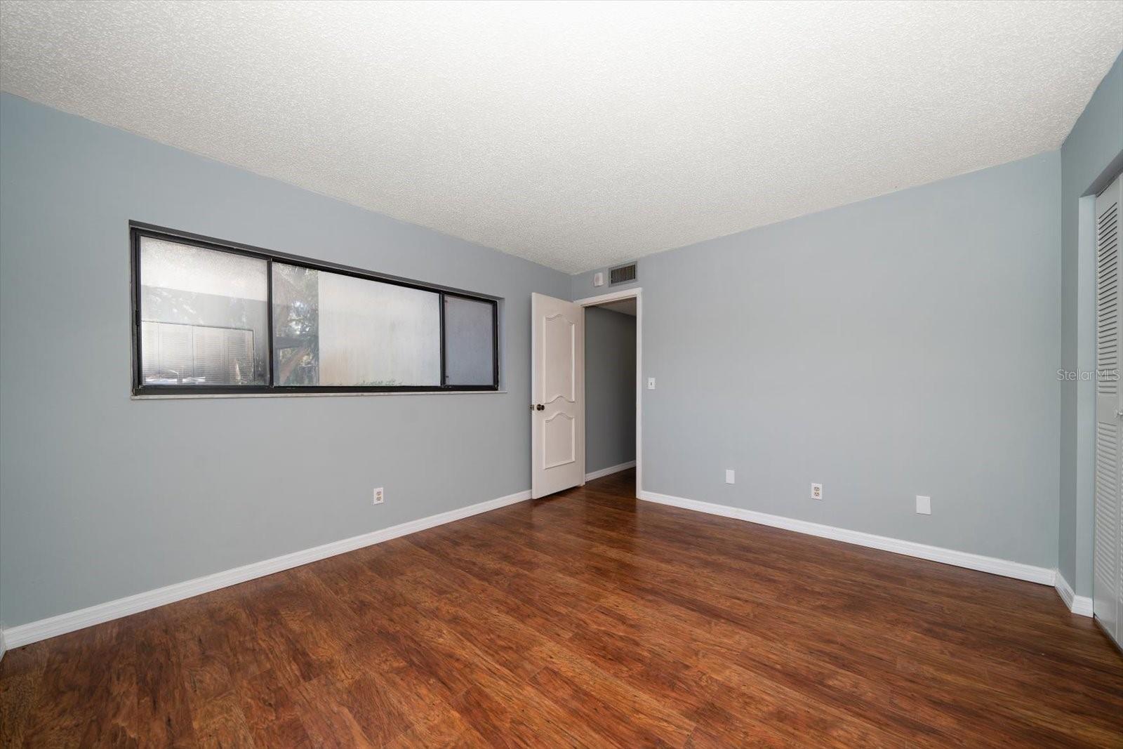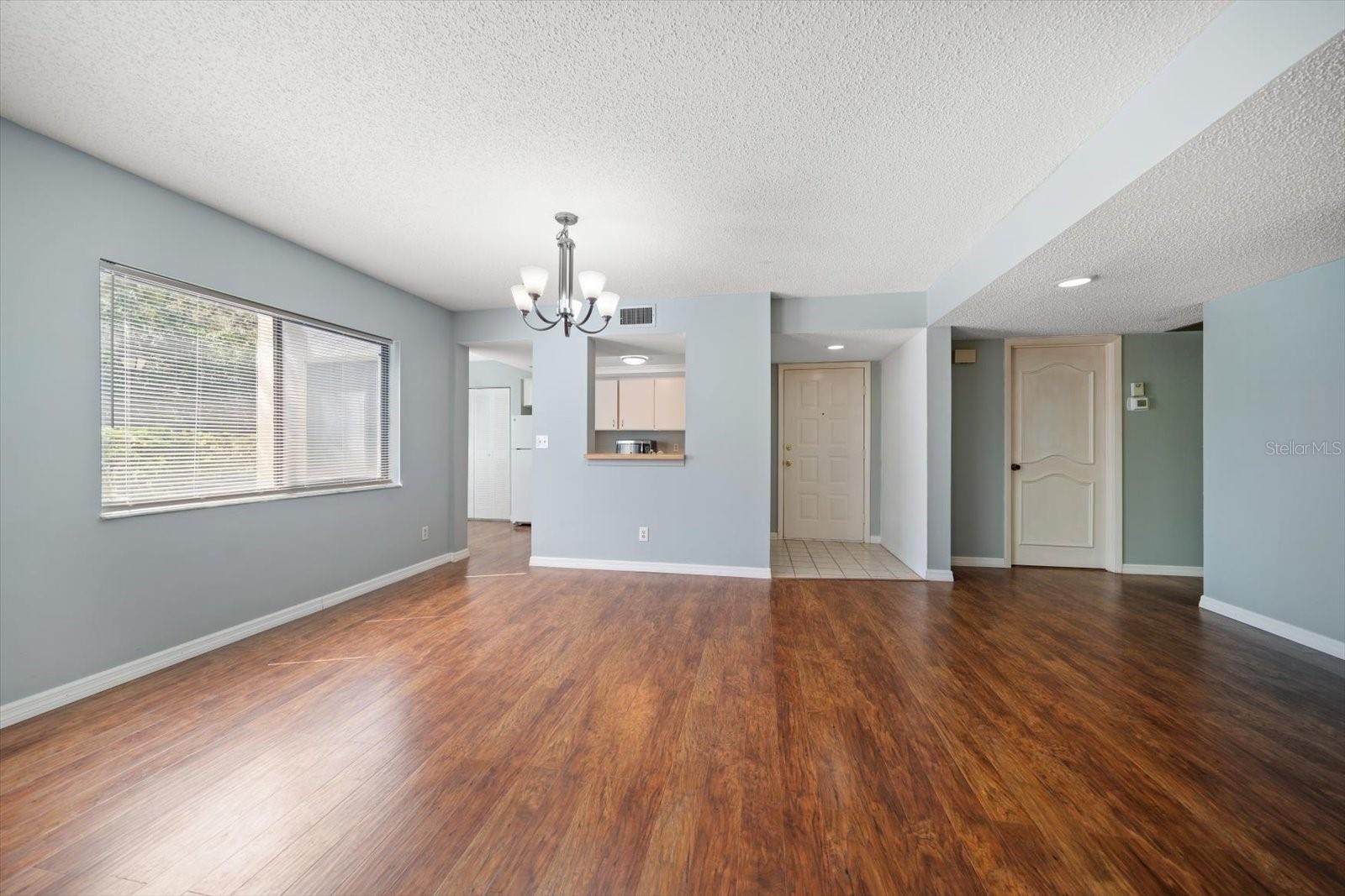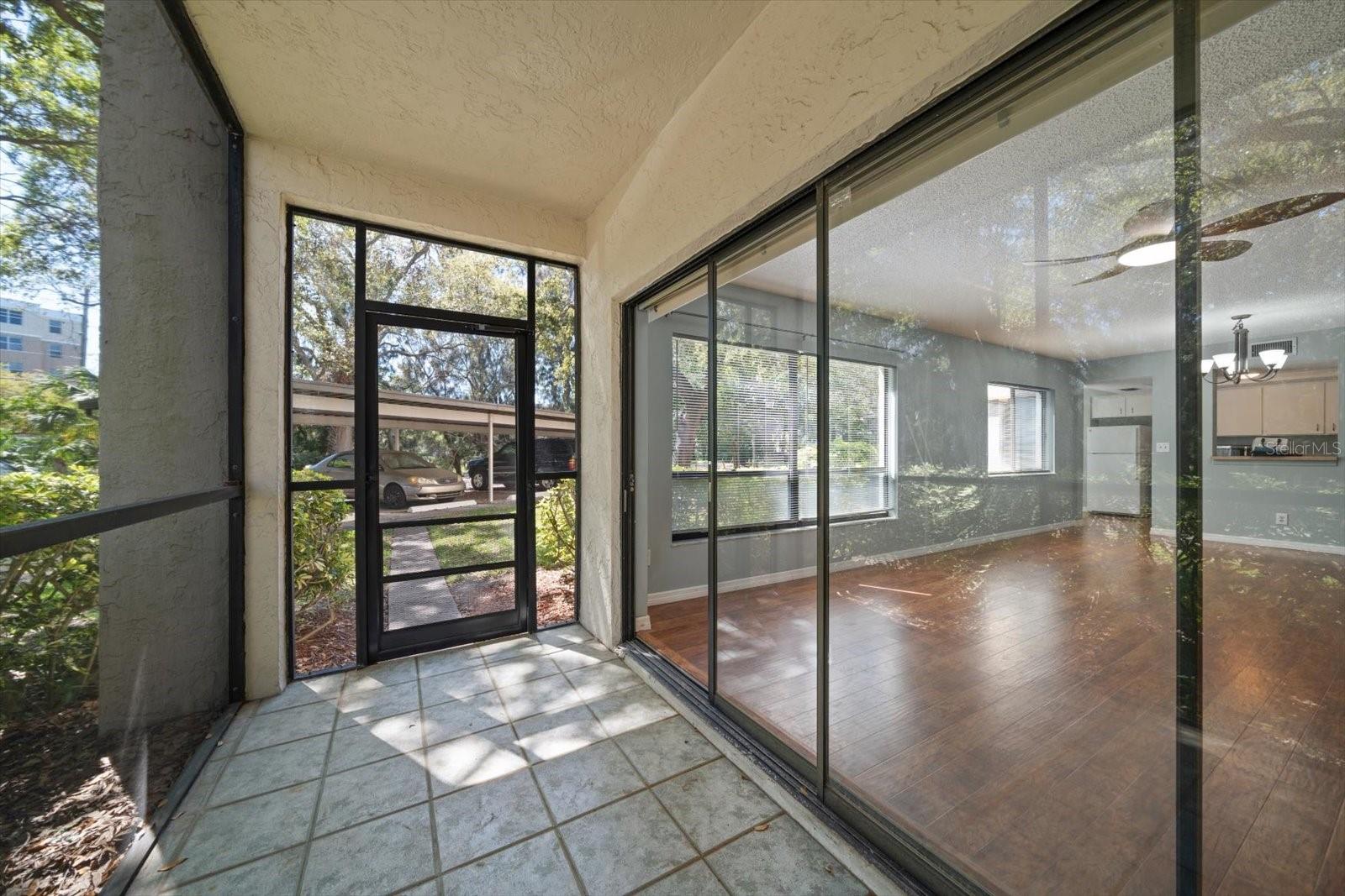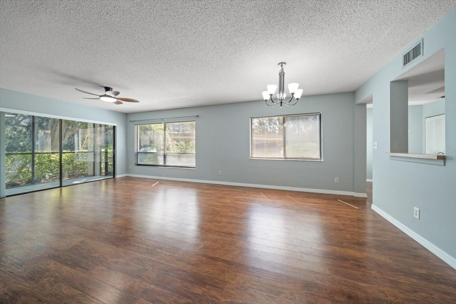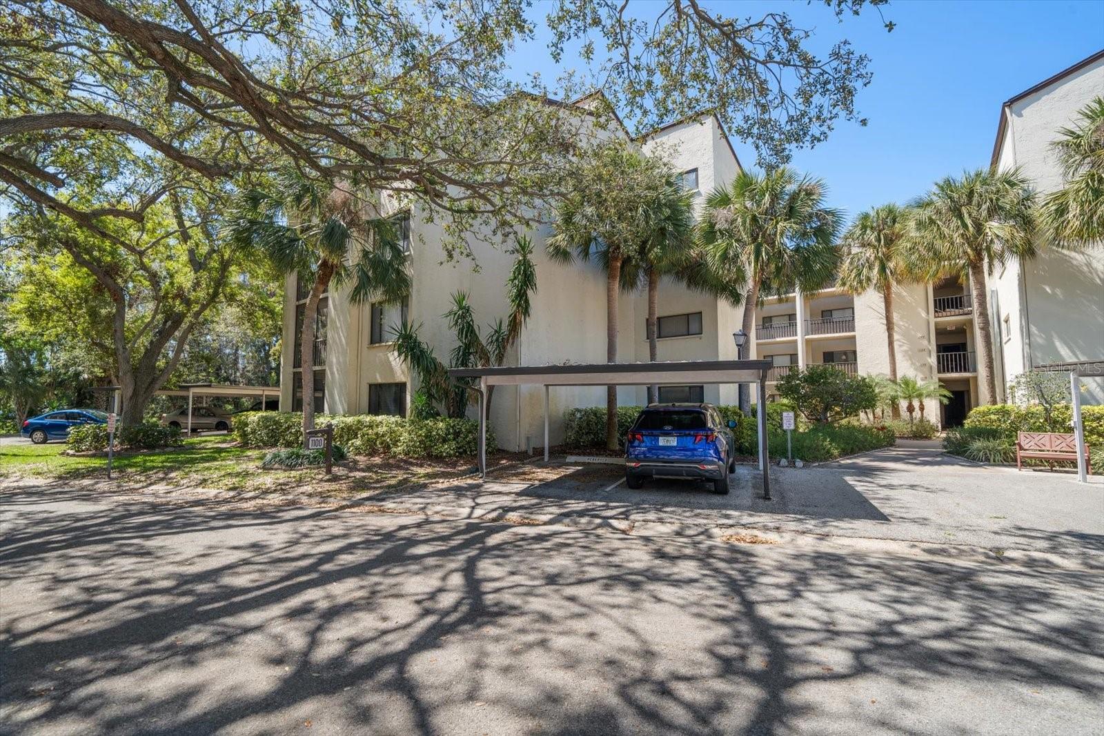 One or more photo(s) has been virtually staged. PRICE IMPROVEMENT! Value is all around you in this first-floor split floorplan condominium offering the perfect combination of privacy and comfort, with no shared walls and easy access to covered parking. This spacious 3-bedroom, 2-bath corner unit in the highly desirable Forestbrook Condominium Community with direct access to East Bay Golf Club has so much to offer for a great price! Step inside to find new Marcona Hickory laminate flooring throughout and a welcoming, open layout. The bright eat-in kitchen is ideal for casual dining, and the entire unit has been freshly painted, ready for your personal touch. The generously sized primary bedroom is a standout feature, complete with two walk-in closets and dual vanities in the ensuite bathroom. Enjoy the peaceful ambiance of your fully screened lanai, accessible via sliding glass doors — the perfect spot for a morning coffee or evening relaxation. Convenience is key, with Maytag washer and dryer in the laundry room and all kitchen appliances included. Ceiling fans help keep the home comfortable, and the AC unit, replaced in 2019, ensures you stay cool year-round. Don't miss the chance to see this charming unit and envision yourself living in this lovely community. Schedule your showing today and make this home your own!
