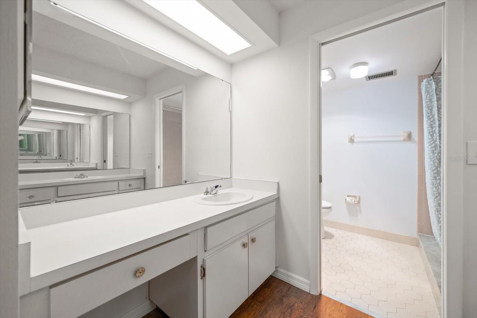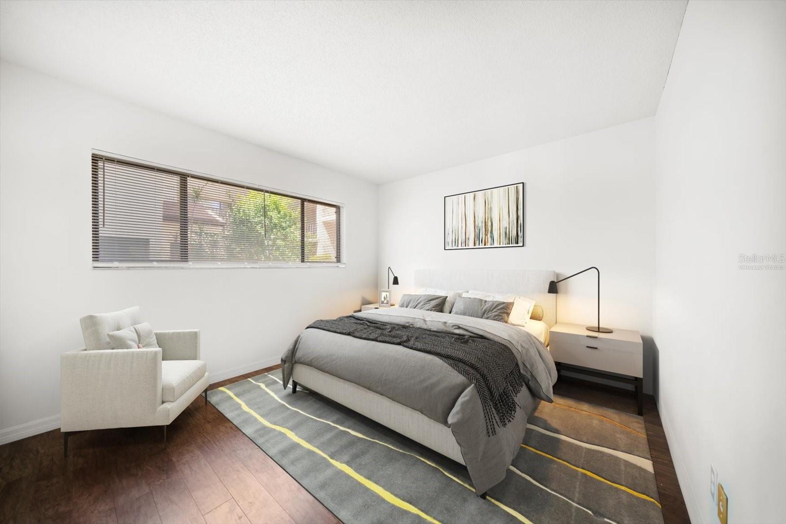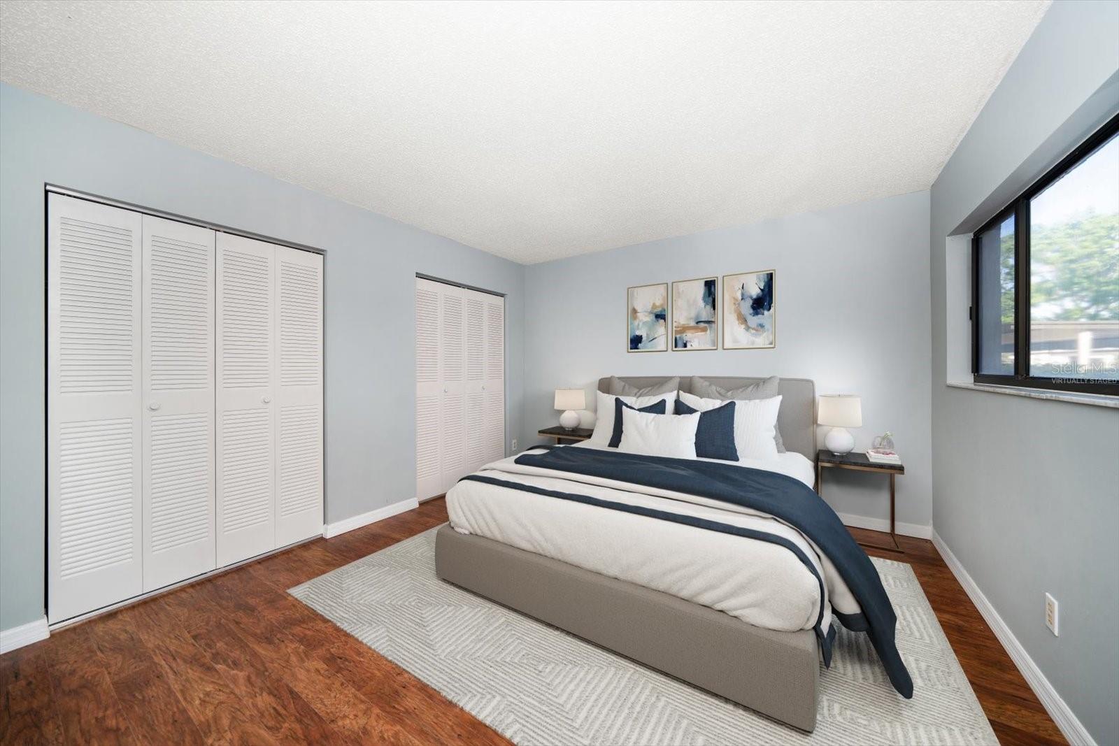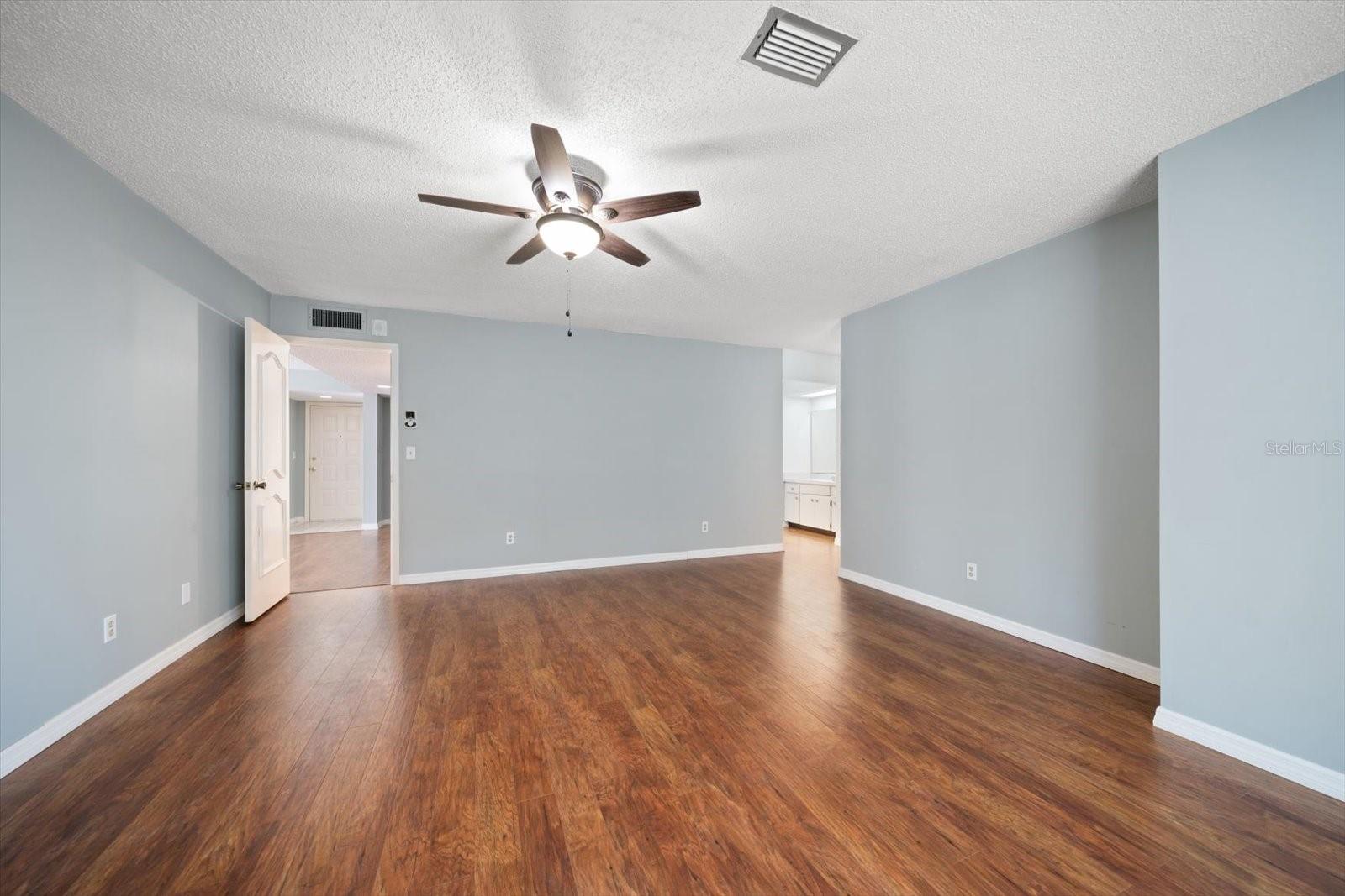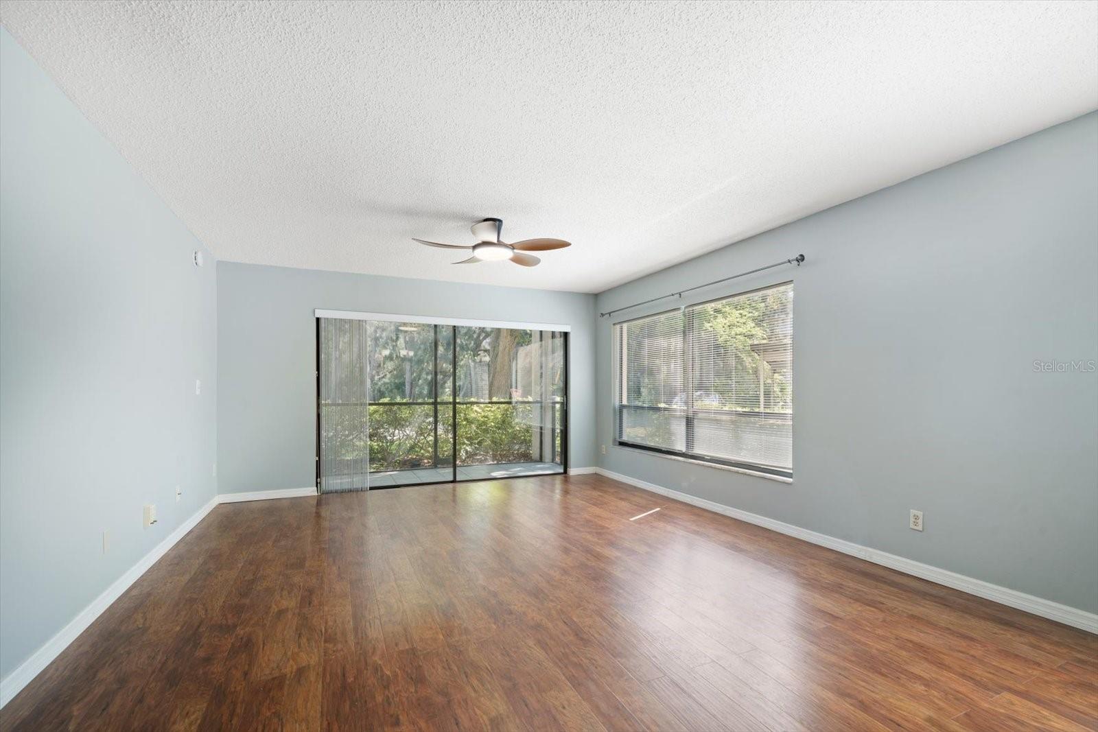 One or more photo(s) has been virtually staged. PRICE IMPROVEMENT! Value is all around you in this first-floor split floorplan condominium offering the perfect combination of privacy and comfort, with no shared walls and easy access to covered parking. This spacious 3-bedroom, 2-bath corner unit in the highly desirable Forestbrook Condominium Community with direct access to East Bay Golf Club has so much to offer for a great price! Step inside to find new Marcona Hickory laminate flooring throughout and a welcoming, open layout. The bright eat-in kitchen is ideal for casual dining, and the entire unit has been freshly painted, ready for your personal touch. The generously sized primary bedroom is a standout feature, complete with two walk-in closets and dual vanities in the ensuite bathroom. Enjoy the peaceful ambiance of your fully screened lanai, accessible via sliding glass doors — the perfect spot for a morning coffee or evening relaxation. Convenience is key, with Maytag washer and dryer in the laundry room and all kitchen appliances included. Ceiling fans help keep the home comfortable, and the AC unit, replaced in 2019, ensures you stay cool year-round. Don't miss the chance to see this charming unit and envision yourself living in this lovely community. Schedule your showing today and make this home your own!