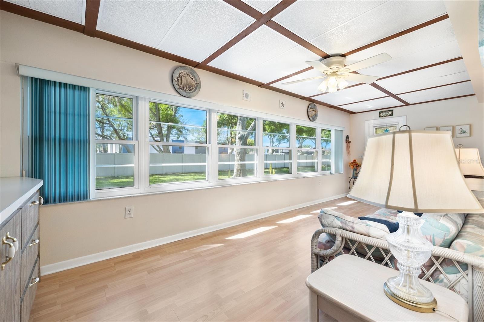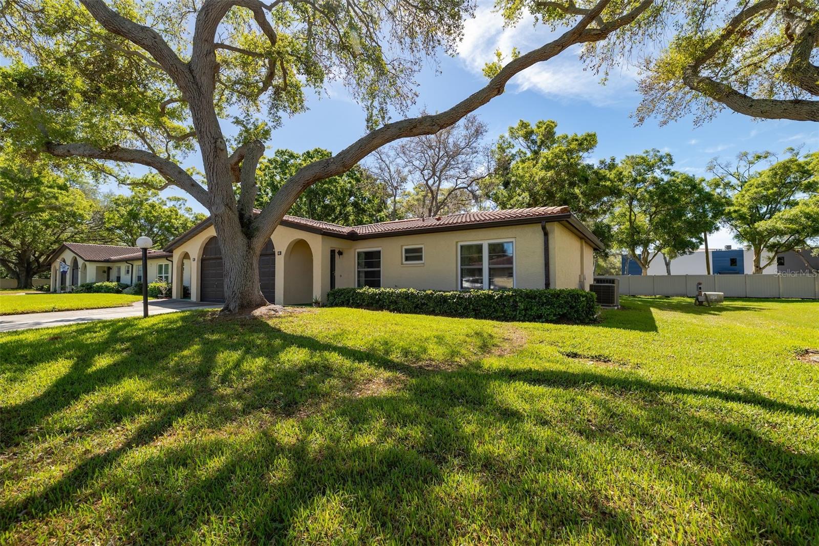Nestled in this highly sought-after 55+ community, this charming end-unit villa is one of only a few with a private unobstructed backyard presenting an oasis of tranquility on your backyard patio, perfect for entertaining/dining/grilling or just enjoying the sunrise. This secluded backyard haven has no rear neighbors along with lush trees. The villa has a newly redone master bath with new tile, vanity, and commode. The master bedroom has a lovely private view of backyard foliage, as well as a large walk-in closet with ample shelving. There is tons of storage built in the unit in the kitchen, florida room, and the dining area. The home has newer hurricane- resistant windows as well as a high-end Trane heat and air system with a dehumidifier feature. The garage has extra storage and a workspace, and a laundry/utility sink. This is a perfect serene setting, home to seasonal and full-time residents, with friendly energy of like-minded individuals. Enjoy the heated pool and walks around the grounds. Just minutes away, the turquoise waters of Indian Rocks Beach beckon. Local shops and restaurants are also within easy reach, ensuring you have everything you need. Right next door is the Largo Golf Course & Southwest Recreation Center. This home is a gateway to a vibrant Florida lifestyle, a welcoming community, and endless beaches.