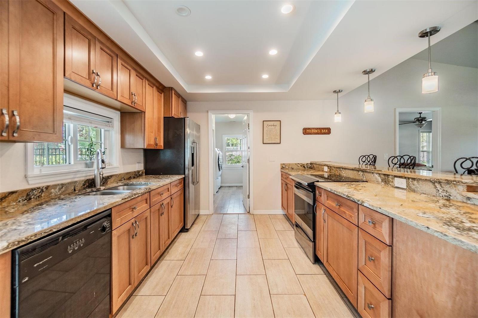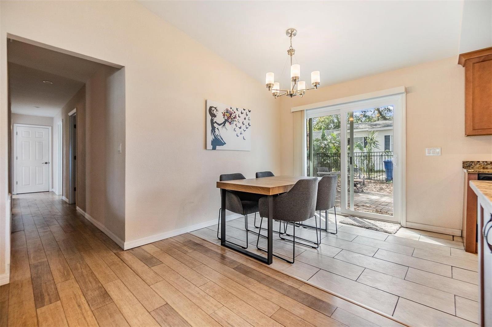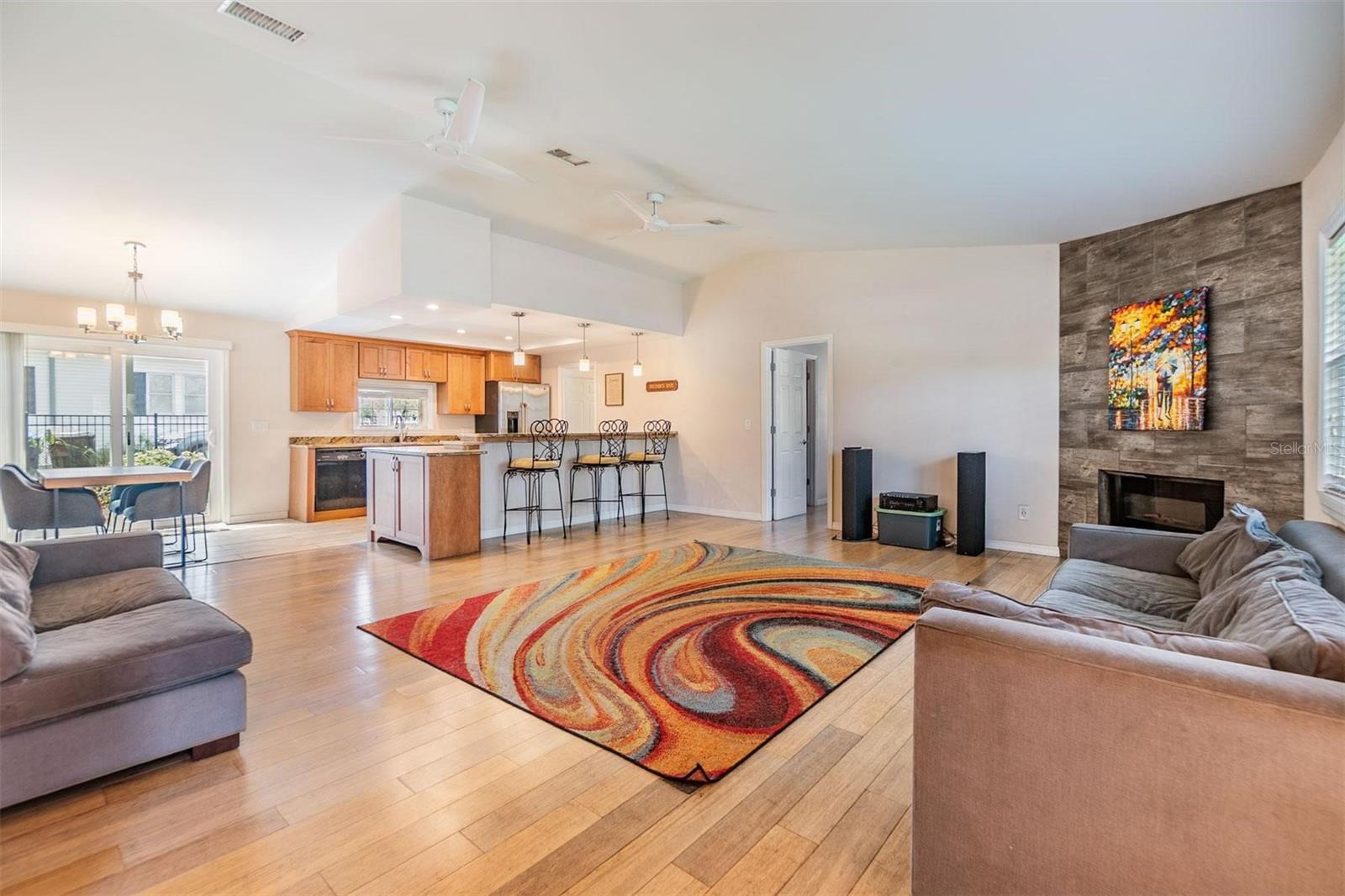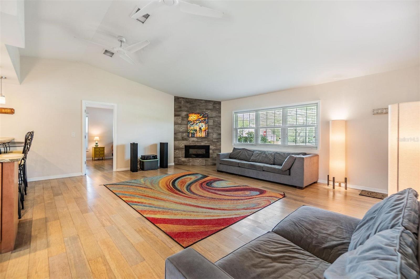 Major Price Improvement!!! Step into this updated 4-bedroom, 2-bathroom home to discover its ideal split bedroom floor plan and open-concept living space with soaring vaulted ceilings and striking bamboo floors that create a bright and inviting gathering space. Relax in front of the wood-burning fireplace or pull a stool up to the raised breakfast bar to have a quick meal or chat with those in the kitchen. The kitchen is a true standout with its granite countertops, rich maple cabinetry, stainless steel appliances and a pantry inside the laundry room just off the kitchen. The dining area flows effortlessly from the kitchen or living room out to the park-like patio area, making indoor-outdoor entertaining a breeze. The primary bedroom feels like a private escape with its walk-in closet and ensuite bathroom featuring elegant tile work, a modern vanity, and a walk-in shower. Three additional bedrooms provide plenty of space for family, guests, or a home office. The second bathroom is tastefully updated with a sleek vanity and a shower/tub combo. Additional highlights include a mudroom with additional storage and an updated electrical panel, new HVAC (2024), and a deep well-fed sprinkler system that keeps the landscaping and corner lot curb appeal vibrant year-round. Plus, hurricane windows and sliders (2024) and no flood insurance required (Flood Zone X) provide peace of mind. Enjoy proximity to Largo Park, shopping, dining, and being just minutes from the beach. Don’t miss it! Schedule your private tour today!