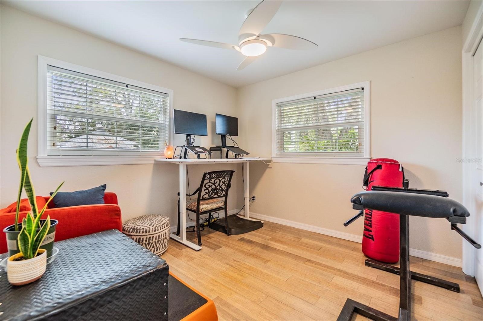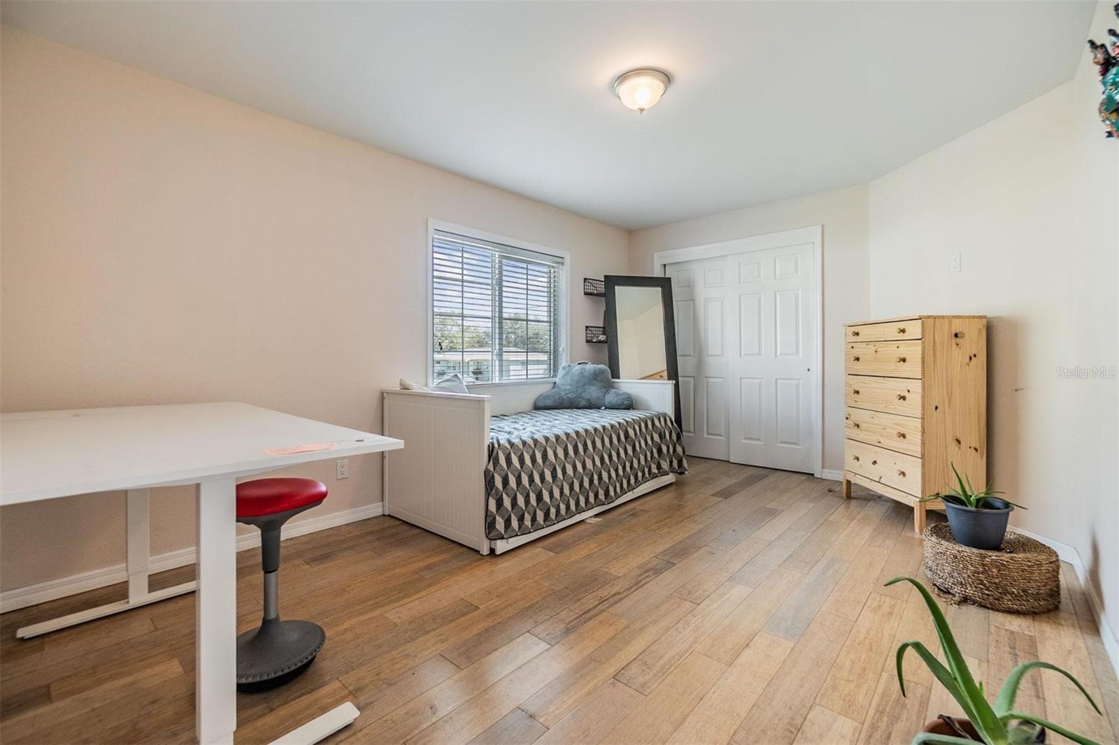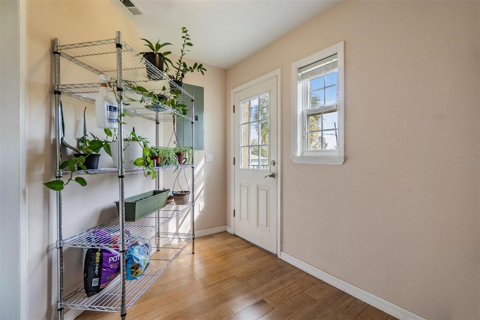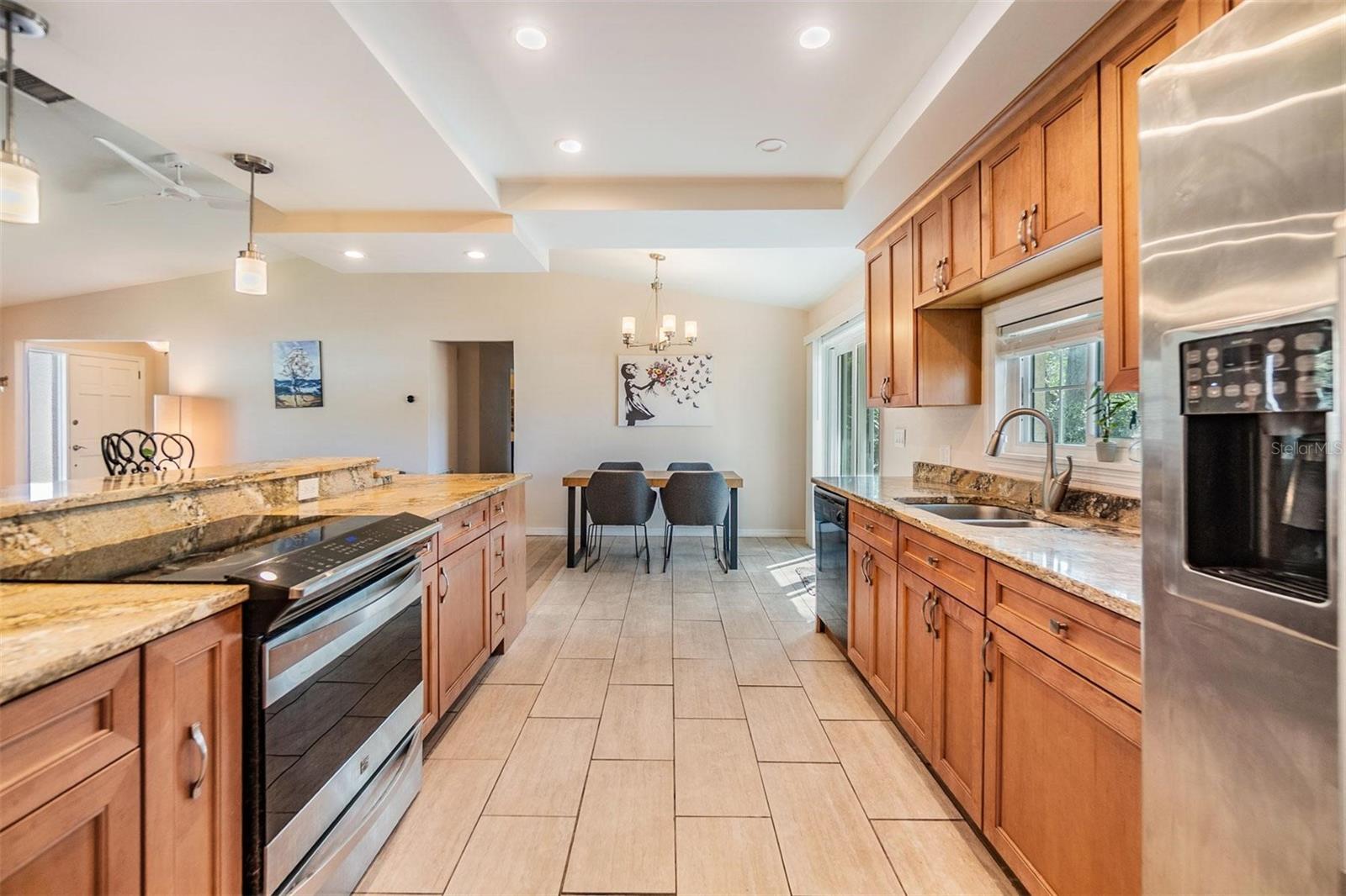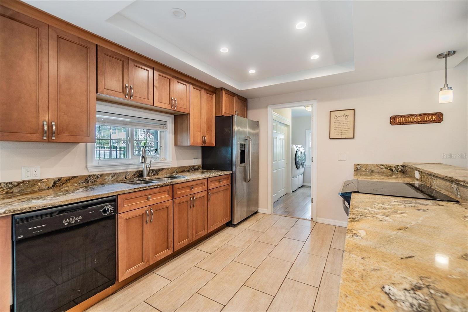 Major Price Improvement!!! Step into this updated 4-bedroom, 2-bathroom home to discover its ideal split bedroom floor plan and open-concept living space with soaring vaulted ceilings and striking bamboo floors that create a bright and inviting gathering space. Relax in front of the wood-burning fireplace or pull a stool up to the raised breakfast bar to have a quick meal or chat with those in the kitchen. The kitchen is a true standout with its granite countertops, rich maple cabinetry, stainless steel appliances and a pantry inside the laundry room just off the kitchen. The dining area flows effortlessly from the kitchen or living room out to the park-like patio area, making indoor-outdoor entertaining a breeze. The primary bedroom feels like a private escape with its walk-in closet and ensuite bathroom featuring elegant tile work, a modern vanity, and a walk-in shower. Three additional bedrooms provide plenty of space for family, guests, or a home office. The second bathroom is tastefully updated with a sleek vanity and a shower/tub combo. Additional highlights include a mudroom with additional storage and an updated electrical panel, new HVAC (2024), and a deep well-fed sprinkler system that keeps the landscaping and corner lot curb appeal vibrant year-round. Plus, hurricane windows and sliders (2024) and no flood insurance required (Flood Zone X) provide peace of mind. Enjoy proximity to Largo Park, shopping, dining, and being just minutes from the beach. Don’t miss it! Schedule your private tour today!