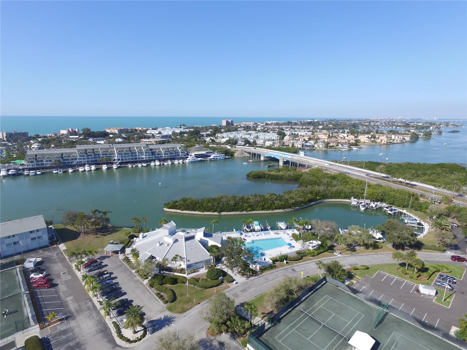 Huge Price reduction for fast sale! NO MILESTONE REPORT NEEDED. ALL AGES WELCOME. The Shipwatch Yacht & Tennis Club located on the Gulf of Mexico's Intracoastal Waterway. This two Bedroom, two bath end unit is a short distance to Indian Rocks Beach and Clearwater Beach. This 56-acre community includes: Boat Slips; Boat Ramp; Private Marina; 11 Tennis Courts; Pickleball courts; 2 pools; Hot Tub; Walking Trails; Clubhouse; Ponds; Bike Trail; a BYOB restaurant/café; and well-maintained grounds. One pet up to 25lbs. is welcome. This unit is on the second level. Entry closet and a few stairs to your open living room/dining room combo with vaulted ceilings and windows. There is also a bonus room. The kitchen has an eat in area and a laundry closet. A/C replaced in February 2025. Phase five has one of the lowest month fees in the development. There is an exterior shed for owners use. One designated parking space under carport. Priced to sell! Come redecorate and make this yours. Close to shopping, restaurants, hospitals and clinics, pubs, grocery stores and the Beaches!