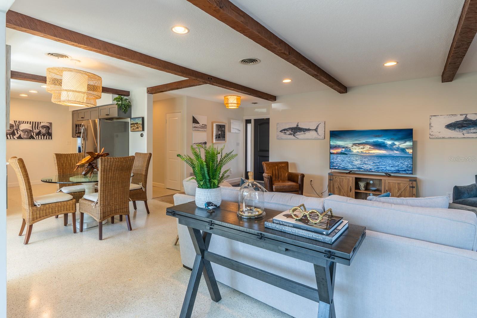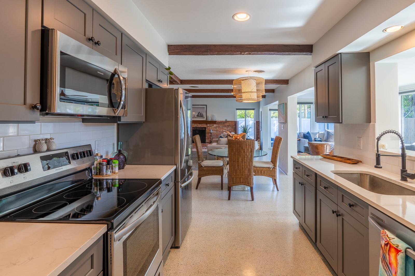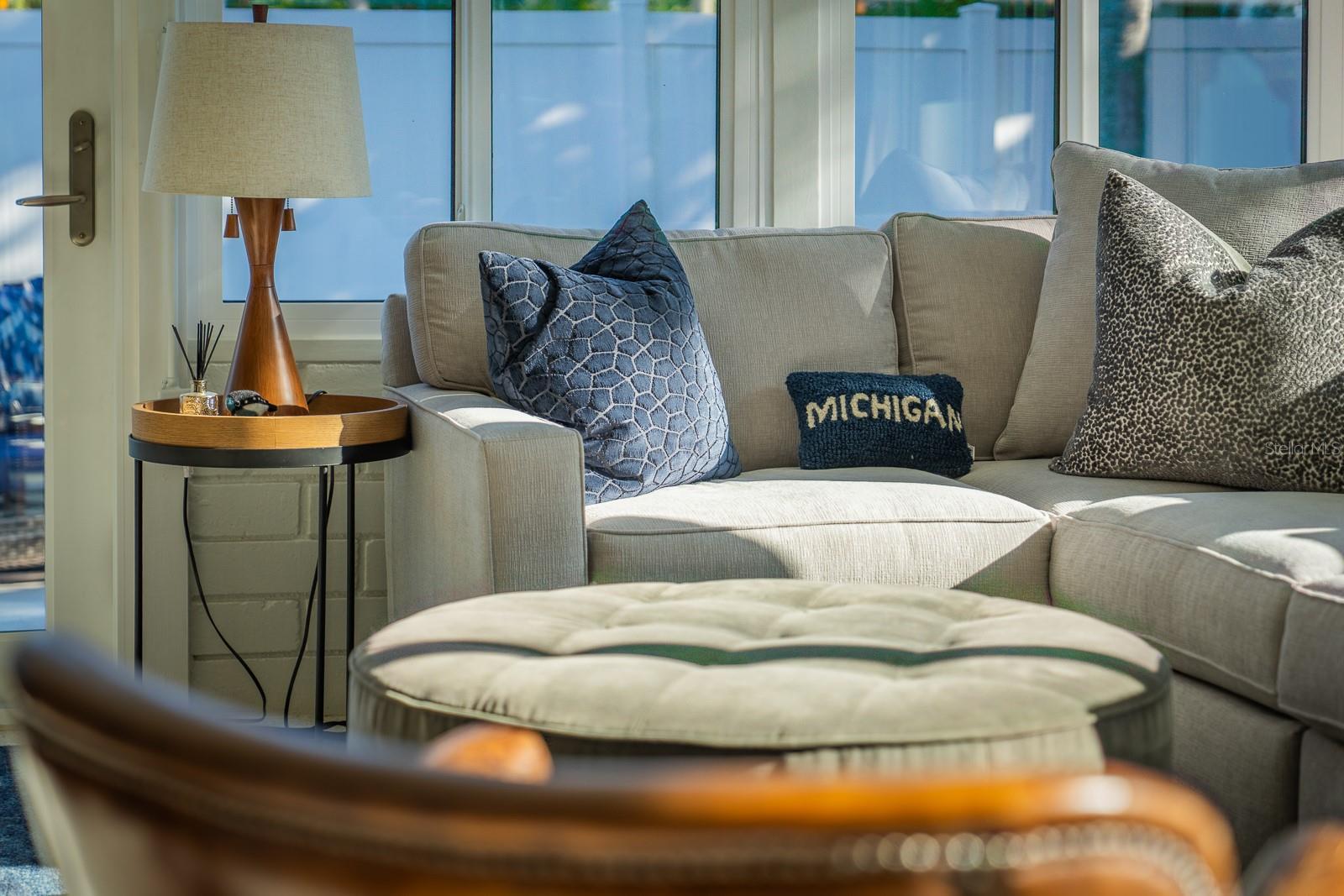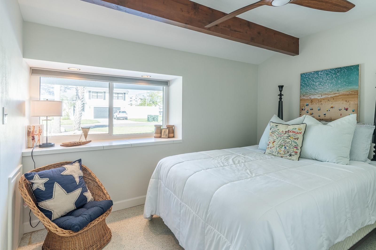 Nestled between Clearwater and Belleair, this stunning, sold FULLY FURNISHED, 3 bedroom, 2 bathroom home exudes coastal charm and effortless elegance. From the moment you step inside, you’ll be captivated by its character, warmth, and timeless style. Polished terrazzo floors flow throughout, while large windows across the entire back of the home bathe the space in abundant natural light. To the left, the inviting living room boasts original wood beams and a stunning brick wood-burning fireplace, creating a cozy yet refined ambiance. To the right, the beautifully designed kitchen features quartz countertops, high-quality wood cabinetry, and a seamless connection to the home’s airy and bright Florida room. This entertainer’s haven includes a stylish wet bar, complete with a fridge, cabinet space, and matching quartz countertops that create a cohesive and coastal elegant feel. The bedrooms are thoughtfully positioned to the right of the home, connected by a well-appointed Jack-and-Jill bathroom. Each guest room features charming alcove-style windows, enhancing the home’s inviting appeal. The owner’s suite is a private retreat, featuring a walk-in closet, an impeccable master bathroom, and sliding doors leading to the Florida room. The original wood beams further enhance the beachy charm of this coastal main suite. This home has been meticulously maintained, tastefully designed, and beautifully furnished. Every single detail has been carefully thought through, and it was remodeled with high-quality fixtures and features, built to last, ensuring timeless beauty and durability. Outside, the fully fenced backyard offers a serene escape, complete with a concrete patio perfect for unwinding, enjoying the coastal breeze, and savoring the salt air year-round. The beautiful front yard and driveway, accented by rocks and palm trees, create a stunning first impression, blending natural beauty with a coastal feel. Additional highlights include impact windows, an oversized two-car garage, a new washer and dryer, split A/C system for energy-efficient comfort. This home is more than just an address, it’s a lifestyle. Just a short bike ride to breathtaking Gulf sunsets and the vibrant Indian Rocks Beach community, known for its coastal shops, cafés, restaurants and festivals. Located minutes from Indian Rocks Beach, Belleair Beach, Sand Key Park, Pier 60, Largo Nature Preserve, Clearwater Community Sailing Center, and the Clearwater Marine Aquarium. Don’t miss this true Florida gem, your coastal dream home awaits! Home will be sold fully furnished (some exclusions apply) Main roof (2014) AC (2019/2025) Water heater (2025) Stainless Steel appliances (2021) Washer/Dryer (2025) Windows (2021)