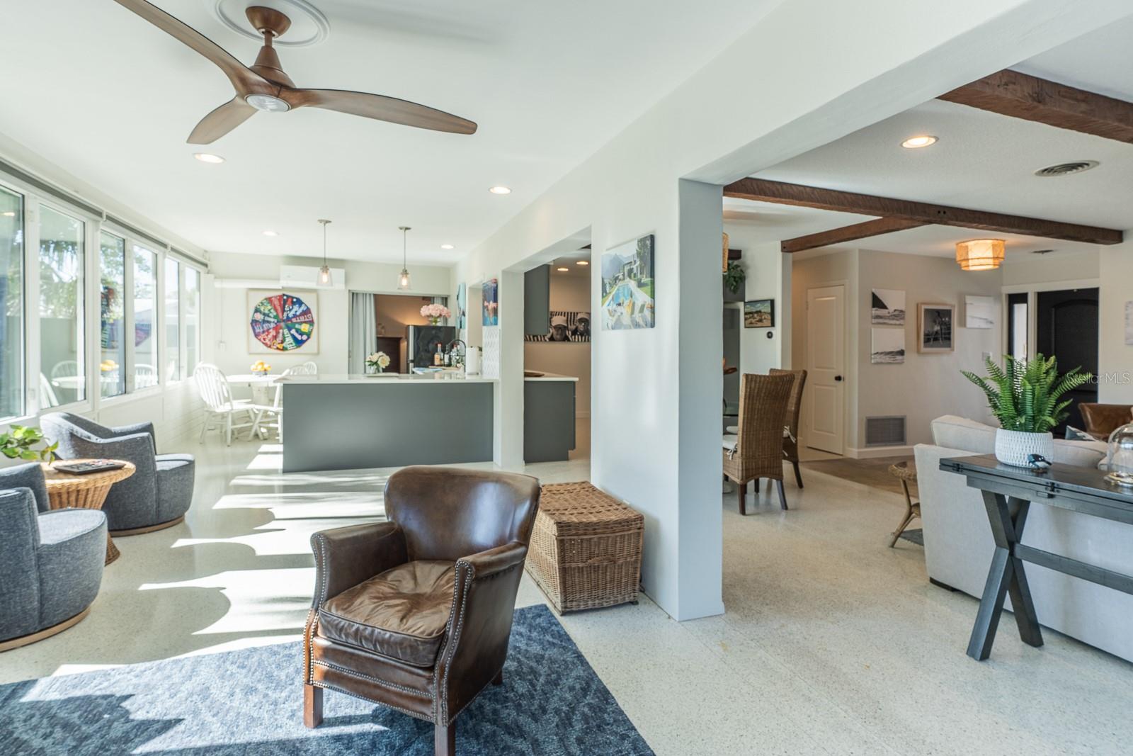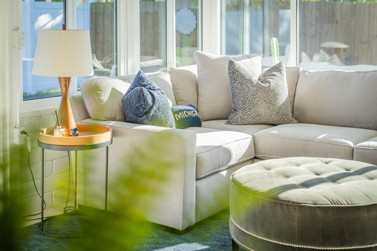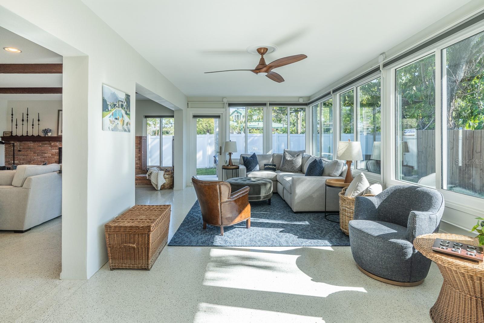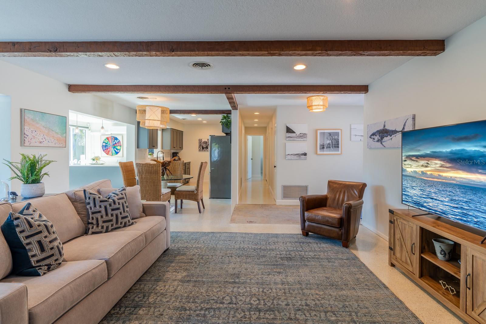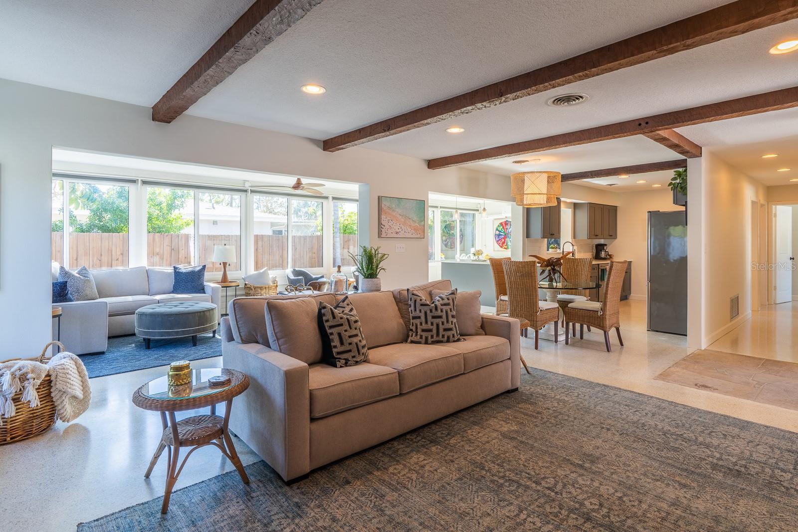 Nestled between Clearwater and Belleair, this stunning, sold FULLY FURNISHED, 3 bedroom, 2 bathroom home exudes coastal charm and effortless elegance. From the moment you step inside, you’ll be captivated by its character, warmth, and timeless style. Polished terrazzo floors flow throughout, while large windows across the entire back of the home bathe the space in abundant natural light. To the left, the inviting living room boasts original wood beams and a stunning brick wood-burning fireplace, creating a cozy yet refined ambiance. To the right, the beautifully designed kitchen features quartz countertops, high-quality wood cabinetry, and a seamless connection to the home’s airy and bright Florida room. This entertainer’s haven includes a stylish wet bar, complete with a fridge, cabinet space, and matching quartz countertops that create a cohesive and coastal elegant feel. The bedrooms are thoughtfully positioned to the right of the home, connected by a well-appointed Jack-and-Jill bathroom. Each guest room features charming alcove-style windows, enhancing the home’s inviting appeal. The owner’s suite is a private retreat, featuring a walk-in closet, an impeccable master bathroom, and sliding doors leading to the Florida room. The original wood beams further enhance the beachy charm of this coastal main suite. This home has been meticulously maintained, tastefully designed, and beautifully furnished. Every single detail has been carefully thought through, and it was remodeled with high-quality fixtures and features, built to last, ensuring timeless beauty and durability. Outside, the fully fenced backyard offers a serene escape, complete with a concrete patio perfect for unwinding, enjoying the coastal breeze, and savoring the salt air year-round. The beautiful front yard and driveway, accented by rocks and palm trees, create a stunning first impression, blending natural beauty with a coastal feel. Additional highlights include impact windows, an oversized two-car garage, a new washer and dryer, split A/C system for energy-efficient comfort. This home is more than just an address, it’s a lifestyle. Just a short bike ride to breathtaking Gulf sunsets and the vibrant Indian Rocks Beach community, known for its coastal shops, cafés, restaurants and festivals. Located minutes from Indian Rocks Beach, Belleair Beach, Sand Key Park, Pier 60, Largo Nature Preserve, Clearwater Community Sailing Center, and the Clearwater Marine Aquarium. Don’t miss this true Florida gem, your coastal dream home awaits! Home will be sold fully furnished (some exclusions apply) Main roof (2014) AC (2019/2025) Water heater (2025) Stainless Steel appliances (2021) Washer/Dryer (2025) Windows (2021)