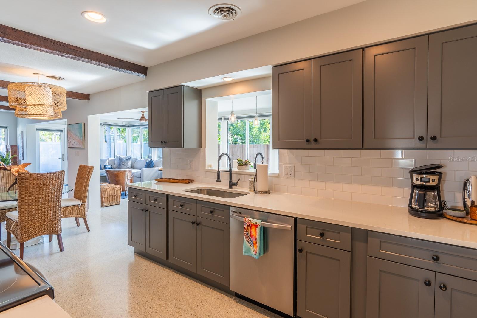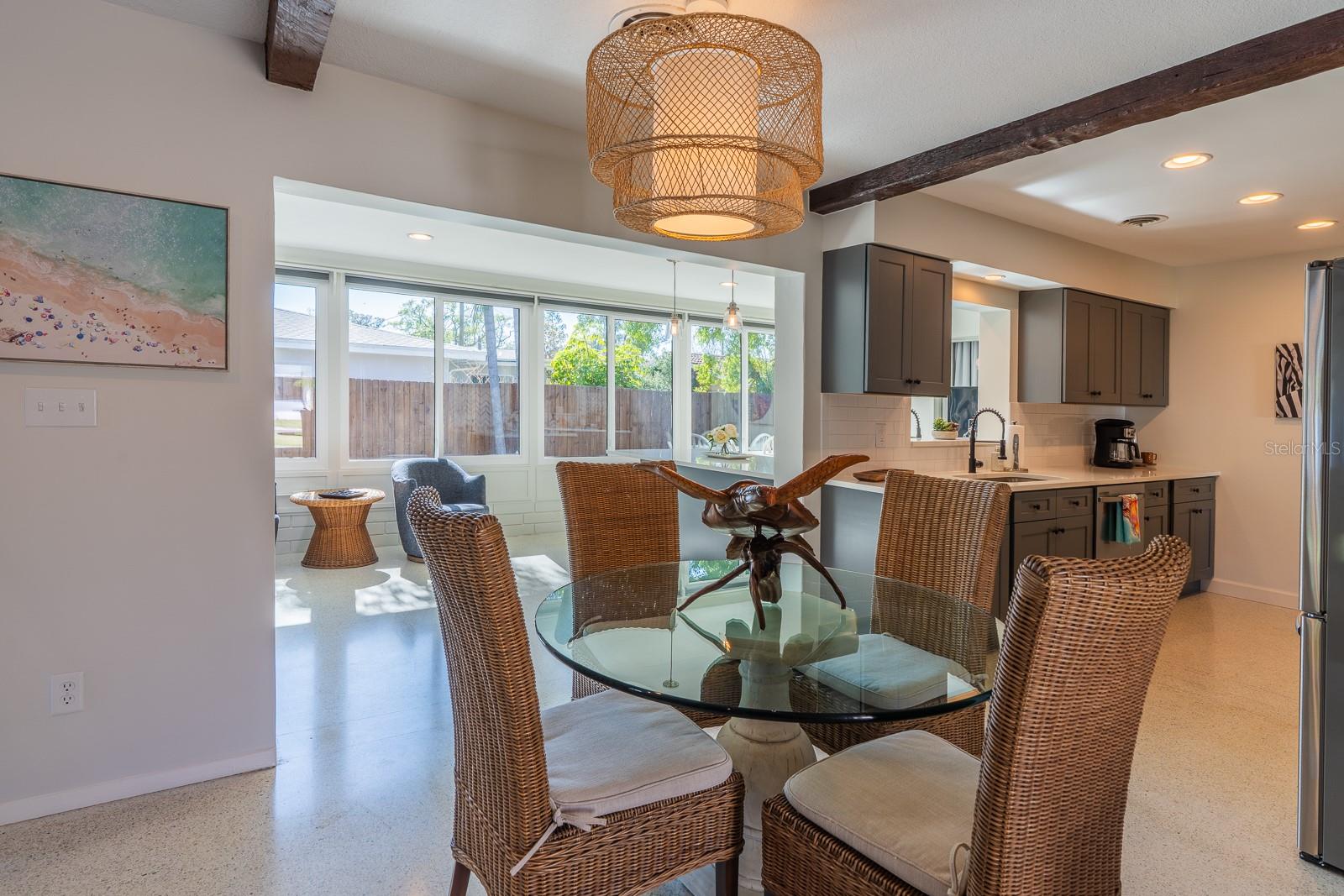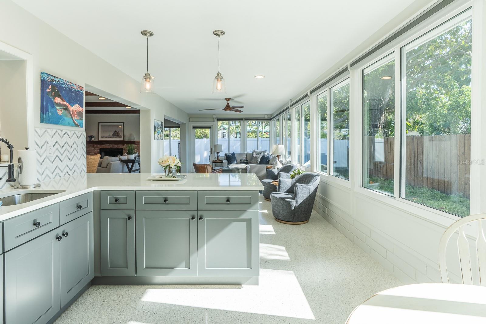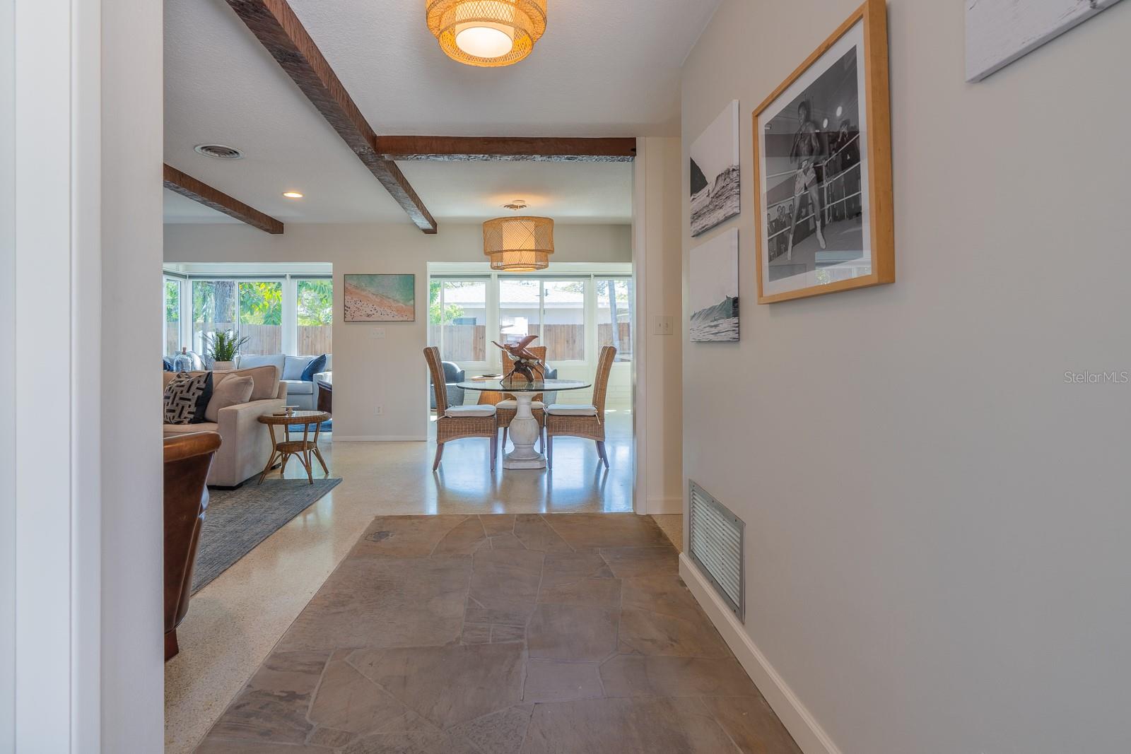 Nestled between Clearwater and Belleair, this stunning, sold FULLY FURNISHED, 3 bedroom, 2 bathroom home exudes coastal charm and effortless elegance. From the moment you step inside, you’ll be captivated by its character, warmth, and timeless style. Polished terrazzo floors flow throughout, while large windows across the entire back of the home bathe the space in abundant natural light. To the left, the inviting living room boasts original wood beams and a stunning brick wood-burning fireplace, creating a cozy yet refined ambiance. To the right, the beautifully designed kitchen features quartz countertops, high-quality wood cabinetry, and a seamless connection to the home’s airy and bright Florida room. This entertainer’s haven includes a stylish wet bar, complete with a fridge, cabinet space, and matching quartz countertops that create a cohesive and coastal elegant feel. The bedrooms are thoughtfully positioned to the right of the home, connected by a well-appointed Jack-and-Jill bathroom. Each guest room features charming alcove-style windows, enhancing the home’s inviting appeal. The owner’s suite is a private retreat, featuring a walk-in closet, an impeccable master bathroom, and sliding doors leading to the Florida room. The original wood beams further enhance the beachy charm of this coastal main suite. This home has been meticulously maintained, tastefully designed, and beautifully furnished. Every single detail has been carefully thought through, and it was remodeled with high-quality fixtures and features, built to last, ensuring timeless beauty and durability. Outside, the fully fenced backyard offers a serene escape, complete with a concrete patio perfect for unwinding, enjoying the coastal breeze, and savoring the salt air year-round. The beautiful front yard and driveway, accented by rocks and palm trees, create a stunning first impression, blending natural beauty with a coastal feel. Additional highlights include impact windows, an oversized two-car garage, a new washer and dryer, split A/C system for energy-efficient comfort. This home is more than just an address, it’s a lifestyle. Just a short bike ride to breathtaking Gulf sunsets and the vibrant Indian Rocks Beach community, known for its coastal shops, cafés, restaurants and festivals. Located minutes from Indian Rocks Beach, Belleair Beach, Sand Key Park, Pier 60, Largo Nature Preserve, Clearwater Community Sailing Center, and the Clearwater Marine Aquarium. Don’t miss this true Florida gem, your coastal dream home awaits! Home will be sold fully furnished (some exclusions apply) Main roof (2014) AC (2019/2025) Water heater (2025) Stainless Steel appliances (2021) Washer/Dryer (2025) Windows (2021)