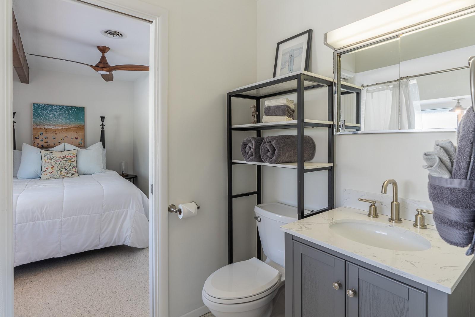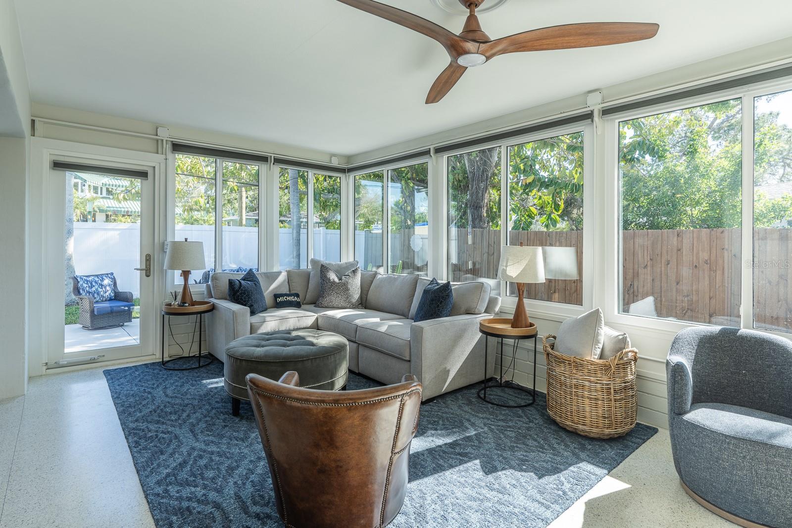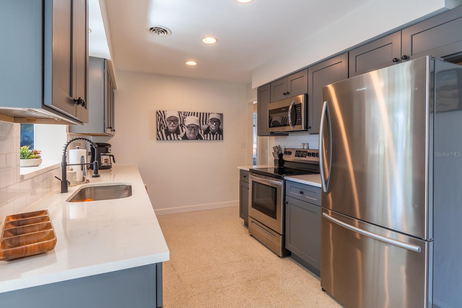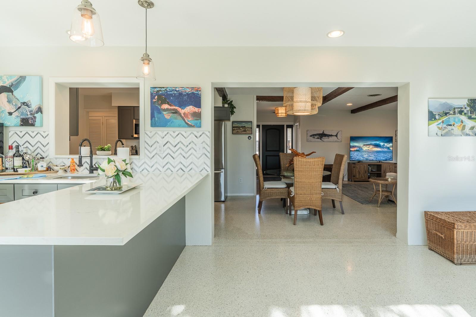 Nestled between Clearwater and Belleair, this stunning, sold FULLY FURNISHED, 3 bedroom, 2 bathroom home exudes coastal charm and effortless elegance. From the moment you step inside, you’ll be captivated by its character, warmth, and timeless style. Polished terrazzo floors flow throughout, while large windows across the entire back of the home bathe the space in abundant natural light. To the left, the inviting living room boasts original wood beams and a stunning brick wood-burning fireplace, creating a cozy yet refined ambiance. To the right, the beautifully designed kitchen features quartz countertops, high-quality wood cabinetry, and a seamless connection to the home’s airy and bright Florida room. This entertainer’s haven includes a stylish wet bar, complete with a fridge, cabinet space, and matching quartz countertops that create a cohesive and coastal elegant feel. The bedrooms are thoughtfully positioned to the right of the home, connected by a well-appointed Jack-and-Jill bathroom. Each guest room features charming alcove-style windows, enhancing the home’s inviting appeal. The owner’s suite is a private retreat, featuring a walk-in closet, an impeccable master bathroom, and sliding doors leading to the Florida room. The original wood beams further enhance the beachy charm of this coastal main suite. This home has been meticulously maintained, tastefully designed, and beautifully furnished. Every single detail has been carefully thought through, and it was remodeled with high-quality fixtures and features, built to last, ensuring timeless beauty and durability. Outside, the fully fenced backyard offers a serene escape, complete with a concrete patio perfect for unwinding, enjoying the coastal breeze, and savoring the salt air year-round. The beautiful front yard and driveway, accented by rocks and palm trees, create a stunning first impression, blending natural beauty with a coastal feel. Additional highlights include impact windows, an oversized two-car garage, a new washer and dryer, split A/C system for energy-efficient comfort. This home is more than just an address, it’s a lifestyle. Just a short bike ride to breathtaking Gulf sunsets and the vibrant Indian Rocks Beach community, known for its coastal shops, cafés, restaurants and festivals. Located minutes from Indian Rocks Beach, Belleair Beach, Sand Key Park, Pier 60, Largo Nature Preserve, Clearwater Community Sailing Center, and the Clearwater Marine Aquarium. Don’t miss this true Florida gem, your coastal dream home awaits! Home will be sold fully furnished (some exclusions apply) Main roof (2014) AC (2019/2025) Water heater (2025) Stainless Steel appliances (2021) Washer/Dryer (2025) Windows (2021)