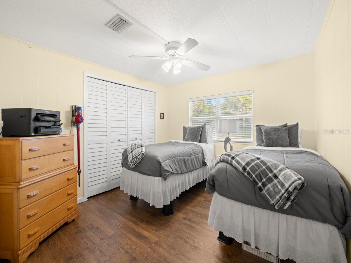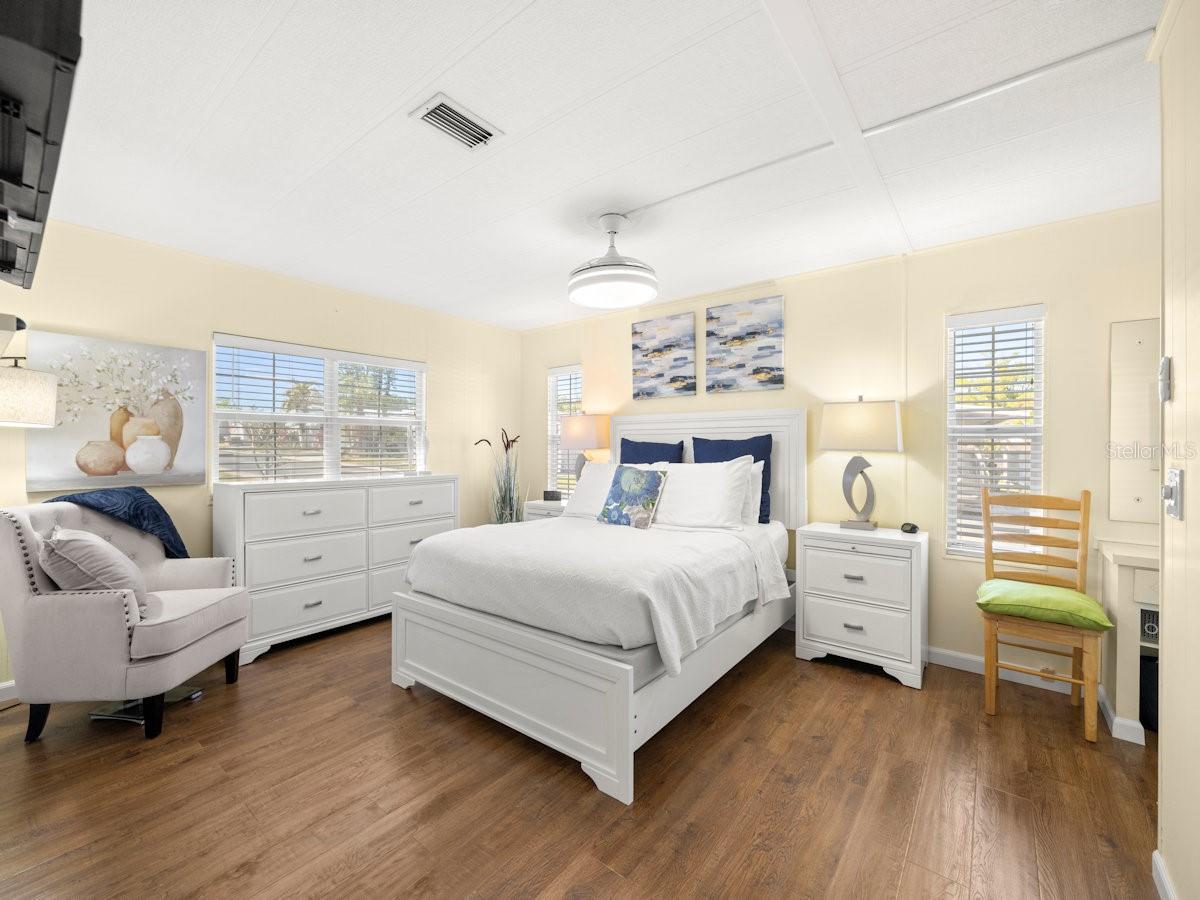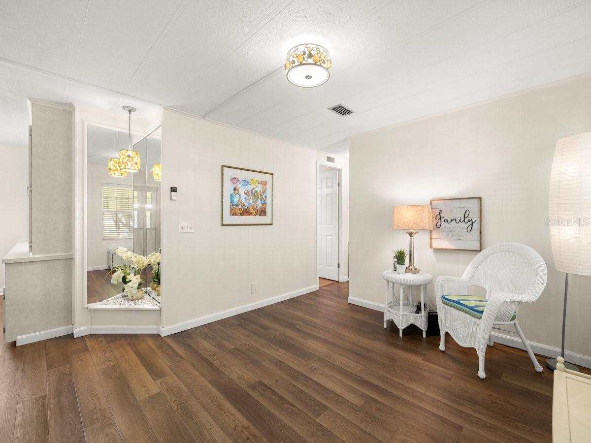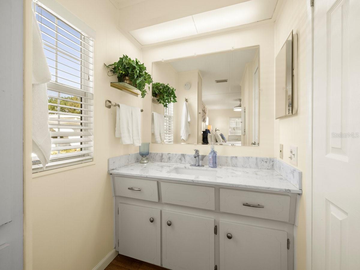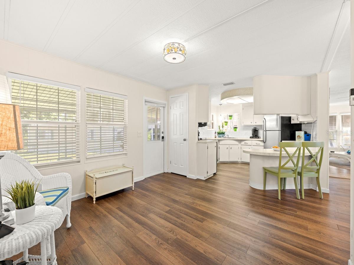 Palm Hill Country Club, a premier 55+ community, is where you will find this superb, manufactured home located in a peaceful, less traveled section called the Forest. It sits on an especially generous sized corner lot. This 1,297 sq ft two bedroom, two bath home has a side screen room-a perfect spot to enjoy morning coffee while relishing the early morning sunshine. This is also a good spot to enjoy one of Palm Hill’s nearby ponds with its glimmering fountain. Owners and renters find much to do to keep active. From pools, golf, pickleball, tennis, shuffleboard, clubs, dances, and other clubhouses activities, no one stays a stranger for long. One monthly fee covers lawn care, water, sewer, trash removal, recycling, internet and cable. Light from the generous size front bay windows and the generous placed side windows bring sunshine inside. The soft colored walls create a comfortable setting for easy Florida living. Laminate floors throughout complete the contemporary look and make for easy cleaning. Stylish furnishings throughout the home will remain for the buyers. These are observable details found throughout 32 Palm Forest Drive. The stainless appliances are all updated. Soft colored backsplash, newer hardware, and laminate floors present a pleasant kitchen. The kitchen flows naturally to the remainder of the living area. The current owners use the area directly beyond the kitchen as a family room or den. On the other side is the sit-down dining area with its convenient built in hutch for displaying trinkets and drawer space. The enormous living area covers the remainder of the living space. All the furnishings will remain with the home for new owners. The furnishings are upscale and complement the flooring and pale wall color. A door at the far end of the room leads outside. The updated primary bedroom is at the far end of the home. There is plenty of closet space with the two closets (one being walk-in.) The round ceiling light and fan stand out. Furnishings are all updated. The ensuite bath is refreshed with new vanity, Corian counter, toilet, and gorgeous shower and tile. The large guest bedroom is also nicely equipped and lies across from the guest bath with tub with shower. Doors, closets in the bedrooms, and throughout the main living area have modern six panel doors. Hallways occupy little space in the home emphasizing the roominess of the property. Ceiling fans in the living area, and both bedrooms distribute air flow for comfortable living. A new a/c was installed in February of 2022. Nothing left to do here -bring your personal items and move right in. Driving to 32 Palm Forest Drive you will want to stop your car and take note of the space between properties on this cul-de-sac. The amount of space around this home is exceptional. The home really stands out. This one has a roof over, light colored siding, and front bay windows with red shutters. The carport leads to the lowered screen room with an adequately sized storage shed featuring a two-month new washer and a dryer. No need to go outside for laundry as you can to step from the screen room into the home. What you can’t see is the vapor barrier which was redone approximately six years ago. Whether you are looking for a full-time home or an exceptional winter home this property is well worth your consideration. The list price includes one share in the community. Please call for a private viewing.