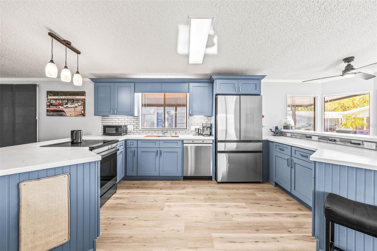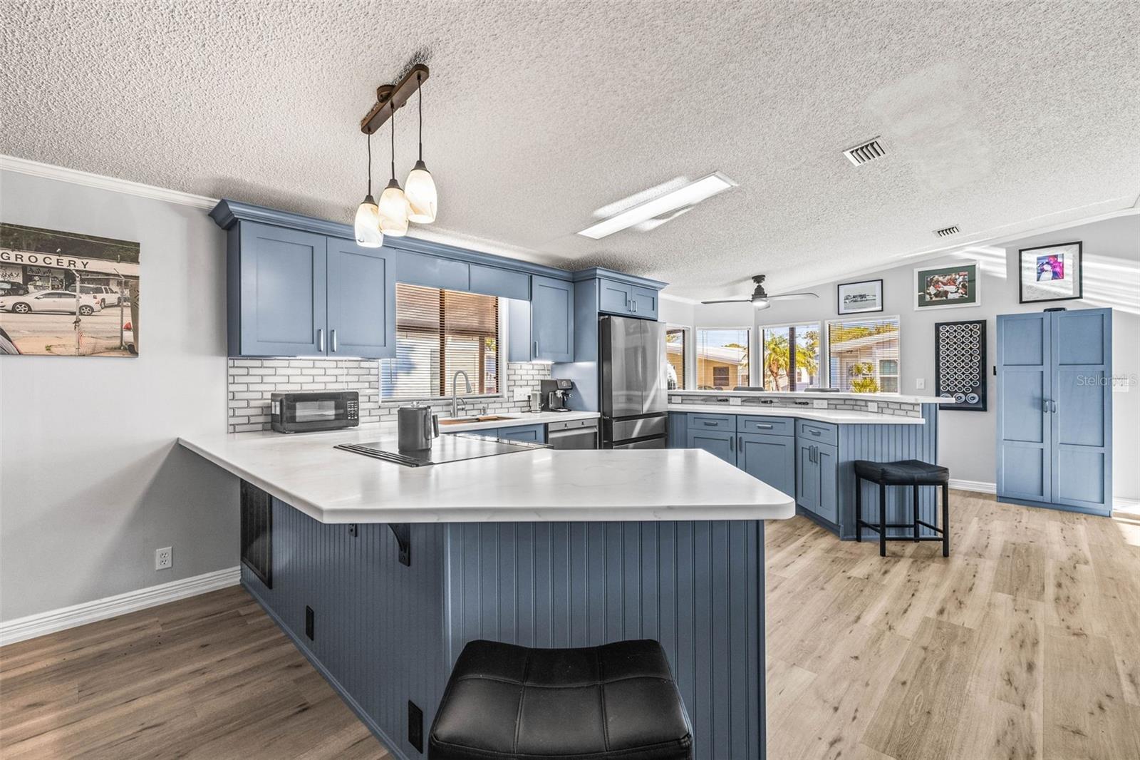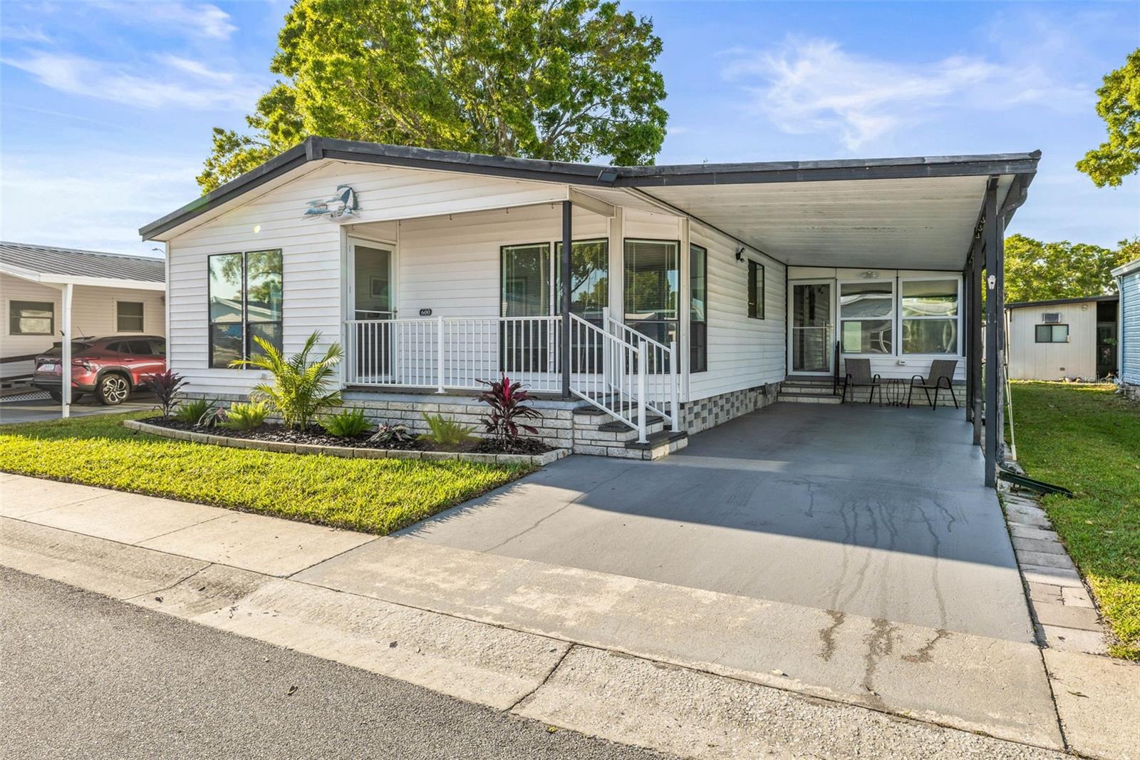 Welcome to PARADISE ISLAND, one of the most sought-after 55+ communities in Largo! This stunning remodeled mobile home boasts a large open floor plan with high end upgrades throughout. From the brand-new luxury vinyl plank flooring and plush carpet to the modern fixtures and upgraded appliances, every detail has been thoughtfully designed for comfort and style. The home has new interior paint and NEW beautifully, modern wallpaper throughout. The spacious layout offers plenty of natural light, creating an inviting and airy atmosphere. The updated kitchen features sleek countertops and high-end appliances which include Samsung Bespoke Induction range that offers standard bake and broil, convection bake, convection roast, air fry, and sous vide, a Samsung Bespoke 4 door refrigerator, and a Samsung dishwasher. You will love all the brand-new cabinets and free-standing pantry for the perfect space. This is a chefs dream kitchen! This home comes partially furnished with the included NEWER furniture, dining room glass top table with four chairs, living room large sectional, glass top coffee table, 70" television console, floor lamp, accent chair, glass top end table, living room area rug. The den includes sofa style futon, area rug. On the exterior of the home the roof has been inspected and maintenanced, BRAND NEW HVAC, front entry way steps replaced, planter landscaped, new front sod, and driveway freshly painted. And just when you thought you had it all, the location is PRIME with being minutes from restaurants, shopping, entertainment and Gulf beaches! Paradise Island offers fantastic amenities including a HEATED POOL, spa, clubhouse, fitness center, and social activities making it an ideal place to call home. Don't miss this opportunity to own a stunning move in ready home in one of the best communities around!