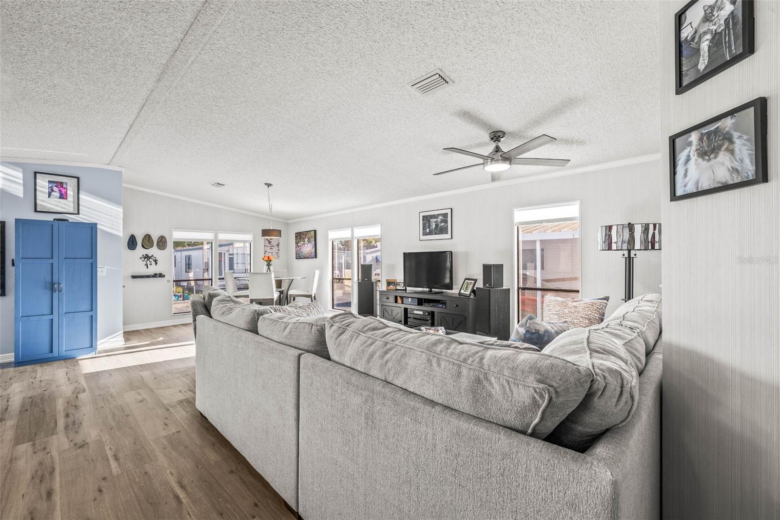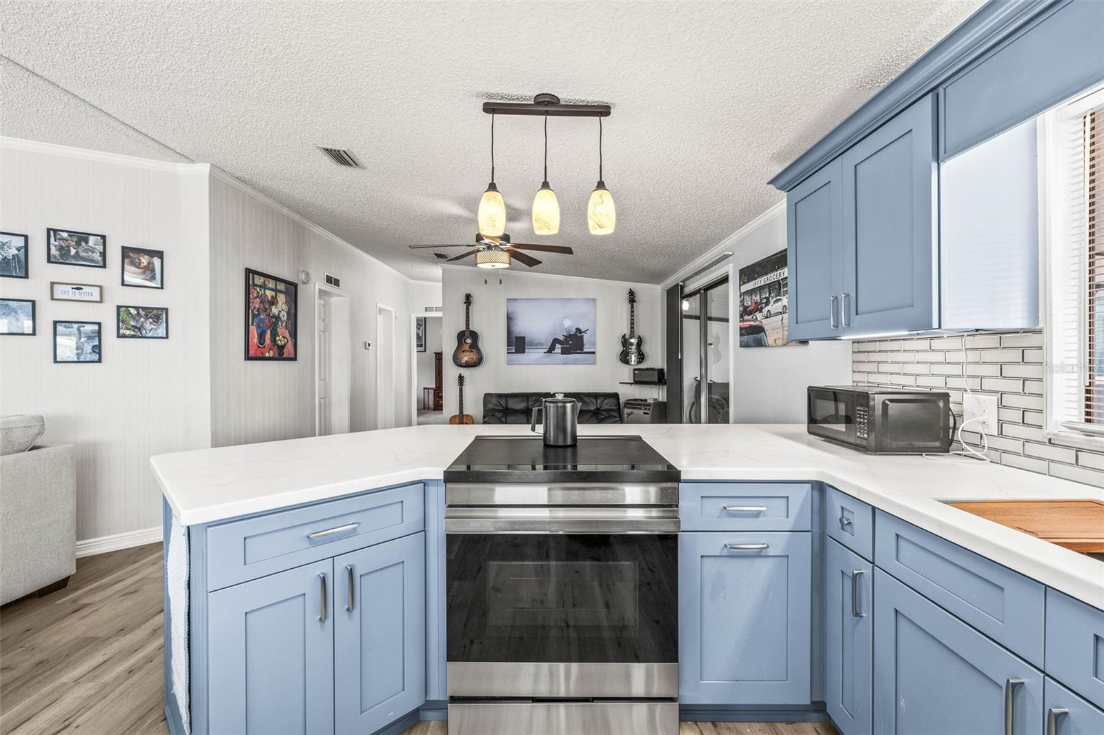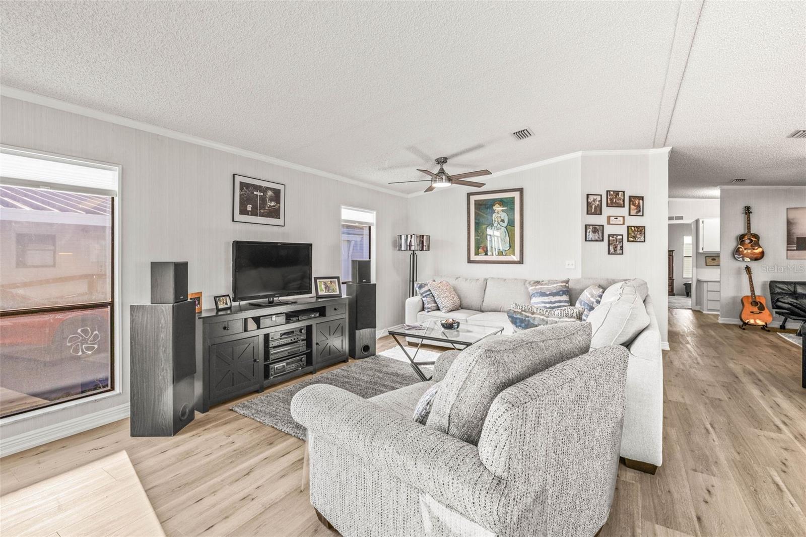 Welcome to PARADISE ISLAND, one of the most sought-after 55+ communities in Largo! This stunning remodeled mobile home boasts a large open floor plan with high end upgrades throughout. From the brand-new luxury vinyl plank flooring and plush carpet to the modern fixtures and upgraded appliances, every detail has been thoughtfully designed for comfort and style. The home has new interior paint and NEW beautifully, modern wallpaper throughout. The spacious layout offers plenty of natural light, creating an inviting and airy atmosphere. The updated kitchen features sleek countertops and high-end appliances which include Samsung Bespoke Induction range that offers standard bake and broil, convection bake, convection roast, air fry, and sous vide, a Samsung Bespoke 4 door refrigerator, and a Samsung dishwasher. You will love all the brand-new cabinets and free-standing pantry for the perfect space. This is a chefs dream kitchen! This home comes partially furnished with the included NEWER furniture, dining room glass top table with four chairs, living room large sectional, glass top coffee table, 70" television console, floor lamp, accent chair, glass top end table, living room area rug. The den includes sofa style futon, area rug. On the exterior of the home the roof has been inspected and maintenanced, BRAND NEW HVAC, front entry way steps replaced, planter landscaped, new front sod, and driveway freshly painted. And just when you thought you had it all, the location is PRIME with being minutes from restaurants, shopping, entertainment and Gulf beaches! Paradise Island offers fantastic amenities including a HEATED POOL, spa, clubhouse, fitness center, and social activities making it an ideal place to call home. Don't miss this opportunity to own a stunning move in ready home in one of the best communities around!
