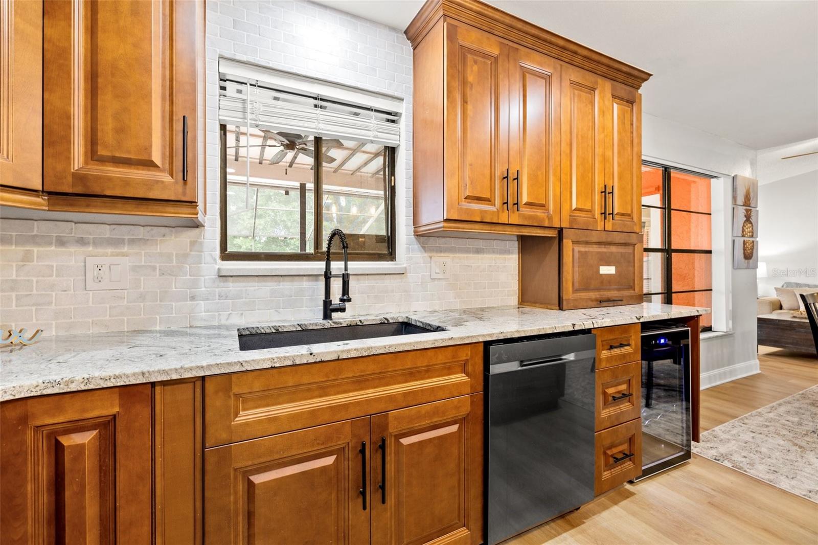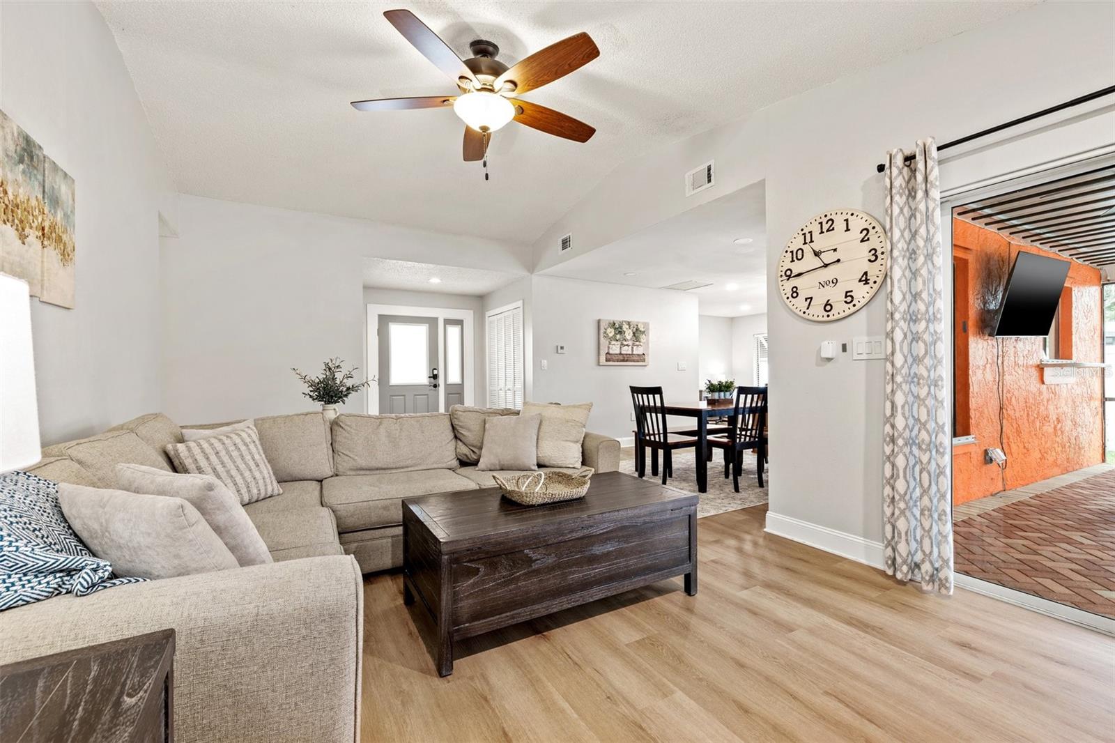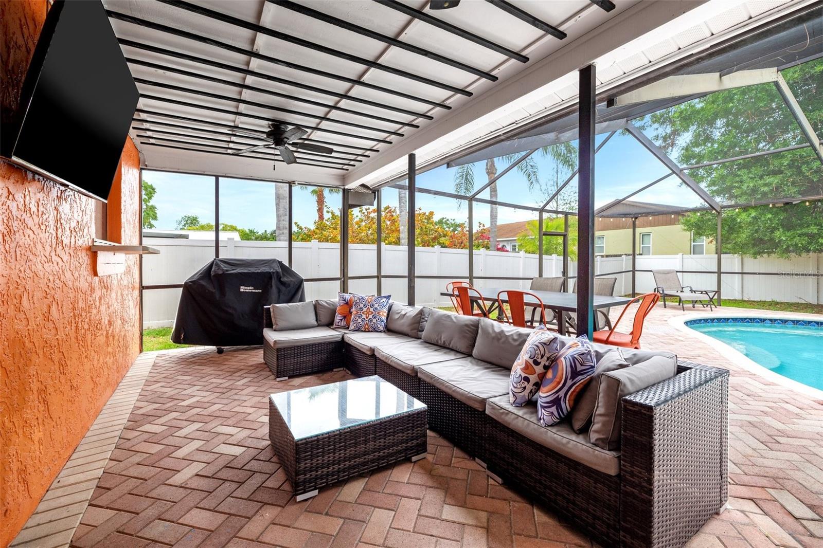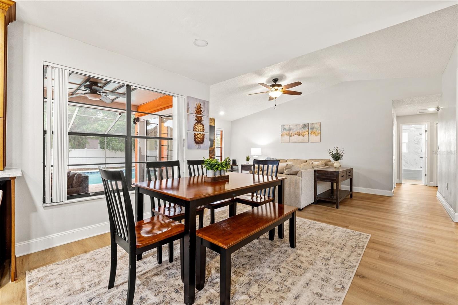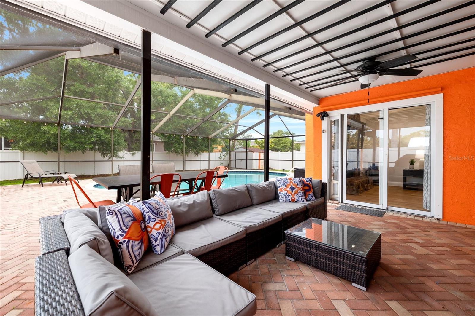 Welcome to this beautifully updated 3-bedroom, 2-bathroom pool home nestled in the peaceful, hidden gem of Blue Water Cove. This property perfectly combines comfort, convenience, and true Florida living. The spacious open-concept layout features a large living room with vaulted ceilings and a cozy wood-burning fireplace, creating a bright and airy atmosphere. The chef-inspired kitchen has custom wood cabinetry, sleek granite countertops, and top-of-the-line Samsung stainless steel appliances, including a double oven and a concealed pantry for extra storage. The generous primary bedroom includes a private en-suite bath and a walk-in closet. The two additional bedrooms are spacious and share a well-appointed hall bath. Step outside to your own private oasis—an expansive outdoor living space complete with a covered seating area, a screened lanai, and a sparkling pool. Whether you're soaking up the sun, hosting a BBQ, or winding down at the end of the day, this pool area has it all. Best of all, there’s no HOA and has no rental restrictions, offering easy access to pristine Gulf Beaches, local shops, dining, parks, and more.