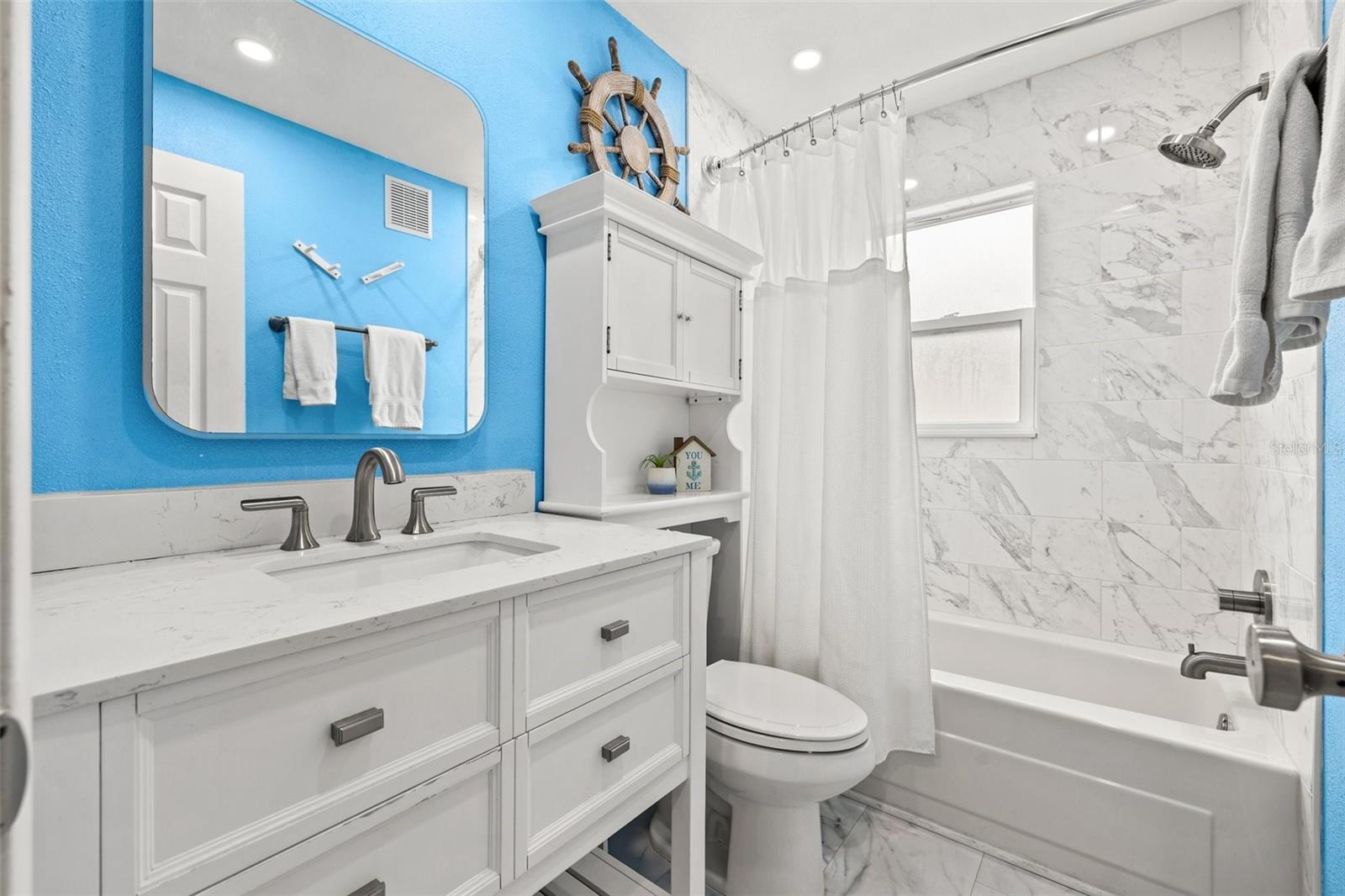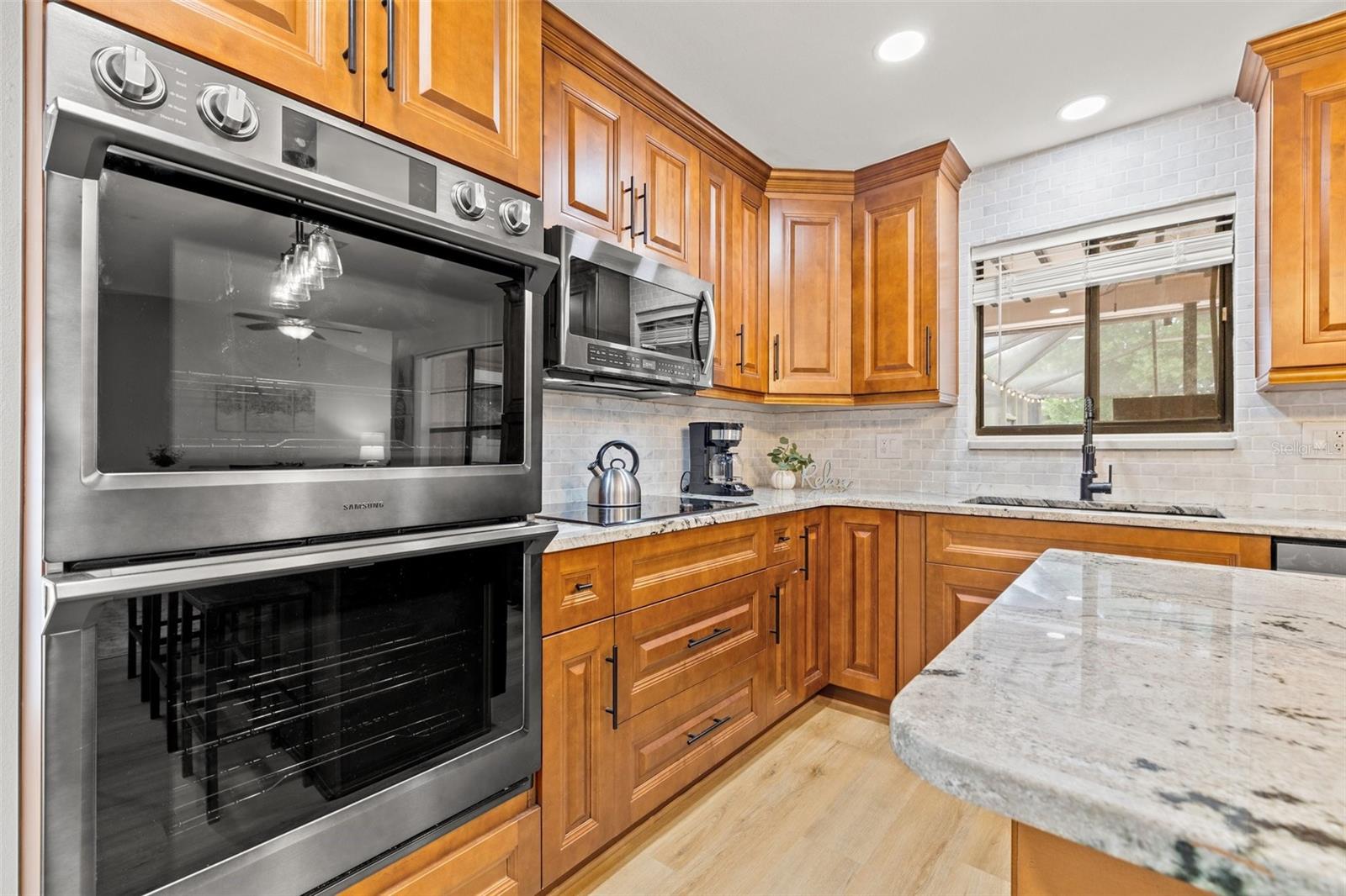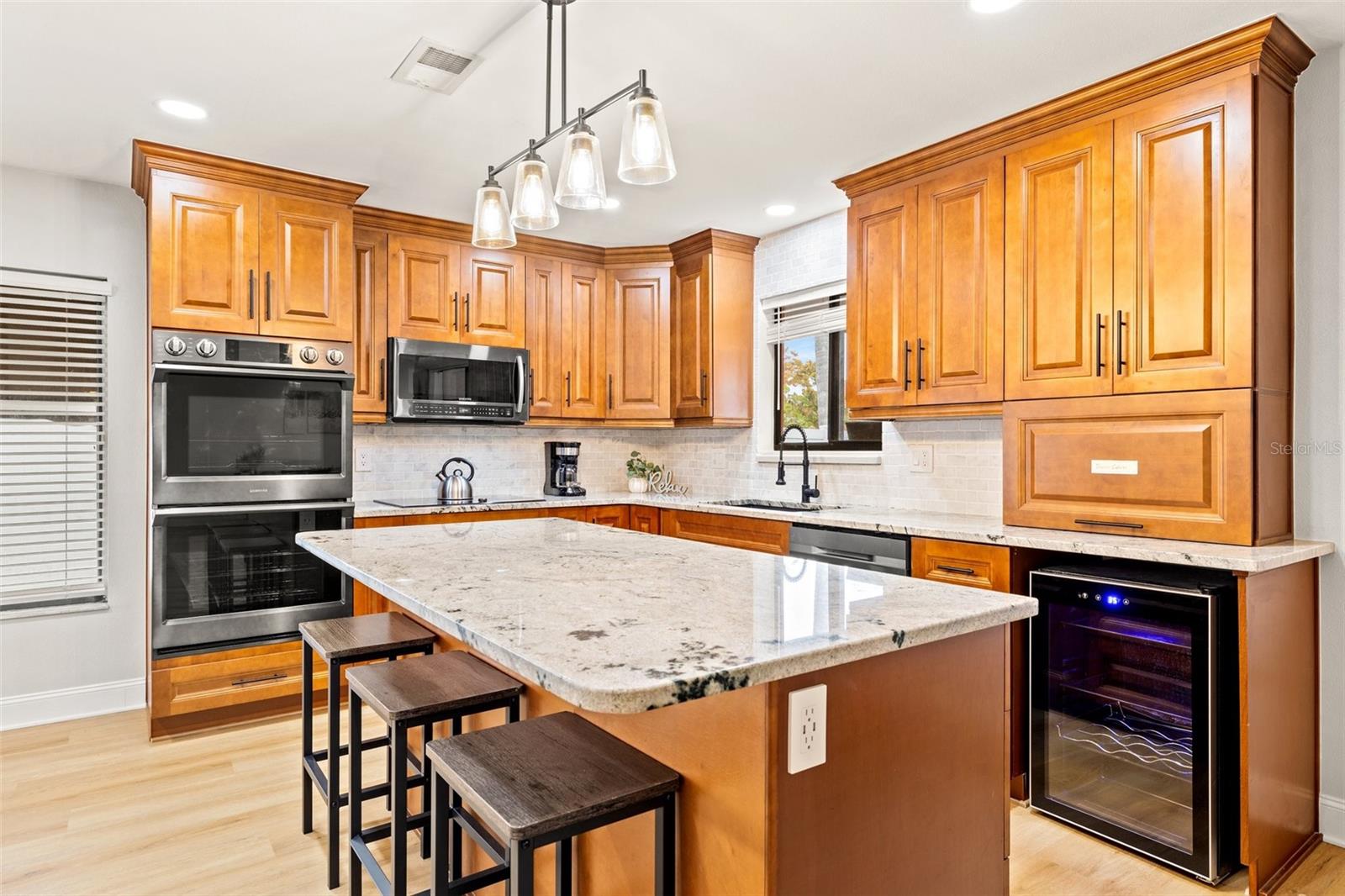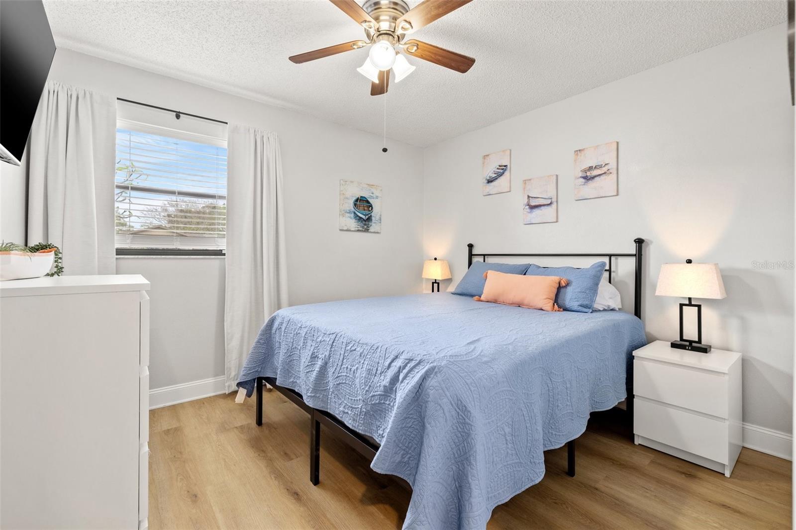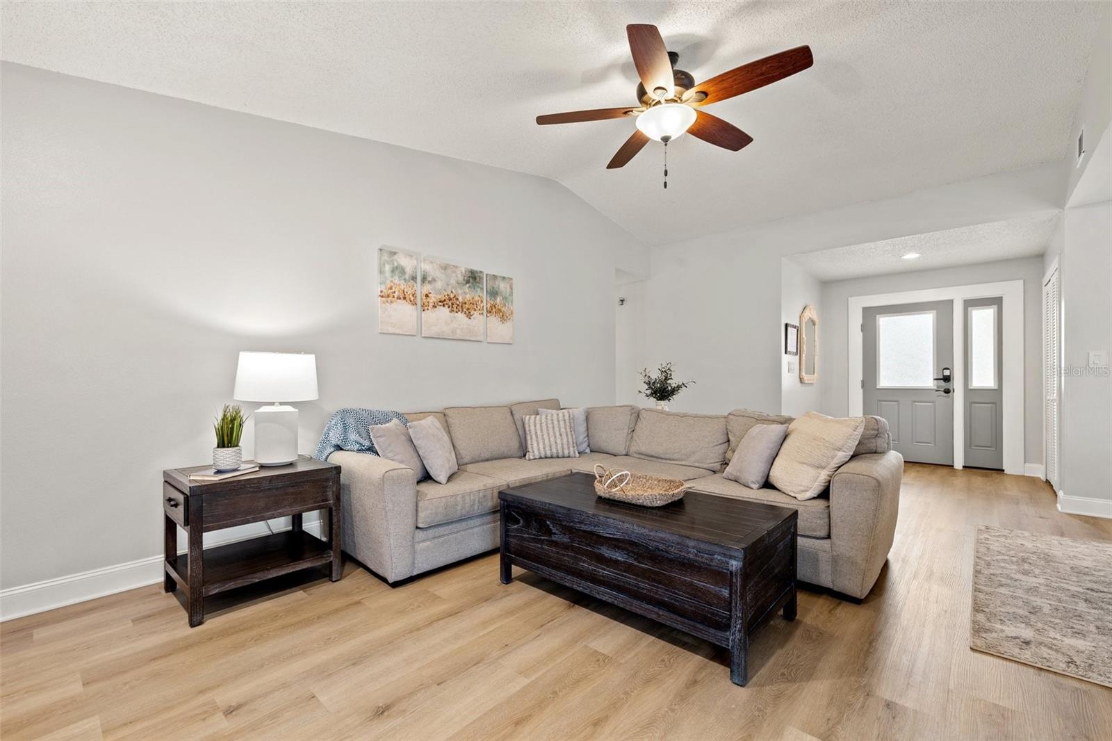 Welcome to this beautifully updated 3-bedroom, 2-bathroom pool home nestled in the peaceful, hidden gem of Blue Water Cove. This property perfectly combines comfort, convenience, and true Florida living. The spacious open-concept layout features a large living room with vaulted ceilings and a cozy wood-burning fireplace, creating a bright and airy atmosphere. The chef-inspired kitchen has custom wood cabinetry, sleek granite countertops, and top-of-the-line Samsung stainless steel appliances, including a double oven and a concealed pantry for extra storage. The generous primary bedroom includes a private en-suite bath and a walk-in closet. The two additional bedrooms are spacious and share a well-appointed hall bath. Step outside to your own private oasis—an expansive outdoor living space complete with a covered seating area, a screened lanai, and a sparkling pool. Whether you're soaking up the sun, hosting a BBQ, or winding down at the end of the day, this pool area has it all. Best of all, there’s no HOA and has no rental restrictions, offering easy access to pristine Gulf Beaches, local shops, dining, parks, and more.