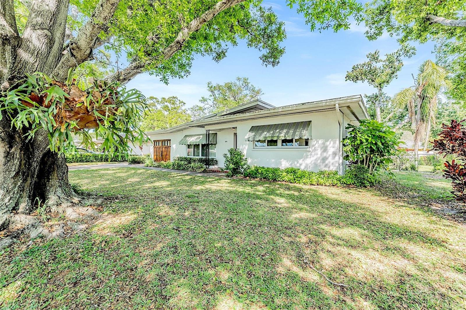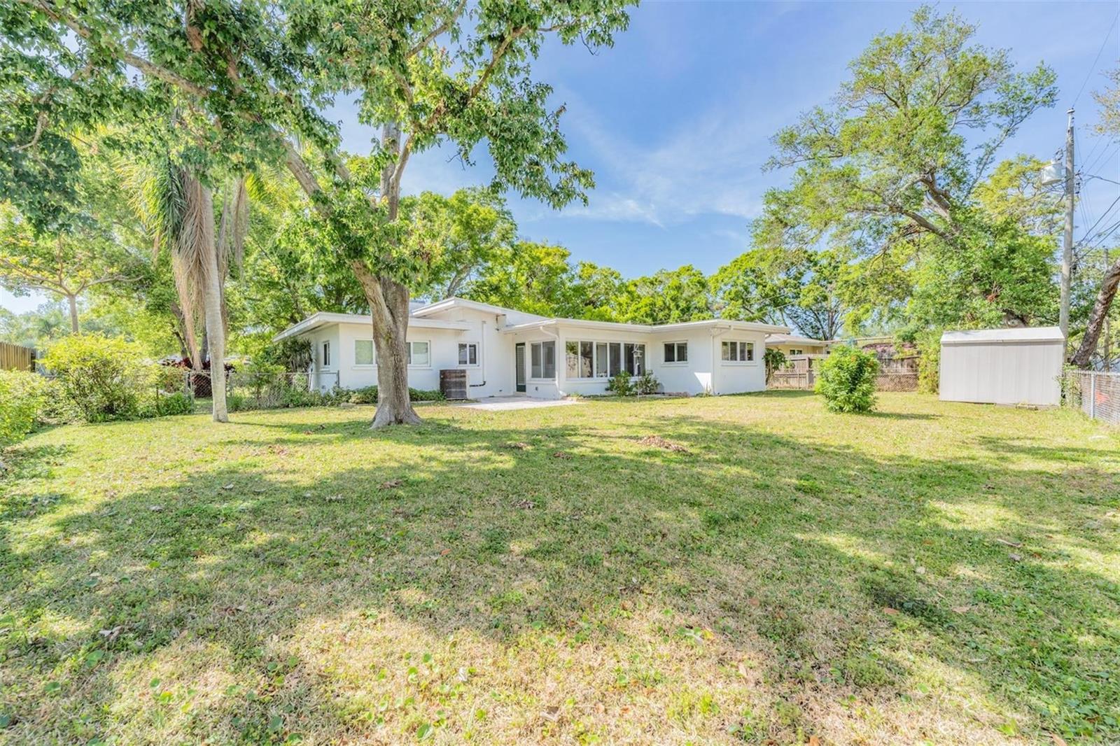 Welcome to this delightful home nestled in a serene and convenient neighborhood! Set amidst the beauty of mature trees both front and back, this 3-bedroom, 2-bathroom home offers a perfect blend of tranquility and accessibility. This has been fully appraised and stayed high and dry through the hurricanes! Priced to allow for your personal touch and care, the home is elevated to stay dry. The spacious living room features large picture windows that fill the space with natural light, complemented by a Florida room with wrap-around windows for added flexibility. The kitchen has been thoughtfully updated with granite countertops in 2021, a portable dishwasher in 2023, a Frigidaire refrigerator and cooktop in 2022, and an exterior fridge added in 2023. The primary bedroom boasts an ensuite bathroom and custom cordless blinds, with two additional roomy bedrooms. There is Terrazzo flooring in one bedroom and under the rest of the tile throughout! Outside, enjoy a large, fenced backyard with a paver patio, complete with a shed for all your tools and outdoor items. The oversized one-car garage offers the potential for a custom workspace and laundry area. Recent updates include a new roof in 2022, gutters and leaf guards in 2020, custom carriage garage doors, hurricane impact windows and garage doors, termite tenting in 2023, and modernized electrical and plumbing systems, along with a reclaimed water irrigation system. Perfect for family living, this home is just a stone's throw from the charming McMullen Park and nearby essentials like Largo Central Park, dining, and shopping. A quick 22-minute drive will take you to Clearwater Beach, with Clearwater/St. Pete Airport is just 14 minutes away, and Tampa International Airport is reachable in 40 minutes.