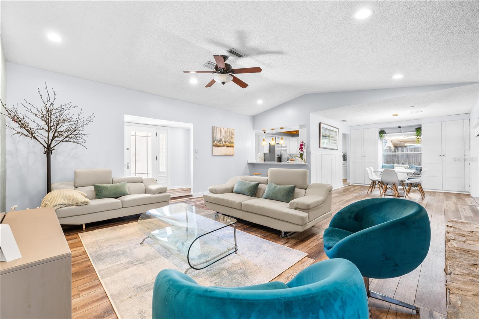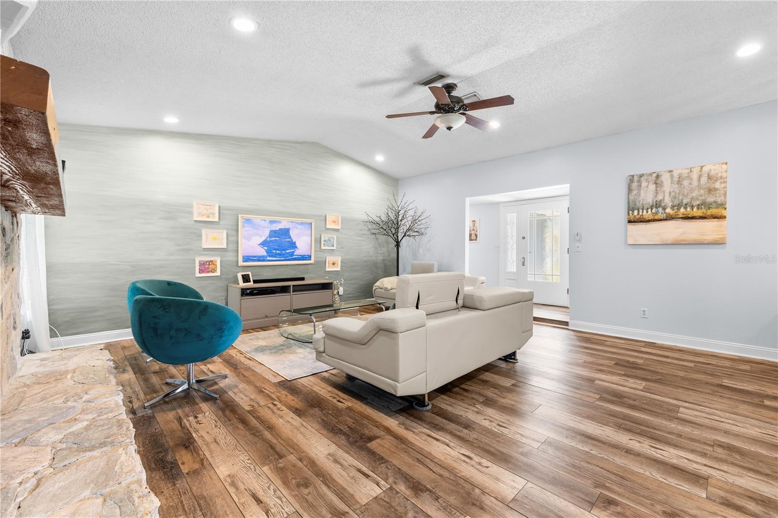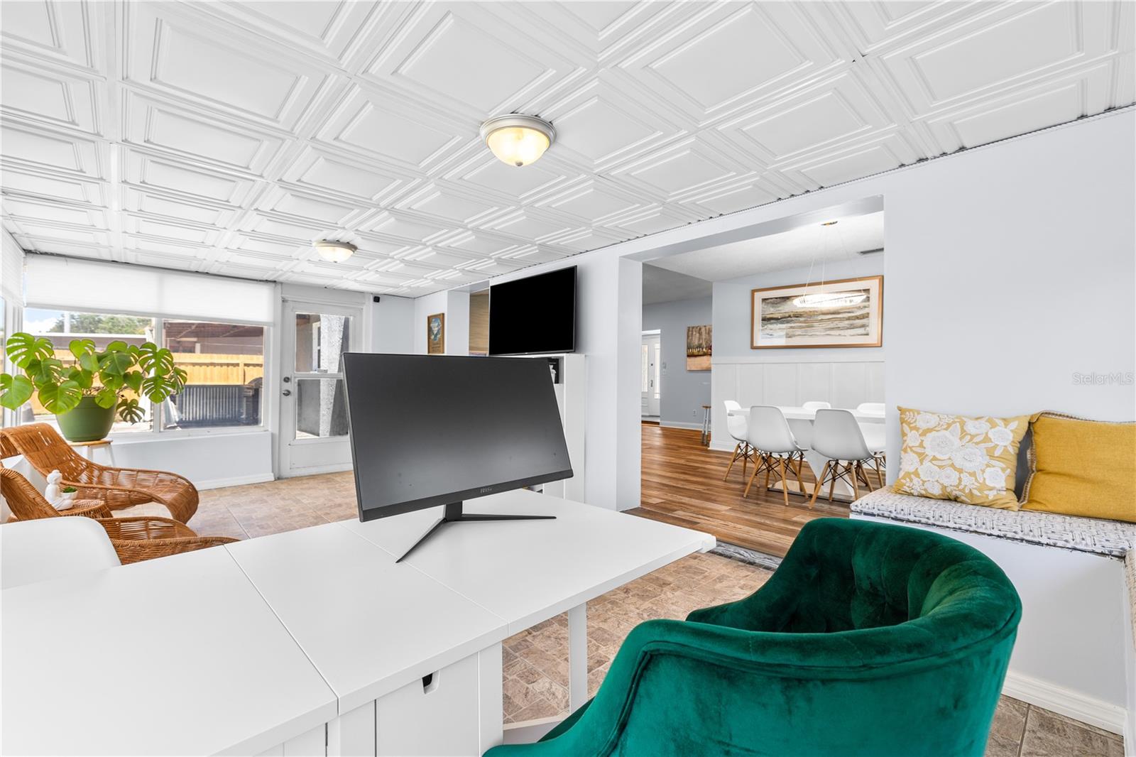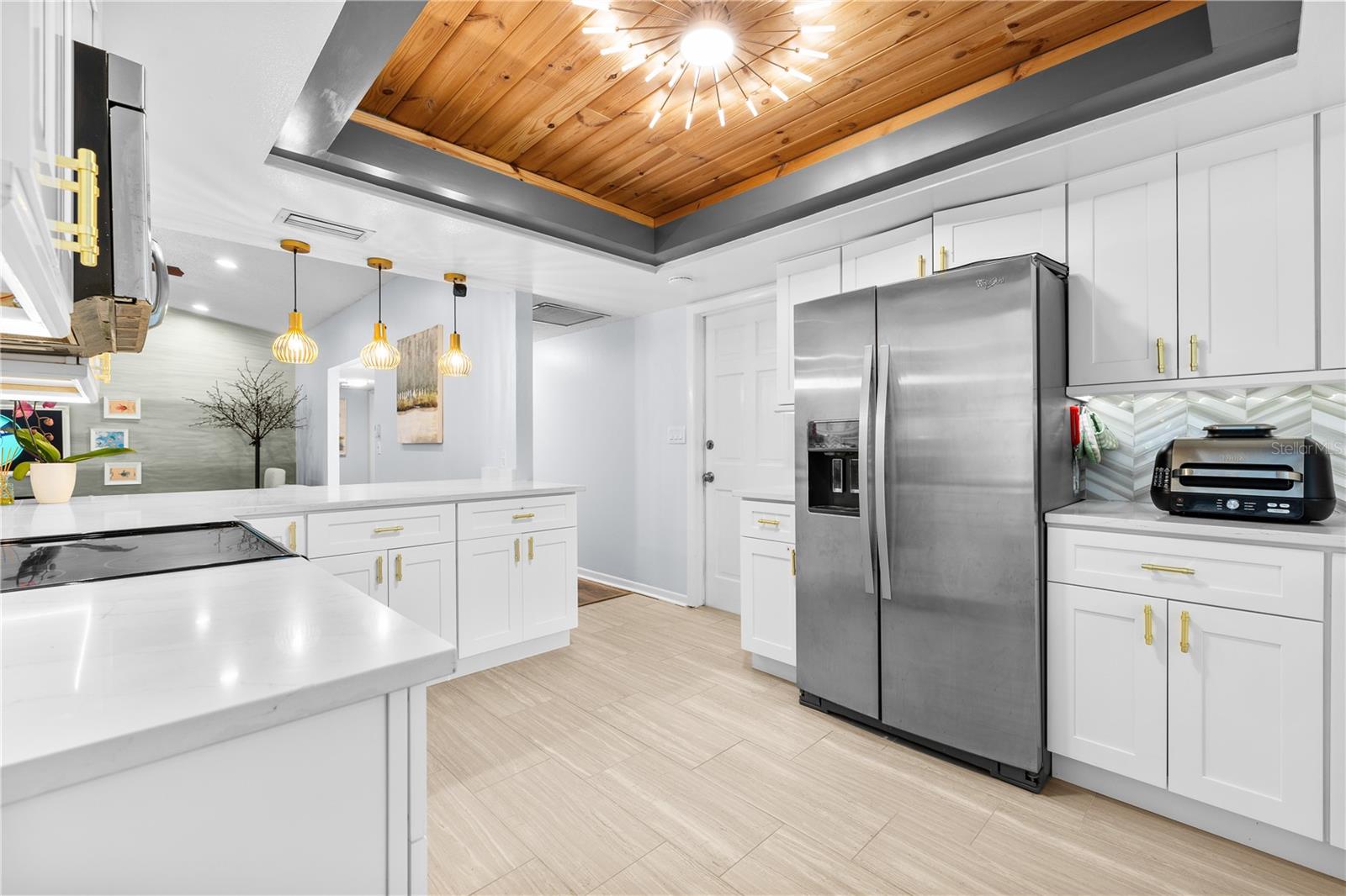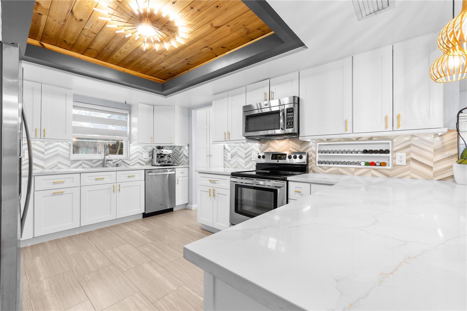 Welcome to your dream home in the heart of Largo! This stunning 2-bedroom, 2-bath gem effortlessly blends modern upgrades with tranquil Florida living — featuring an open-concept layout, designer finishes, and a versatile Florida sunroom ideal for a work-from-home setup, yoga sanctuary, or playroom. Step into the fully remodeled kitchen, showcasing sleek white shaker cabinets, luxury quartz countertops, a dramatic chevron backsplash, and Whirlpool stainless steel appliances. Gold hardware and a custom wood-inlay ceiling with statement lighting add a magazine-worthy designer touch. The expansive living and dining area is perfect for entertaining — featuring wide-plank luxury vinyl flooring, custom wall paneling, and a cozy natural stone fireplace. Just off the dining space, the bright and airy sunroom boasts panoramic windows that flood the home with natural light — ideal for your morning coffee or creative escape. Your private primary suite features dual walk-in closets, a spa-inspired walk-in shower with dual shower heads, and contemporary tile work for a luxurious retreat. The secondary bedroom is spacious and adaptable — perfect for a nursery, guest room, or home gym, complete with a generous walk-in closet. Step outside into your private backyard retreat with a covered patio, Roof 2025, 5kw solar panels worth 20k, and plenty of space to create your own outdoor oasis — whether that’s a garden, fire pit, or pool. Calling all nature lovers! This home offers easy access to the Pinellas Trail and a large walking park with a scenic pond just around the corner. You're also minutes away from Walsingham Park, Florida Botanical Gardens, Indian Rocks Beach, Heritage Village, and countless biking, walking, and kayaking spots that define the Florida lifestyle. Stylish, turnkey, and move-in ready, this home has it all — comfort, design, location, and a connection to nature. Don’t miss your chance to call this Largo beauty your next home. ?? Schedule your private showing today — homes this special go fast!
