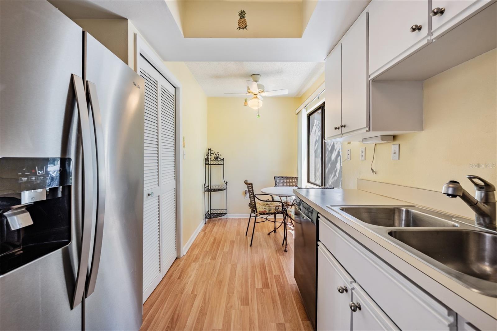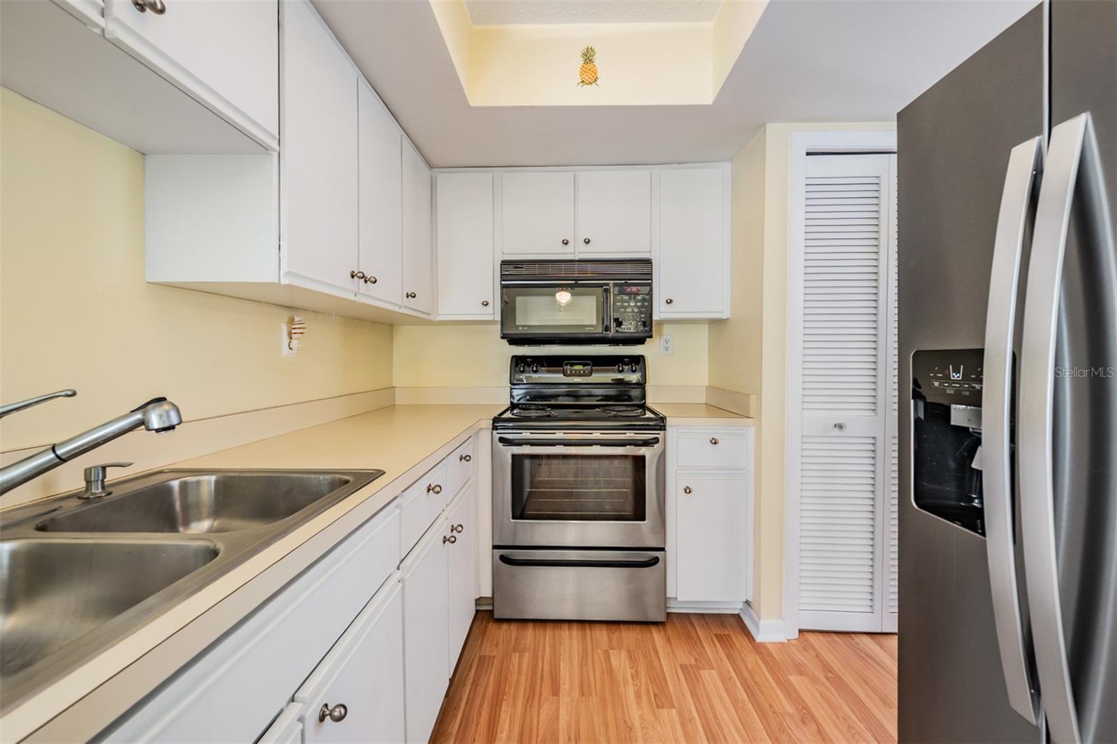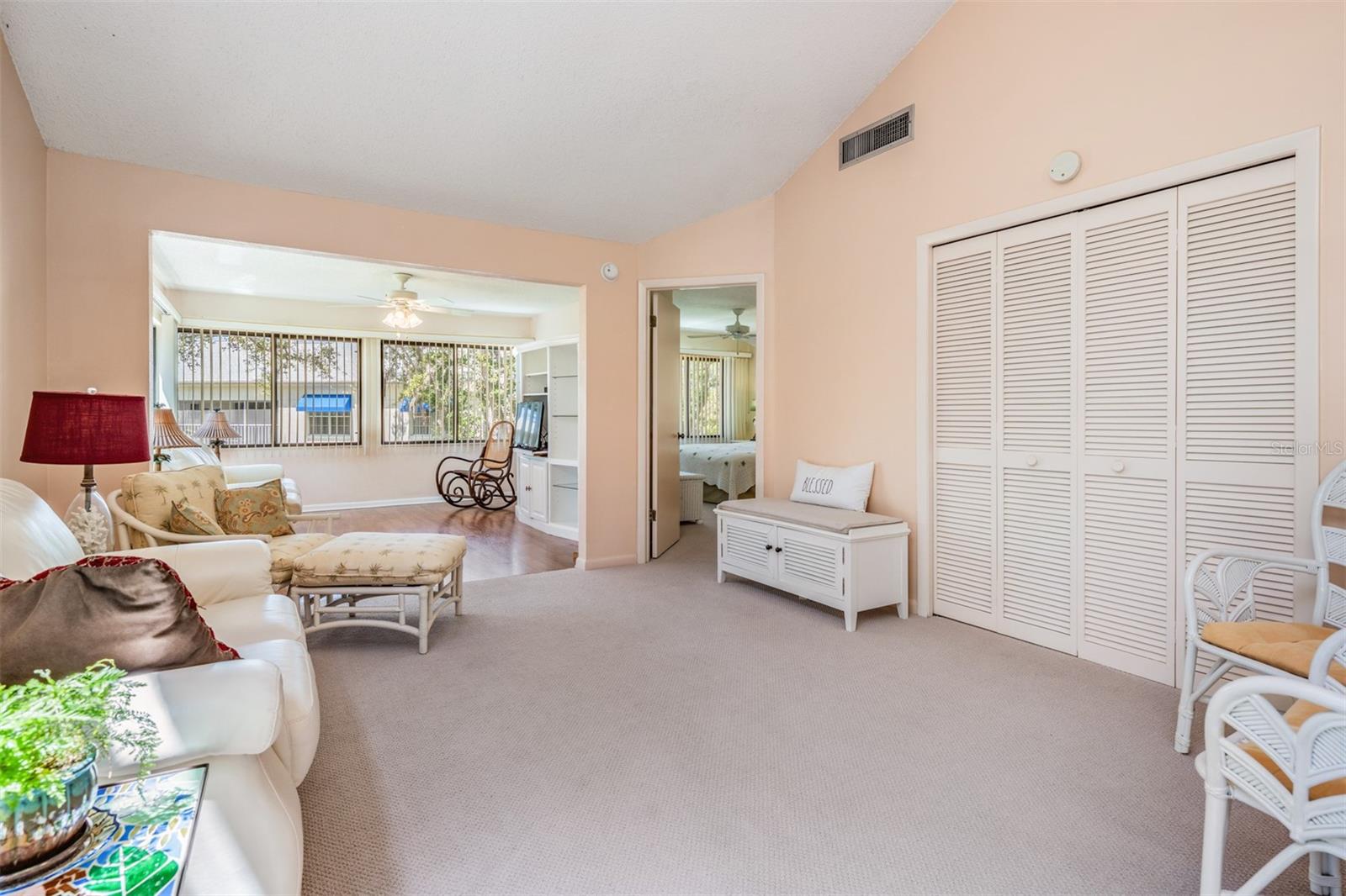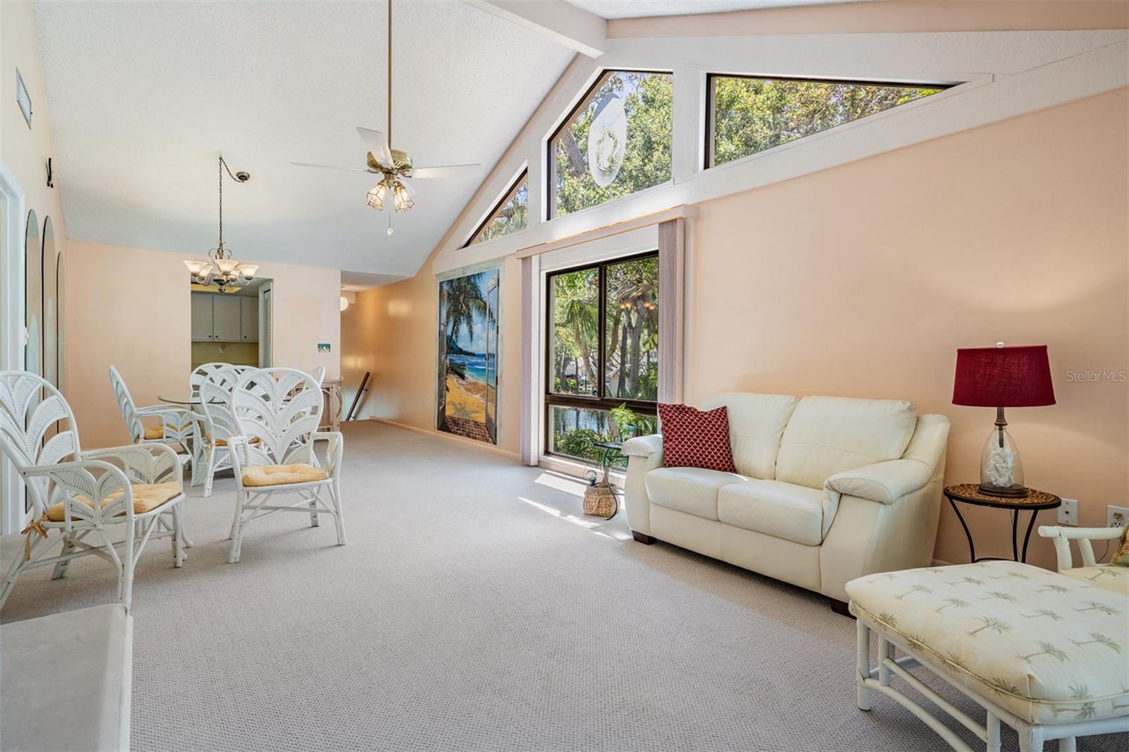 SUNNY DAYS, blue skies, al fresco dining, BEACH TIME……this condo can make your FLORIDA DREAMS a realty. Step inside and find yourself immersed in EVERYTHING you dream Florida living would be – Vaulted Ceilings, OPEN FLOOR PLAN, and Multiple Windows for Natural Light. The Great Room seamlessly joins the Dining and Living areas with the SUNROOM which is a delightful location to relax or entertain family and friends. The Kitchen opens to the Dining area and has ample cabinets and counter space, STAINLESS APPLIANCES, pantry, and an EAT-IN AREA. Your primary bedroom is quite large with room for a king bed and a sitting area. The EN SUITE BATH has dual vanities and a tub/shower combination. Your guests will be comfortable in the guest bedroom with bath nearby. Additional features include most furnishings, TWO INTERIOR STORAGE CLOSETS, easy care floors in the Sunroom and kitchen, stackable WASHER AND DRYER, outdoor storage closet and an ASSIGNED CARPORT PARKING. Shipwatch has so much to offer - 54 landscaped acres bordering the Intracoastal Waterway- 2 POOLS, hot tub, Har-tru tennis courts, PICKLEBALL COURTS, fitness room, 2 Clubhouses, Marina and a variety of regular and special activities! So close to the beach, great restaurants, and shopping. Come see for yourself - YOU WILL LOVE IT! Helene/Milton Update - NO FLOODING in this community!