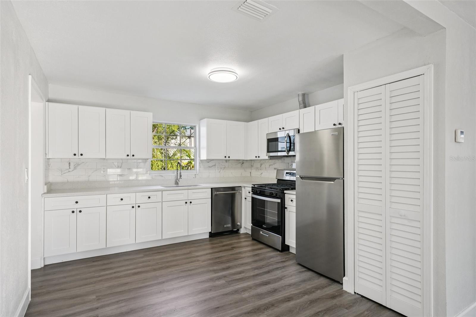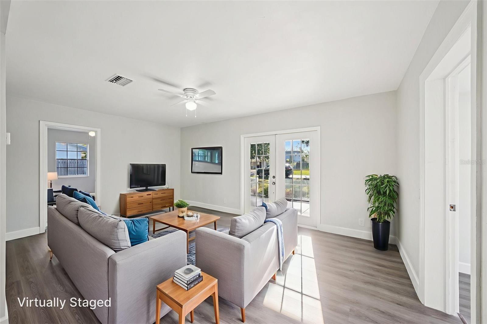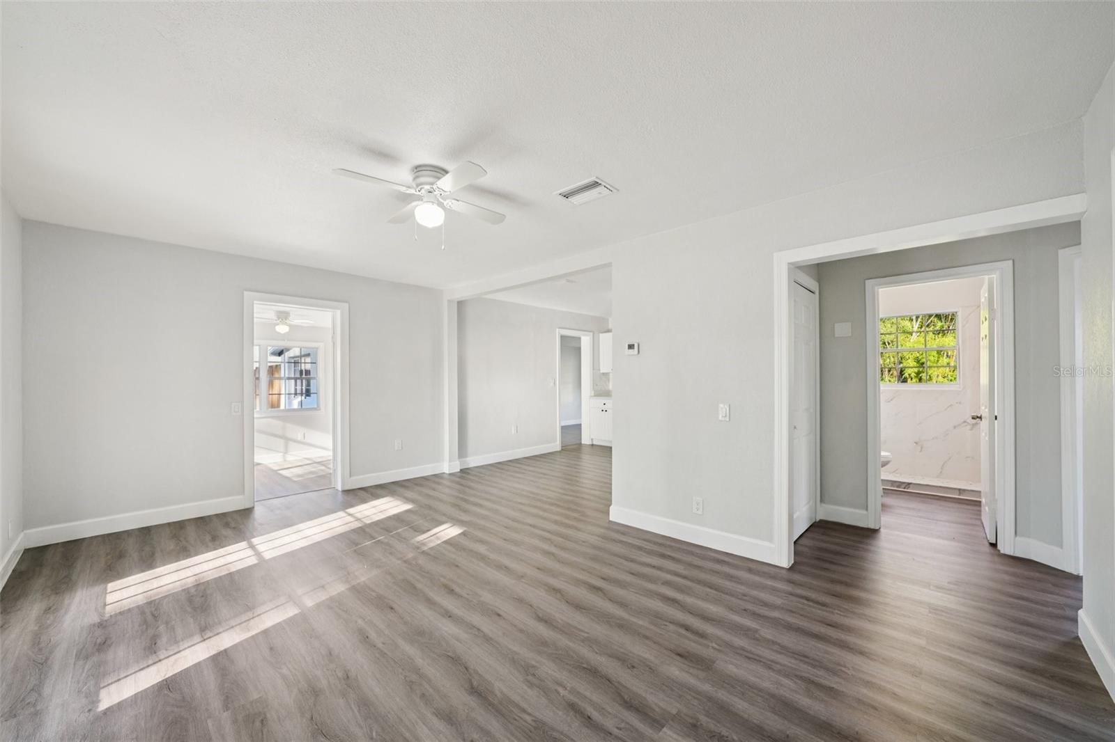 One or more photo(s) has been virtually staged. Ask about potential financing options available for qualified buyers! This beautifully renovated Largo residence offers a rare combination of modern comfort and a smart, functional layout. The split floor plan sets this home apart — with two bedrooms and a full bathroom located on one side, and a large bonus room and private primary suite on the other. The primary suite features its own private exterior entrance, offering flexible use as a guest suite, in-law space, home office, or potential rental setup. The kitchen is light, bright, and modern, featuring quartz counters, updated cabinetry, and ample prep space. You'll also love the gas-powered appliances, providing both efficiency and reliability. Fresh interior finishes, a practical layout for everyday living, and thoughtful improvements — including a new roof and HVAC — make this home a standout. Centrally located near parks, shopping, and just a short drive to the Gulf beaches, this is a space designed to adapt and grow with you.