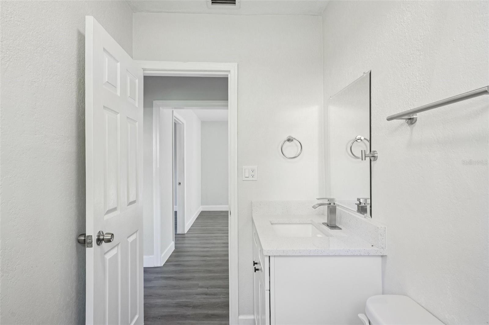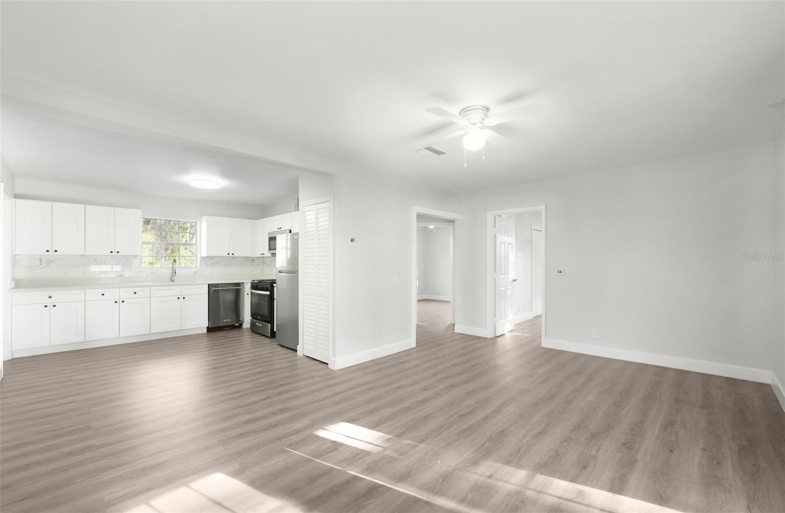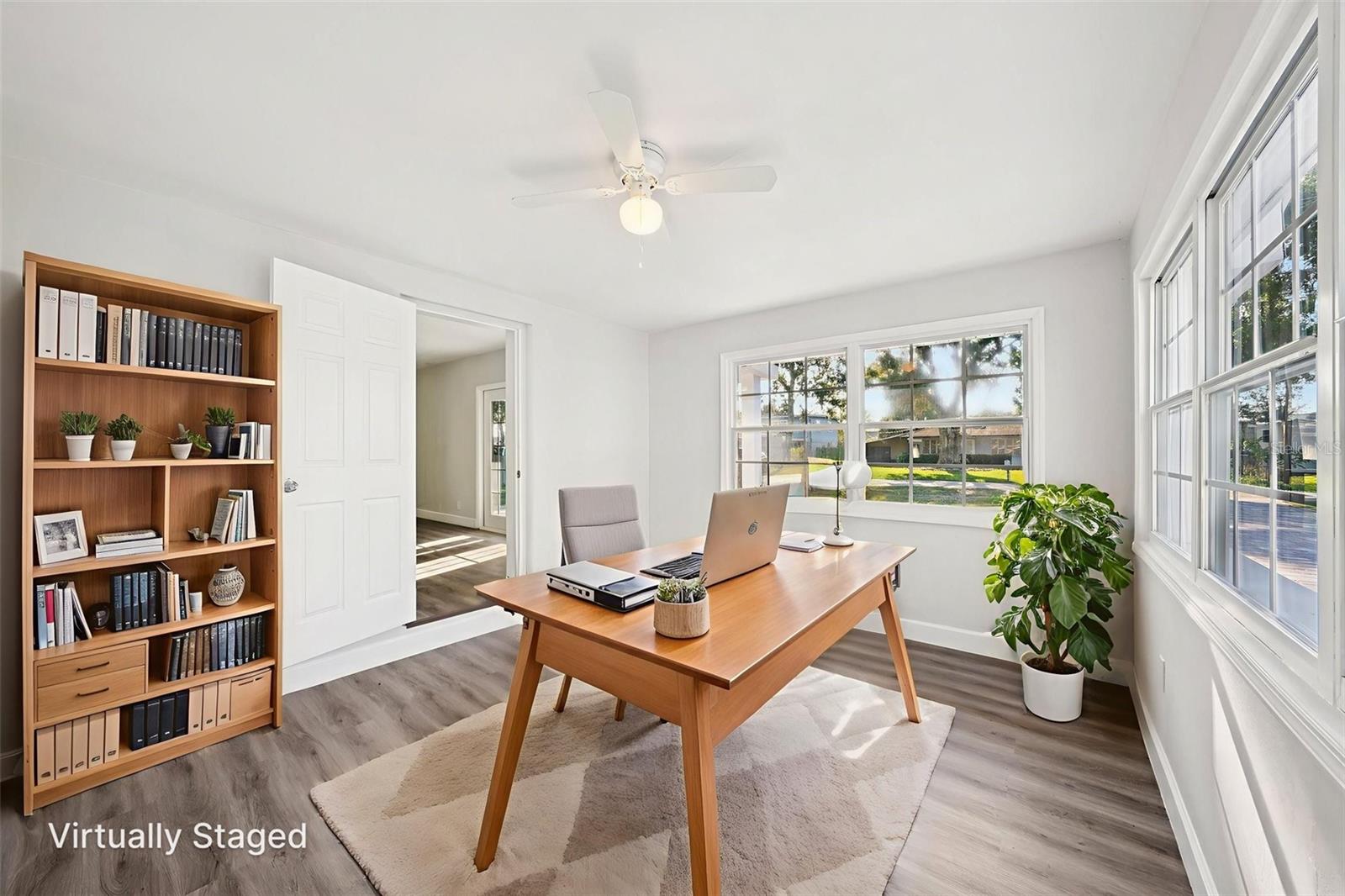 One or more photo(s) has been virtually staged. Ask about potential financing options available for qualified buyers! This beautifully renovated Largo residence offers a rare combination of modern comfort and a smart, functional layout. The split floor plan sets this home apart — with two bedrooms and a full bathroom located on one side, and a large bonus room and private primary suite on the other. The primary suite features its own private exterior entrance, offering flexible use as a guest suite, in-law space, home office, or potential rental setup. The kitchen is light, bright, and modern, featuring quartz counters, updated cabinetry, and ample prep space. You'll also love the gas-powered appliances, providing both efficiency and reliability. Fresh interior finishes, a practical layout for everyday living, and thoughtful improvements — including a new roof and HVAC — make this home a standout. Centrally located near parks, shopping, and just a short drive to the Gulf beaches, this is a space designed to adapt and grow with you.