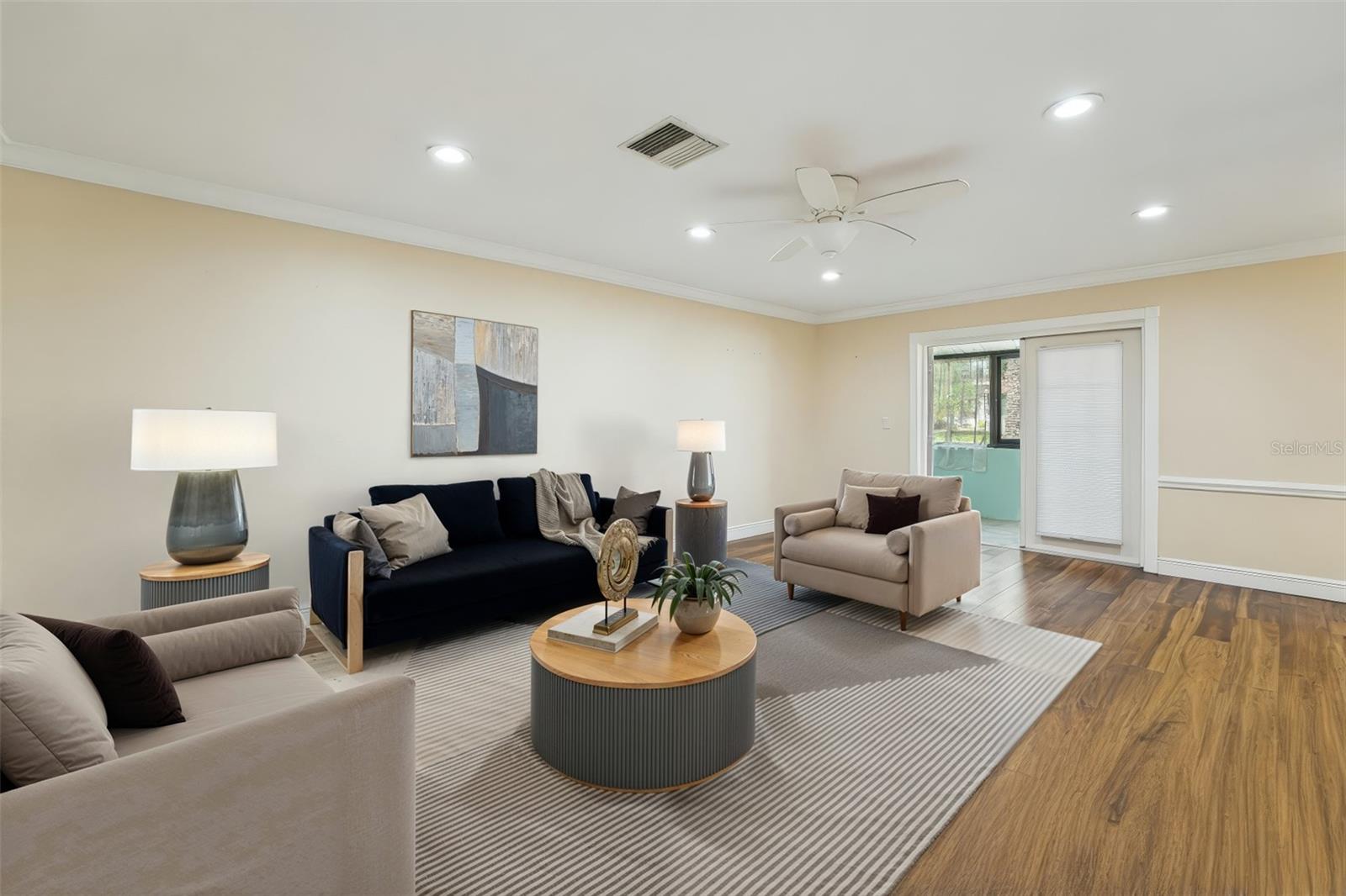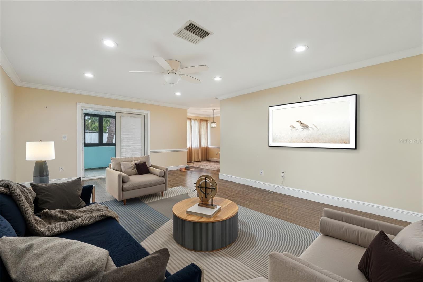 One or more photo(s) has been virtually staged. I'm excited to share this Move in Ready charming 2-bedroom, 2-bath villa-style condo located in an excellent quite 55+ community. This building had Zero impact from flooding or water damage from Helene and Milton storms. NO ADDITIONAL FLOOD INSURENCE REQUIRED. Flood insurance is covered by the Condo association with not have an increase in fees for 2025. The Association Fees also include cable, lawn care, water, garbage, cable, and internet. Each unit is allowed two vehicles, and this particular condo comes with a reserved carport space along with additional open parking. No CDD This home offers a serene atmosphere with the added benefit of being just minutes away from major shopping centers, restaurants, and Largo Park. The condo has been thoughtfully updated with several features to enhance comfort and style. You'll find new luxury vinyl flooring throughout, along with freshly stripped, regrouted, and sealed tile that comes with a transferable warranty. A new AC unit and upgraded electrical work, including outlets extended to the lanai, have also been installed. The kitchen has been refreshed with a new refrigerator, sink, and countertops. In the primary bathroom, you'll appreciate the new vanity, mirror/medicine cabinet, lighting fixture, wall cabinet, and a max-flow showerhead. The secondary bathroom also includes updated fixtures, a new mirror/medicine cabinet, and a wall cabinet. For added peace of mind and convenience, the air ducts have been cleaned and ultraviolet lighting has been installed for enhanced sanitization. The property also features impact windows and doors and in-unit laundry. Residents can enjoy a heated pool and spa, a clubhouse, pickleball and tennis courts, and an active community association that organizes year-round events, including holiday celebrations and poolside entertainment. For those with recreational vehicles, there's a designated area for RV, boat, or trailer storage (free, with limited spaces). This beautifully updated condo truly offers a blend of comfort, convenience, and a vibrant community lifestyle.