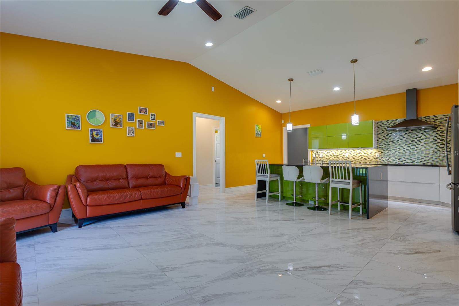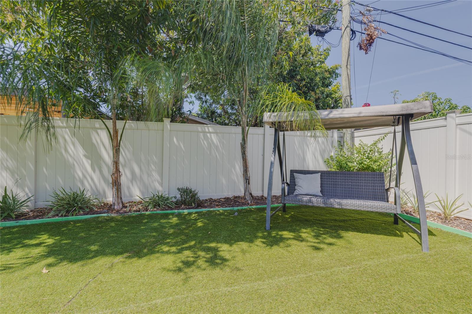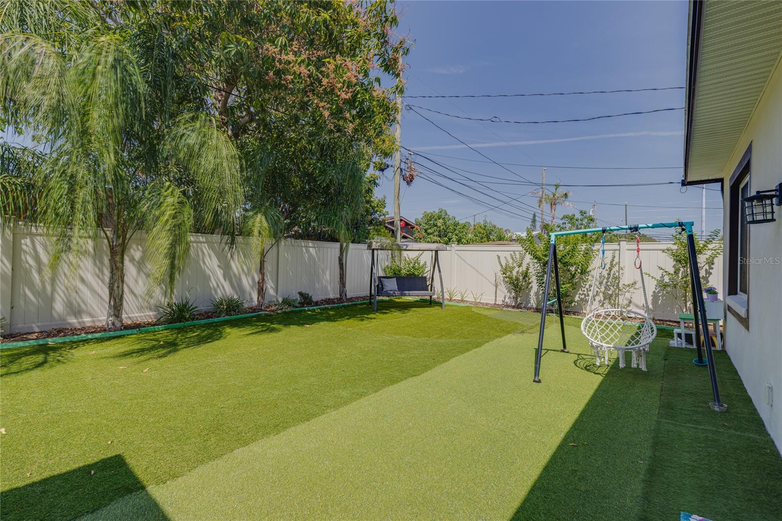 Welcome to your dream home in the heart of Largo! This beautifully maintained, newer construction residence offers the perfect blend of modern design, thoughtful layout, and a prime location just minutes from the beach. Built in 2017, this three-bedroom, two-bathroom home features soaring vaulted ceilings and an airy, open feel from the moment you walk through the door. A welcoming reception room at the entrance provides a private space to greet guests without stepping directly into the heart of the home — a rare and convenient feature that offers both privacy and comfort. The spacious kitchen is a true showstopper, boasting sleek European-style glossy cabinetry, quartz countertops, and built-in stainless steel appliances. A large center island serves as the perfect gathering spot for entertaining, cooking, or simply enjoying meals with family and friends. Elegant new tile flooring flows seamlessly through the main living areas, while the bedrooms are finished with warm wood flooring, adding a touch of natural beauty. Designed with a desirable split floor plan, the luxurious primary suite offers a peaceful retreat with a spa-like bathroom featuring a freestanding soaking tub, a glass-enclosed shower, dual vanities with quartz countertops, a private water closet for added privacy, and an oversized walk-in closet to accommodate all your wardrobe needs. Two additional bedrooms are located on the opposite side of the home and share a beautifully appointed full bathroom, offering comfort and space for family members or guests. French doors lead to a charming, low-maintenance backyard complete with lush turf and a stylish gazebo — a perfect setting for relaxing evenings under the stars. The owners have thoughtfully installed a professional drainage system, ensuring the backyard remains dry and enjoyable even after heavy rains. Hurricane-impact windows provide peace of mind and energy efficiency year-round. The fully fenced backyard offers privacy and space to play, garden, or simply unwind. Additional features include a private sauna for two located in the spacious two-car garage, and an extended driveway offering ample room for extra parking. This home is free from HOA and CDD fees and is located outside of any flood zone, providing true worry-free living. Conveniently situated just twelve minutes from the award-winning Gulf beaches, this home is within walking distance to the Highland Recreation Center, which offers amenities such as a gym, aquatic center, tennis courts, and more. Largo Central Park and the Largo Public Library are just a two-minute drive away, and Sprouts Farmers Market is around the corner. You’ll also enjoy quick access to downtown Largo, top-rated schools, city amenities, Tampa International Airport, and St. Pete-Clearwater Airport. This is more than a home — it’s a lifestyle. Modern, elegant, and perfectly located, this home offers everything you need to live your best Florida life. Don’t miss the opportunity to make it Yours!