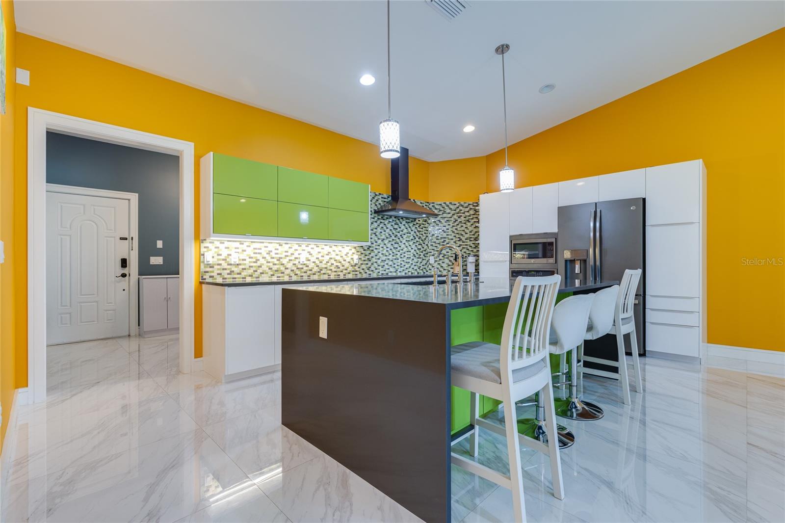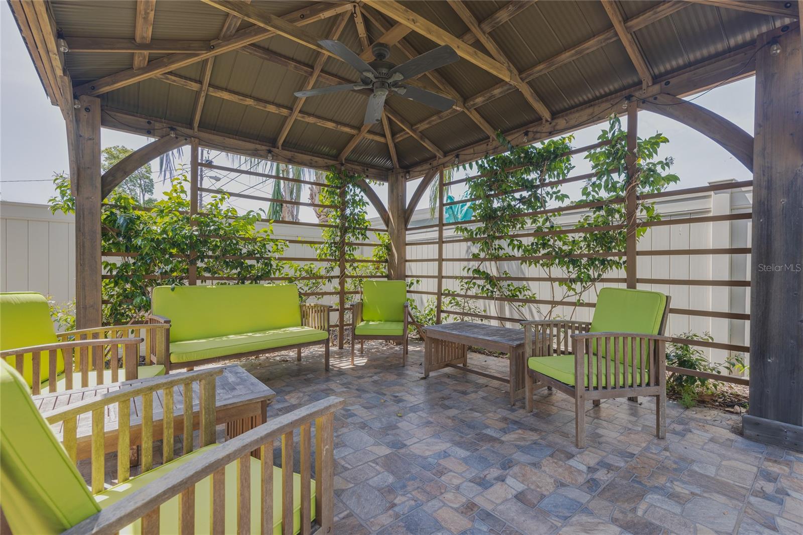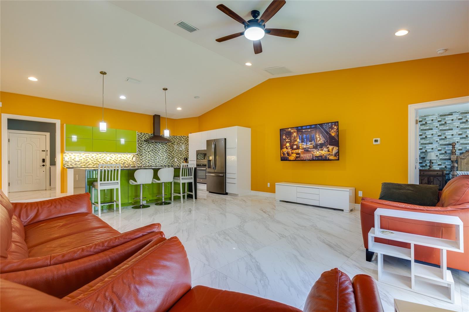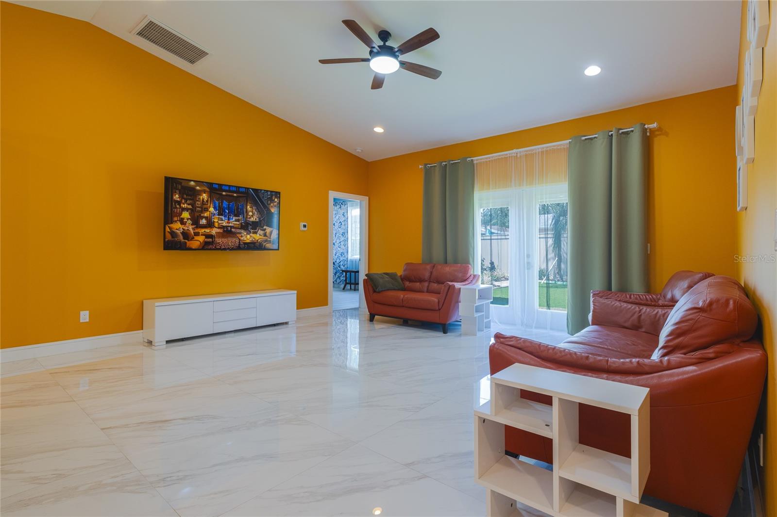 Welcome to your dream home in the heart of Largo! This beautifully maintained, newer construction residence offers the perfect blend of modern design, thoughtful layout, and a prime location just minutes from the beach. Built in 2017, this three-bedroom, two-bathroom home features soaring vaulted ceilings and an airy, open feel from the moment you walk through the door. A welcoming reception room at the entrance provides a private space to greet guests without stepping directly into the heart of the home — a rare and convenient feature that offers both privacy and comfort. The spacious kitchen is a true showstopper, boasting sleek European-style glossy cabinetry, quartz countertops, and built-in stainless steel appliances. A large center island serves as the perfect gathering spot for entertaining, cooking, or simply enjoying meals with family and friends. Elegant new tile flooring flows seamlessly through the main living areas, while the bedrooms are finished with warm wood flooring, adding a touch of natural beauty. Designed with a desirable split floor plan, the luxurious primary suite offers a peaceful retreat with a spa-like bathroom featuring a freestanding soaking tub, a glass-enclosed shower, dual vanities with quartz countertops, a private water closet for added privacy, and an oversized walk-in closet to accommodate all your wardrobe needs. Two additional bedrooms are located on the opposite side of the home and share a beautifully appointed full bathroom, offering comfort and space for family members or guests. French doors lead to a charming, low-maintenance backyard complete with lush turf and a stylish gazebo — a perfect setting for relaxing evenings under the stars. The owners have thoughtfully installed a professional drainage system, ensuring the backyard remains dry and enjoyable even after heavy rains. Hurricane-impact windows provide peace of mind and energy efficiency year-round. The fully fenced backyard offers privacy and space to play, garden, or simply unwind. Additional features include a private sauna for two located in the spacious two-car garage, and an extended driveway offering ample room for extra parking. This home is free from HOA and CDD fees and is located outside of any flood zone, providing true worry-free living. Conveniently situated just twelve minutes from the award-winning Gulf beaches, this home is within walking distance to the Highland Recreation Center, which offers amenities such as a gym, aquatic center, tennis courts, and more. Largo Central Park and the Largo Public Library are just a two-minute drive away, and Sprouts Farmers Market is around the corner. You’ll also enjoy quick access to downtown Largo, top-rated schools, city amenities, Tampa International Airport, and St. Pete-Clearwater Airport. This is more than a home — it’s a lifestyle. Modern, elegant, and perfectly located, this home offers everything you need to live your best Florida life. Don’t miss the opportunity to make it Yours!