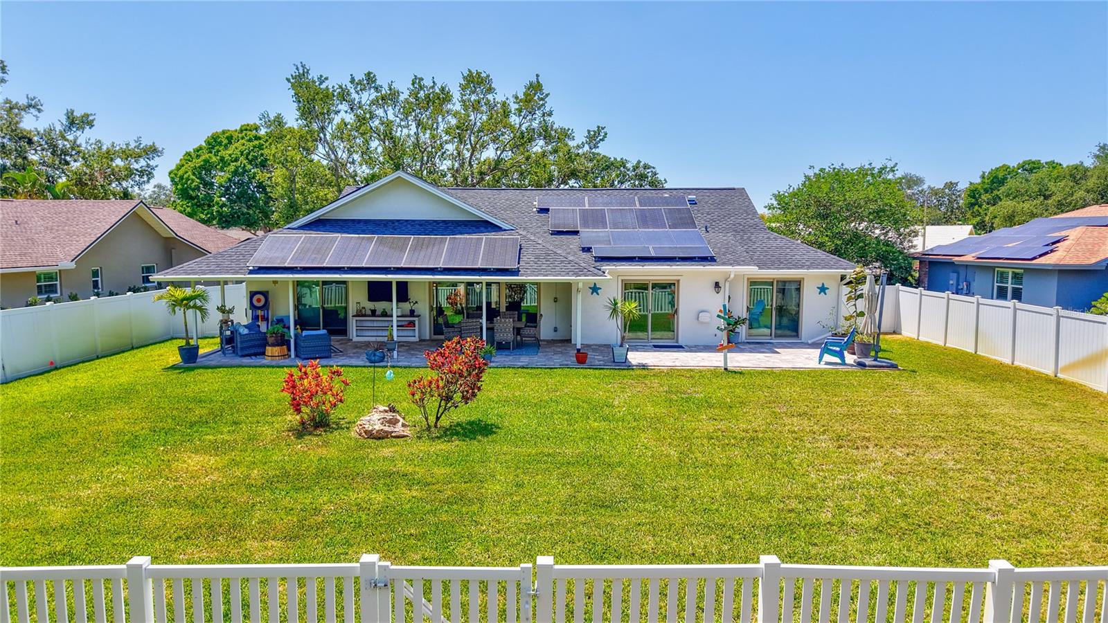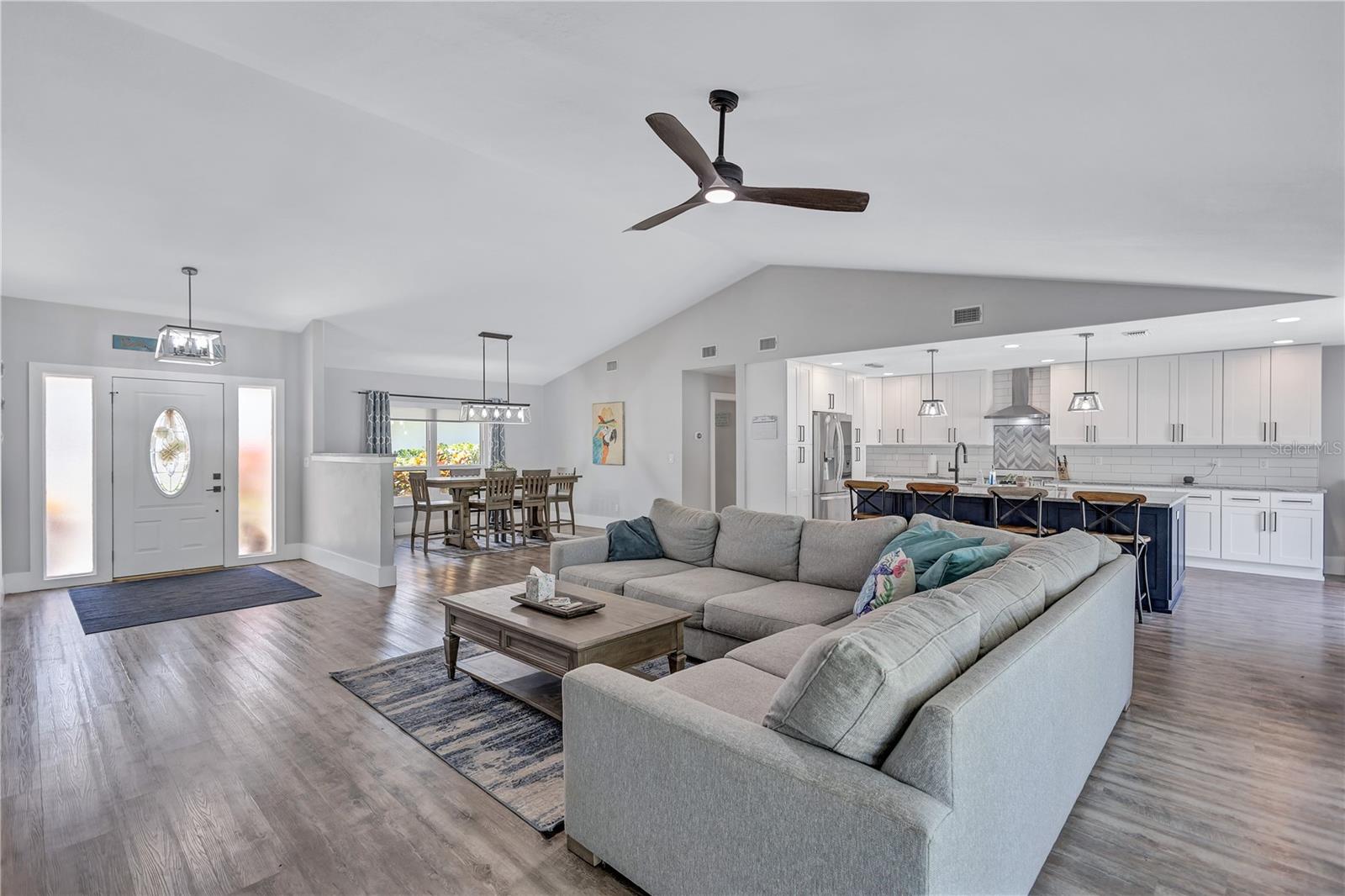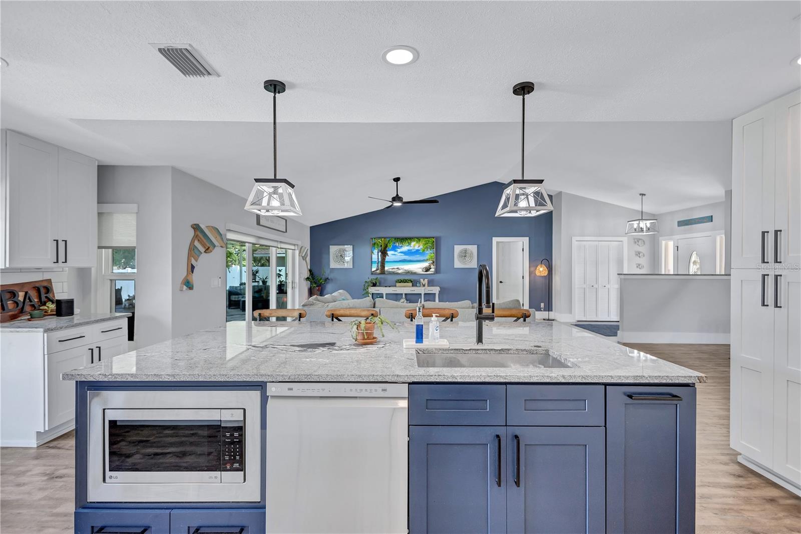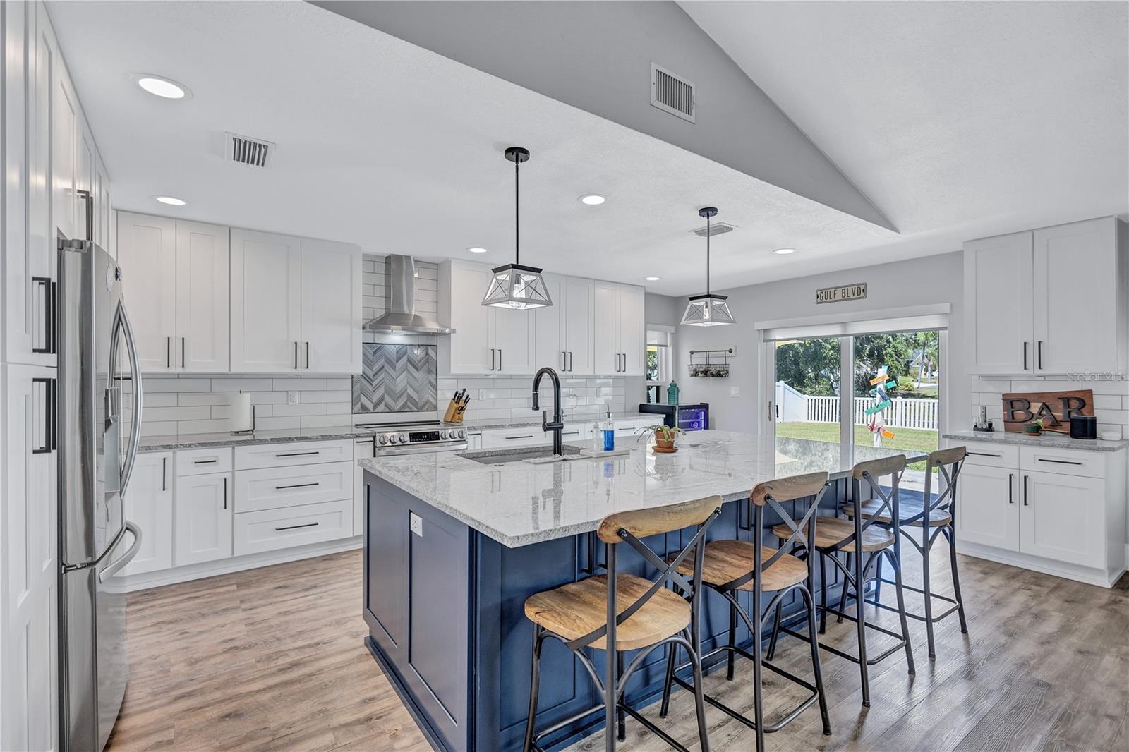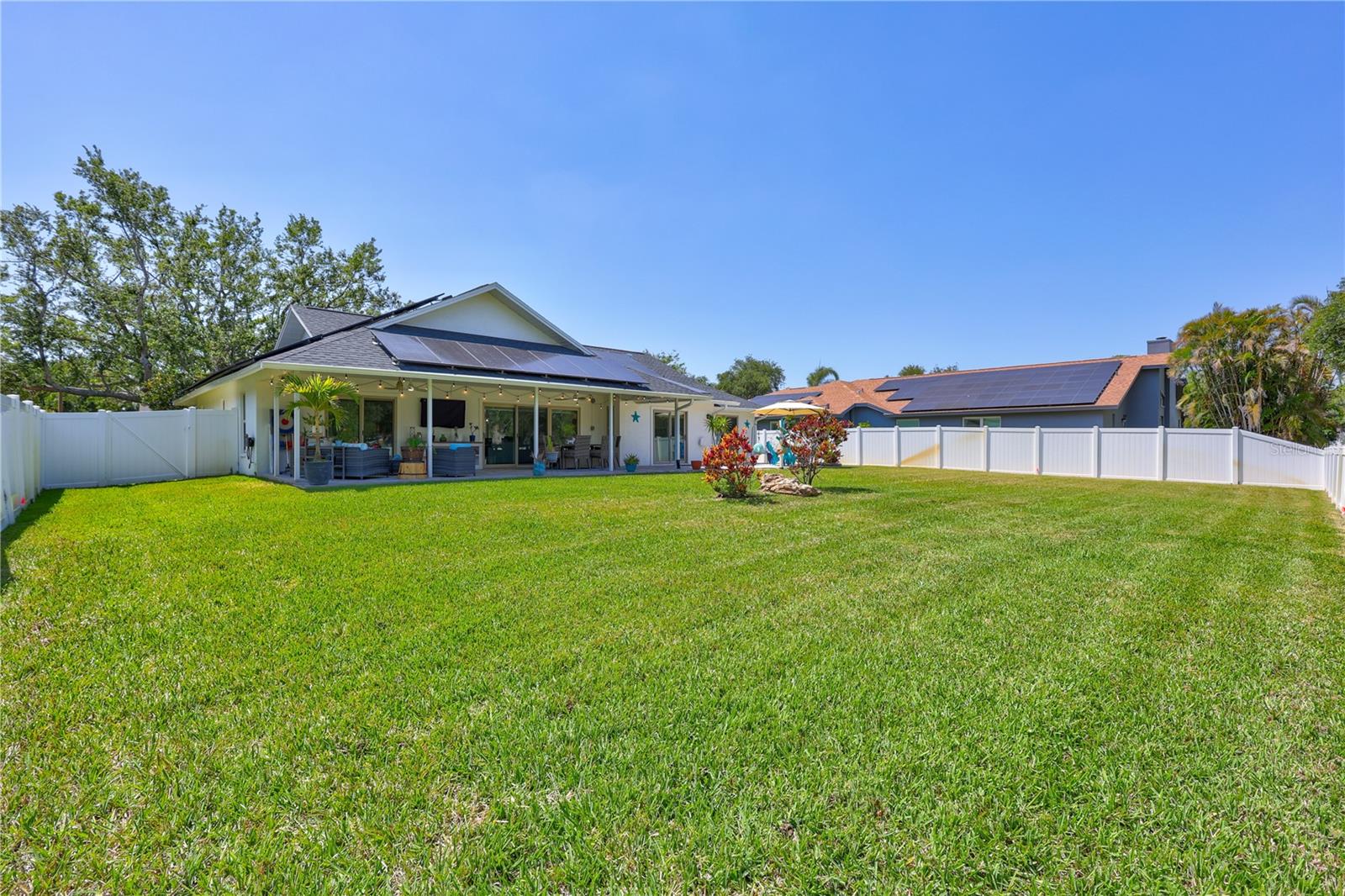 Coastal living meets modern comfort in the highly sought after neighborhood of Collins Estates. Homes in this neighborhood don't come up for sale too often and this is one you don't want to miss! Less than one mile from the sugar-sand beaches of Indian Rocks and NO FLOOD INSURANCE REQUIRED, this beautifully updated 3-bedroom, 2-bath home combines laid-back coastal vibes with thoughtful, modern upgrades. The completely renovated kitchen is a true standout—featuring an 8-foot island, miles of counter space, and the cabinet storage is extensive. Whether you're hosting friends or whipping up a quiet dinner, this space delivers. The open, split floor plan is ideal for entertaining, flowing seamlessly to the spacious back paver patio that overlooks a tranquil pond with a gorgeous fountain. Step outside and discover a massive backyard (87X131) with plenty of room to add a pool if you choose—create your dream outdoor oasis! Practical updates include a roof, A/C, solar, and appliances are less than 4 years old, plus the windows and doors were replaced in 2007 adding additional insulation and peace of mind. Whether you're searching for a forever home or the perfect beach retreat, this one truly has it all!