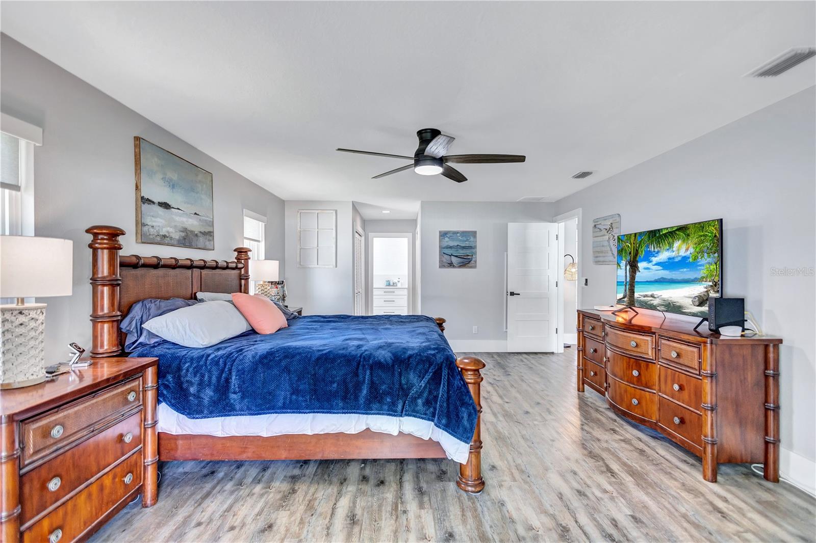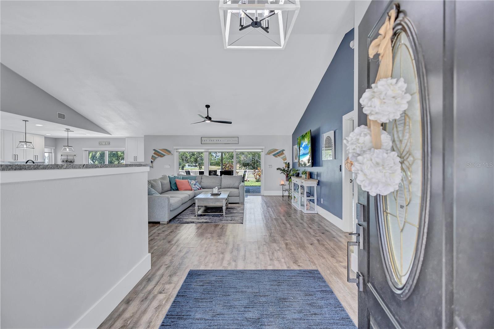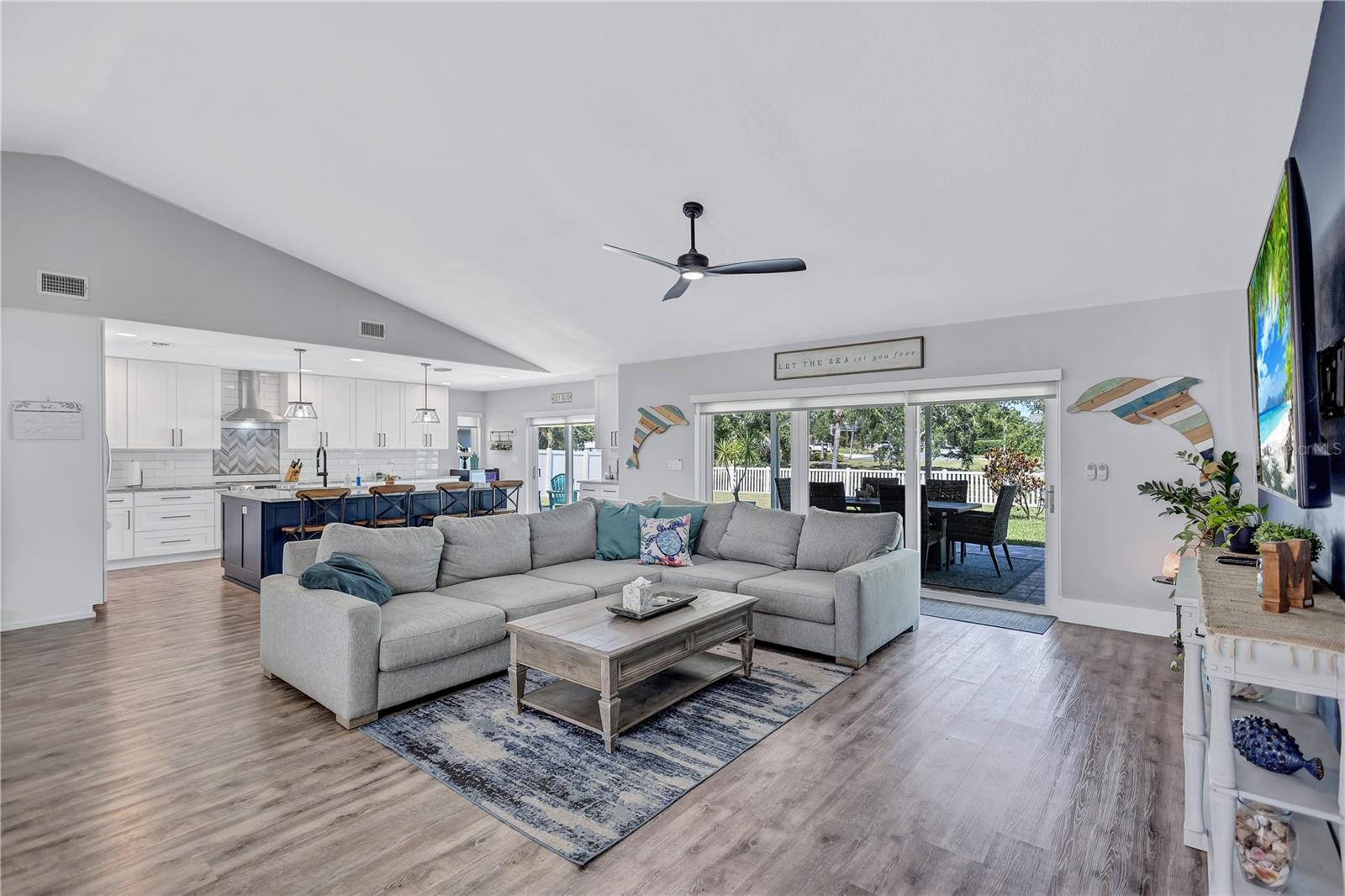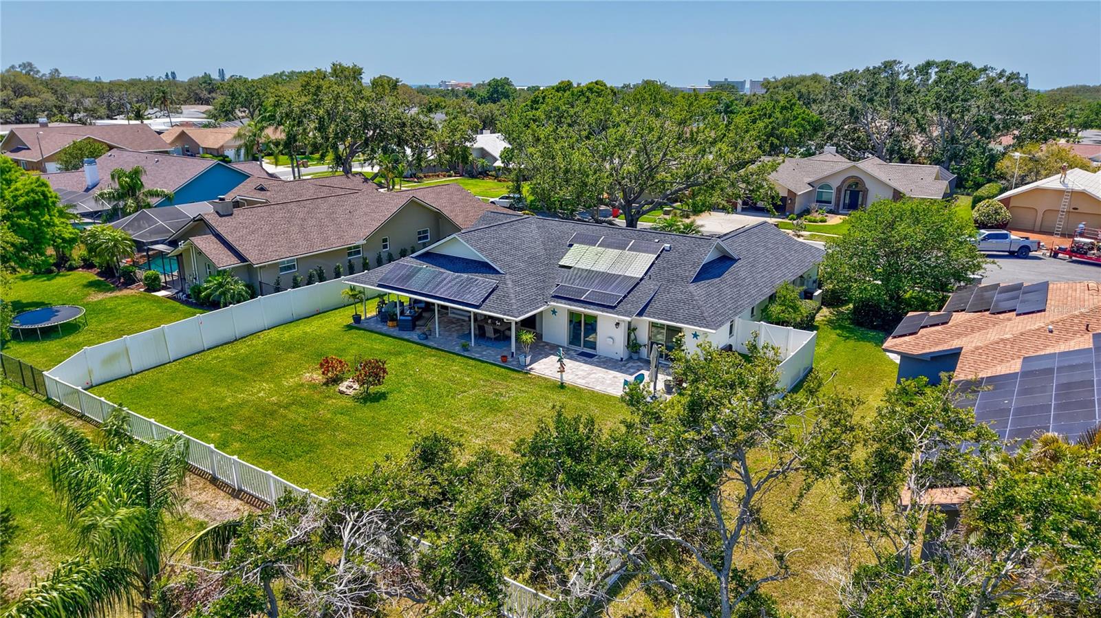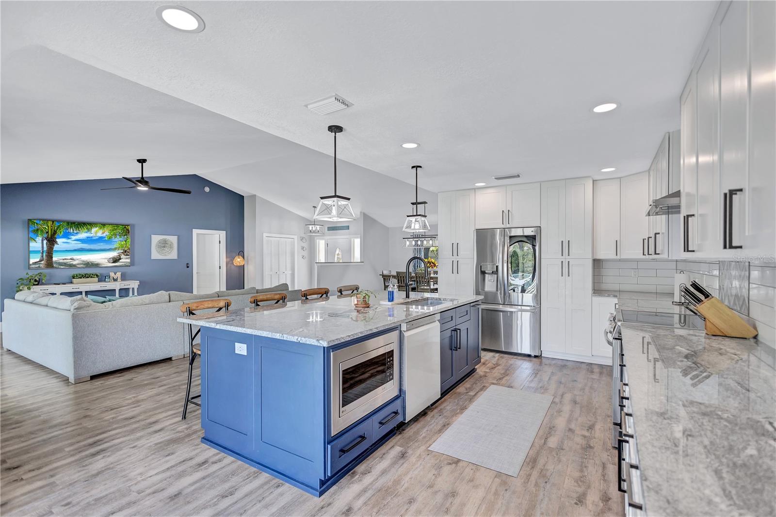 Coastal living meets modern comfort in the highly sought after neighborhood of Collins Estates. Homes in this neighborhood don't come up for sale too often and this is one you don't want to miss! Less than one mile from the sugar-sand beaches of Indian Rocks and NO FLOOD INSURANCE REQUIRED, this beautifully updated 3-bedroom, 2-bath home combines laid-back coastal vibes with thoughtful, modern upgrades. The completely renovated kitchen is a true standout—featuring an 8-foot island, miles of counter space, and the cabinet storage is extensive. Whether you're hosting friends or whipping up a quiet dinner, this space delivers. The open, split floor plan is ideal for entertaining, flowing seamlessly to the spacious back paver patio that overlooks a tranquil pond with a gorgeous fountain. Step outside and discover a massive backyard (87X131) with plenty of room to add a pool if you choose—create your dream outdoor oasis! Practical updates include a roof, A/C, solar, and appliances are less than 4 years old, plus the windows and doors were replaced in 2007 adding additional insulation and peace of mind. Whether you're searching for a forever home or the perfect beach retreat, this one truly has it all!