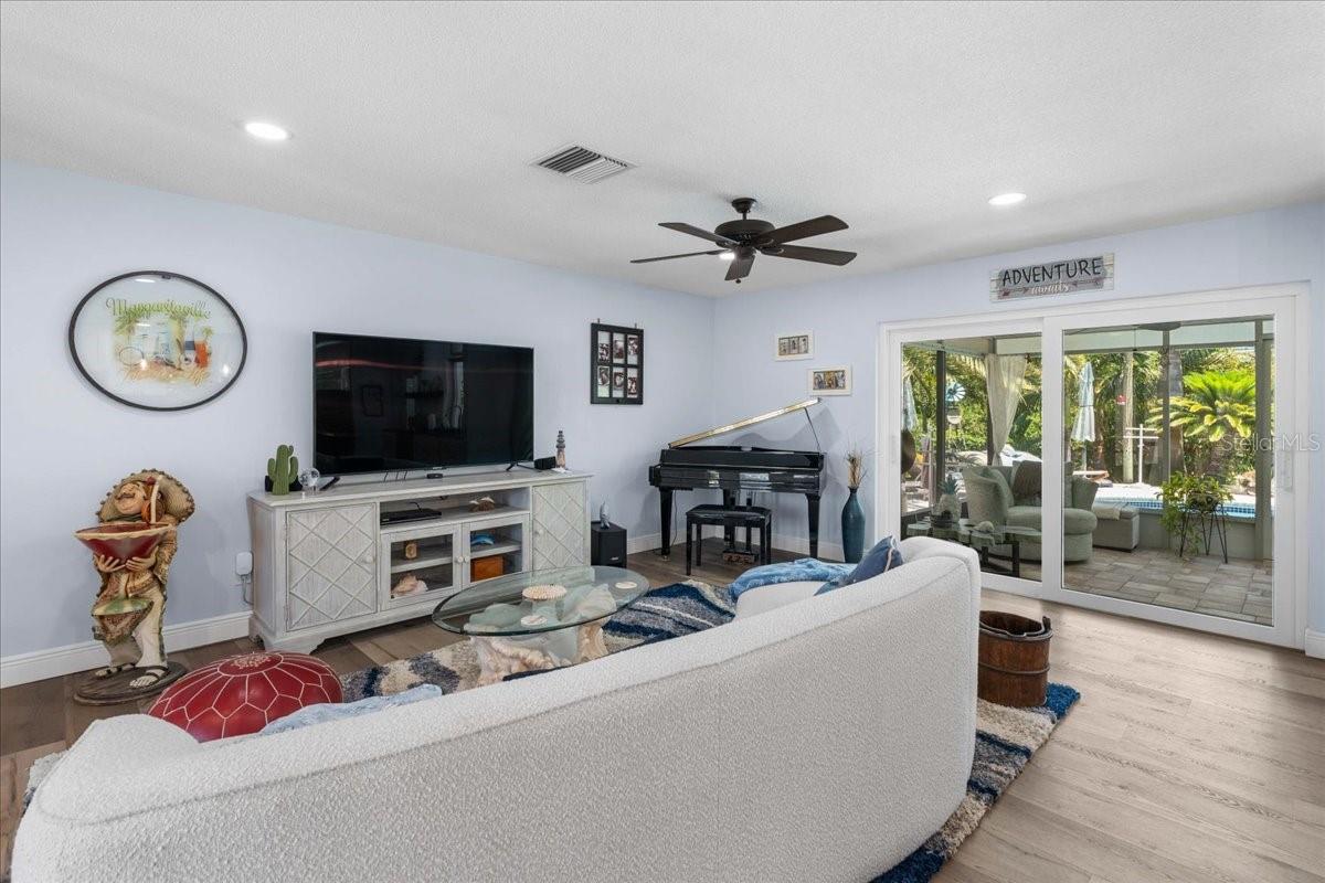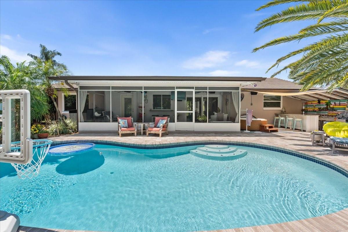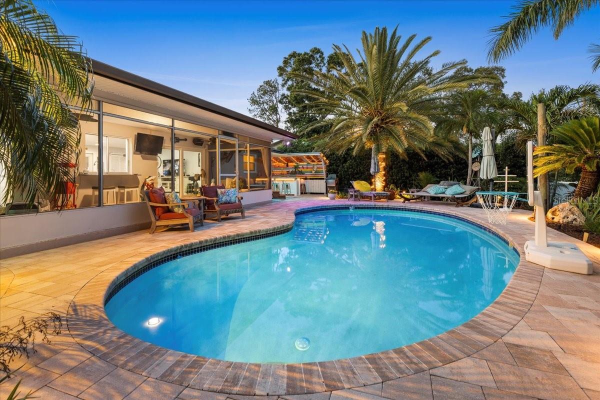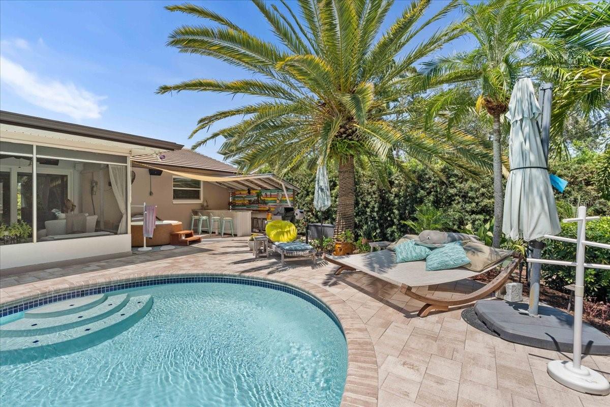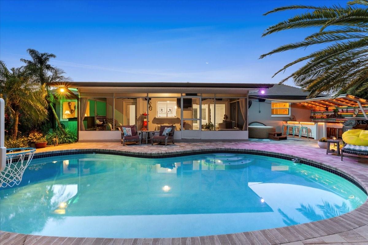 Pride of ownership, Welcome to this high & dry, lower risk flood zone X, 3 bedroom (two master suites), two bath extensively updated single family home in Yacht Club Estates. The property is located minutes to some of the best beaches in the world. You will note the beautiful tropical landscaping in front of the home and in the back yard with enhanced lighting during the evenings. The in-ground pool was resurfaced with Crystal Diamond Coating and has with new deck pavers. The enclosed Florida Room off the pool area is 26” X 10” and is accessible from the newer sliders from the main living area. There is an outdoor shower, granite bar area and a fire pit in the back of the property. There is an irrigation system. The home has a concrete tile roof with a lifetime limited warranty and has a double car garage (20' X 20' ) with side door for easy access to the yard, and an entry to the home for bringing in groceries. The flooring features carpet in the master bedroom and high-end Parkay Organic flooring throughout. The updated open kitchen is a focal point, that includes Monogram Vent/stove top, Monogram Dishwasher, Monogram Convention Oven, Wolf Microwave, state of the art refrigerator that makes two different shapes of ice cubes. Pasta Faucet with tiled Niche, Cedar kicks in the kitchen, Beautiful Brazilian Lodge Rock Granite Island with soft close Teak Cabinets, the upper cabinets are solid shaker 36” in height. Newer ceiling recess lighting & vents, new Duet Whirlpool washer/dryer in the laundry room, which has a large sink. Newer high impact patio sliders and windows have been added, only two small windows remain to be updated in the home. The luxurious design includes two master suites with an additional 3rd bedroom/den/office overlooking the pool area. Included are indoor/out-door speakers for entertaining along with a 360-degree security system. The electronic package (Lorex) in one of the closets can accommodate up to 4 phones, 3 TV’s and 180-degree camera, 5 cameras for security installed by the new owner. Seminole City Center, Banks, Publix, Medical facilities, and fantastic local restaurants are a few of the perks living in this meticulously maintained home. A true Tropical Oasis.