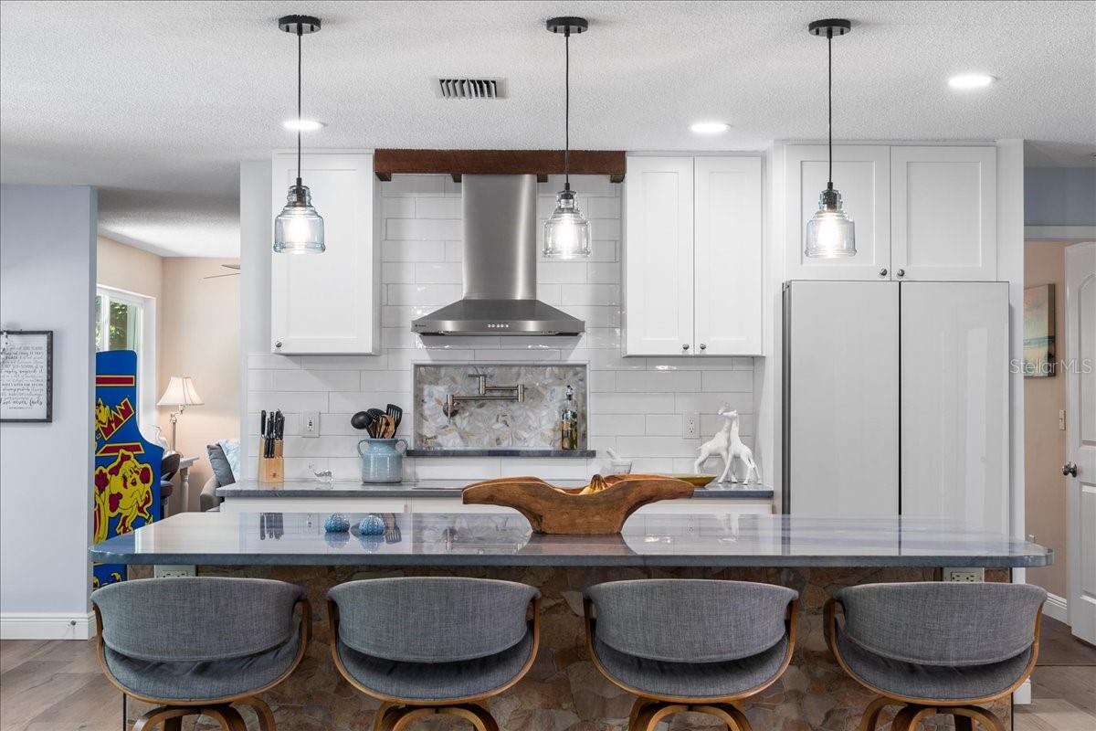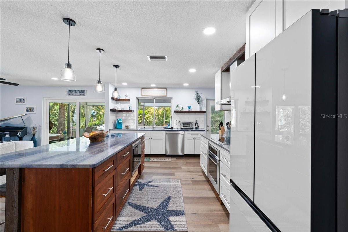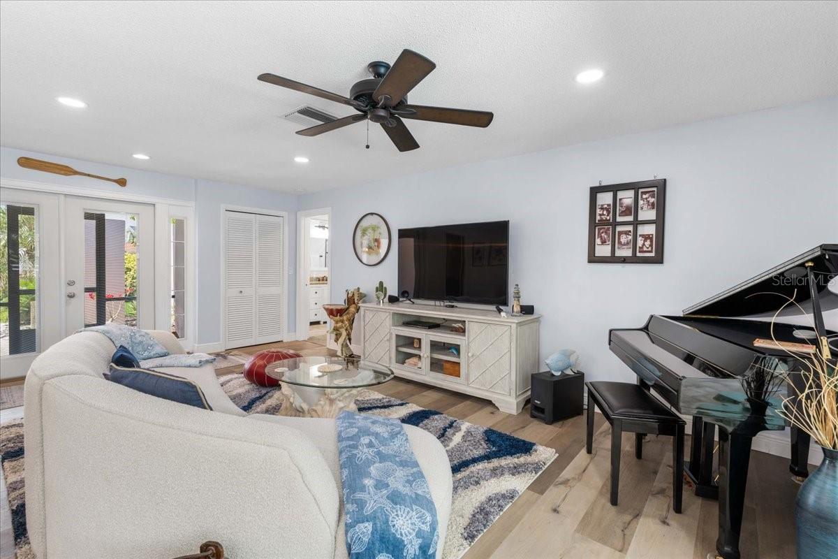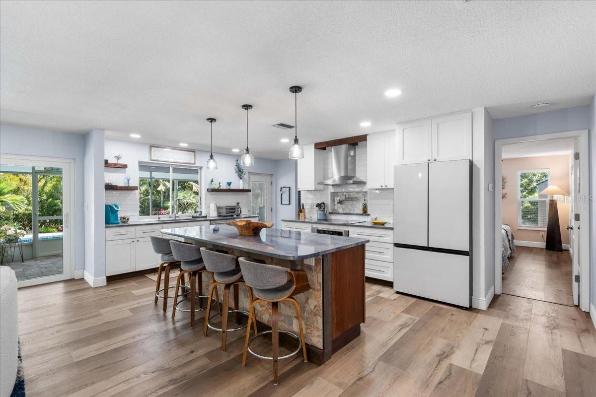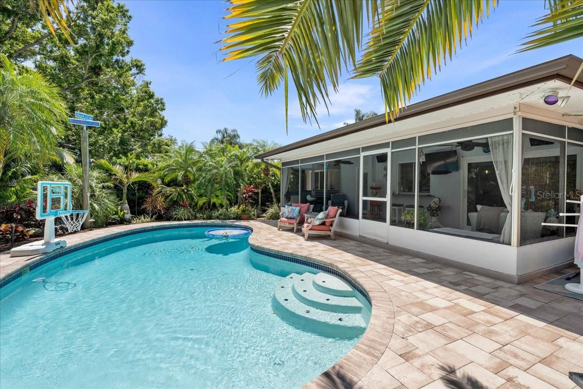 Pride of ownership, Welcome to this high & dry, lower risk flood zone X, 3 bedroom (two master suites), two bath extensively updated single family home in Yacht Club Estates. The property is located minutes to some of the best beaches in the world. You will note the beautiful tropical landscaping in front of the home and in the back yard with enhanced lighting during the evenings. The in-ground pool was resurfaced with Crystal Diamond Coating and has with new deck pavers. The enclosed Florida Room off the pool area is 26” X 10” and is accessible from the newer sliders from the main living area. There is an outdoor shower, granite bar area and a fire pit in the back of the property. There is an irrigation system. The home has a concrete tile roof with a lifetime limited warranty and has a double car garage (20' X 20' ) with side door for easy access to the yard, and an entry to the home for bringing in groceries. The flooring features carpet in the master bedroom and high-end Parkay Organic flooring throughout. The updated open kitchen is a focal point, that includes Monogram Vent/stove top, Monogram Dishwasher, Monogram Convention Oven, Wolf Microwave, state of the art refrigerator that makes two different shapes of ice cubes. Pasta Faucet with tiled Niche, Cedar kicks in the kitchen, Beautiful Brazilian Lodge Rock Granite Island with soft close Teak Cabinets, the upper cabinets are solid shaker 36” in height. Newer ceiling recess lighting & vents, new Duet Whirlpool washer/dryer in the laundry room, which has a large sink. Newer high impact patio sliders and windows have been added, only two small windows remain to be updated in the home. The luxurious design includes two master suites with an additional 3rd bedroom/den/office overlooking the pool area. Included are indoor/out-door speakers for entertaining along with a 360-degree security system. The electronic package (Lorex) in one of the closets can accommodate up to 4 phones, 3 TV’s and 180-degree camera, 5 cameras for security installed by the new owner. Seminole City Center, Banks, Publix, Medical facilities, and fantastic local restaurants are a few of the perks living in this meticulously maintained home. A true Tropical Oasis.