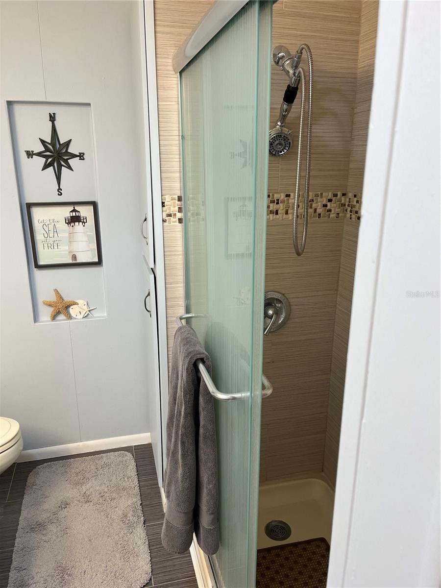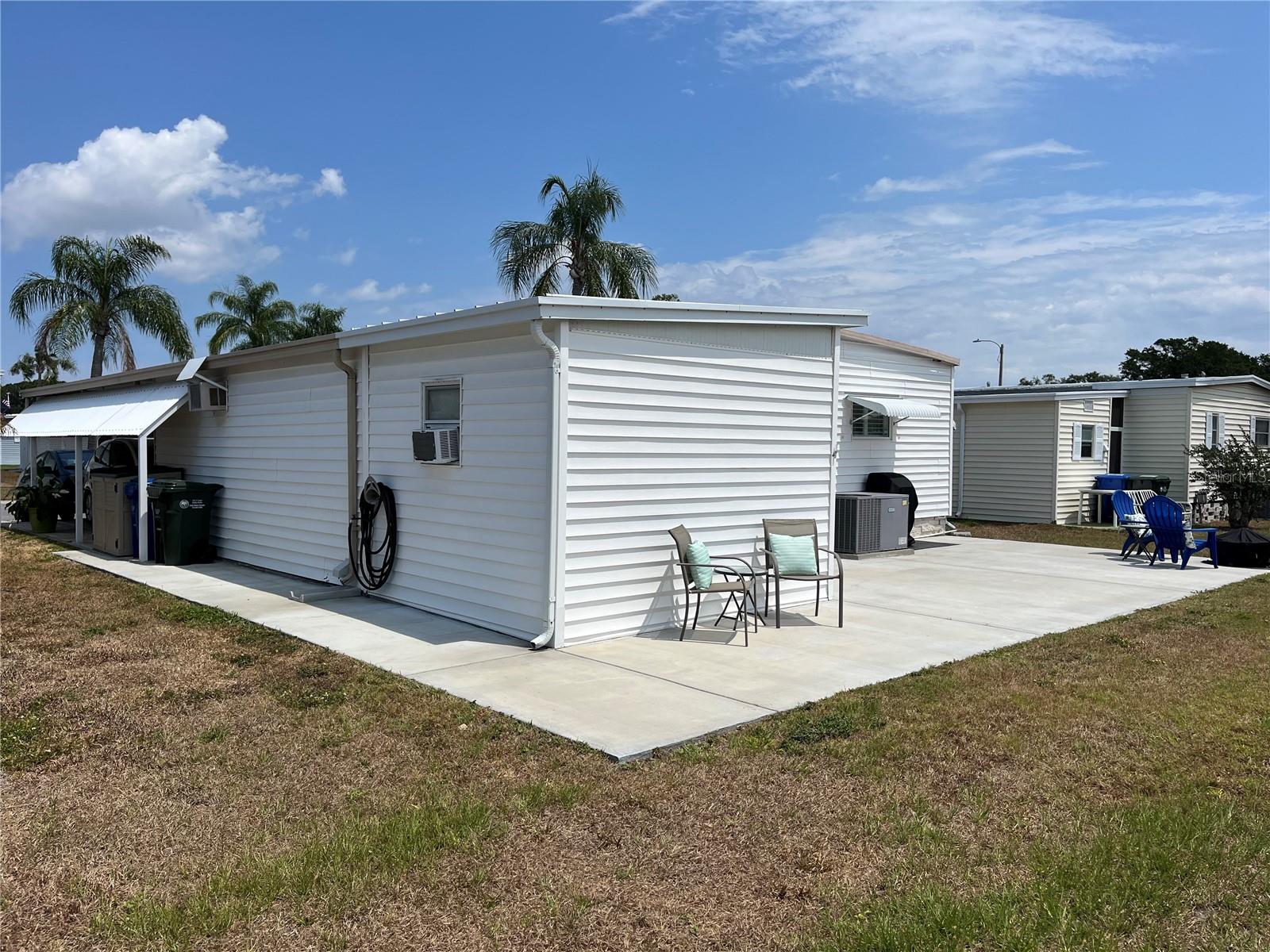 LIVE-IN OR OVERNIGHT CARE GIVER FRIENDLY - WITH QUEEN BED IN 3RD BEDROOM THAT HAS ITS OWN ENTRANCE. UNIQUE PROPERTY WITH LARGEST PATIO IN THE COMMUNITY, FANTASTIC FLOOR-PLAN LAYOUT!!! NEWLY UPGRADED LARGE LAUNDRY ROOM WITH AN ABUNDANT AMOUNT OF STORAGE SPACE, FULLY FURNISHED HOME, BEAUTIFUL INTERIOR PLANTATION SHUTTERS ON ALL WINDOWS (high quality - made in USA - includes extended warranty). LAUNDRY ROOM with Substantial STORAGE SPACE, and is ACCESSIBLE FROM THE INTERIOR OF THE HOME - NO NEED TO GO OUTSIDE!!! Located in a quiet and favorable area within Fairway Village, with the south pool and spa just steps away from your doorstep. Full-size washer & dryer is included. Shed with Much Storage Space (workshop-man-cave) included. The home features 2 full-bathrooms with walk-in showers in both. A total of 3 bedrooms (2 main bedrooms and 1 Guest/Caregiver Bedroom). The guest bedroom is a flexible space that can function as an office, a reading room, etc. There is an open-eat-in kitchen area and a Florida room at the front of the home. Exterior updates include: Newly constructed large concrete back patio (approximately 565 sq. feet, largest in the park) which has potential of enclosure and is great for entertaining, Concrete walkway which starts from the front of home and goes all the way to the backyard patio. Pleasant curb appeal with scented jasmine laced through the lattice to welcome your guests when in bloom and provide privacy to your front porch. Decorative driveway with a two-car capacity. Interior Updates include: top of the line New KitchenAid Energy Star Dishwasher in stainless steel finish, Plantation Shutters (Eclipse brand, with 25-year transferrable warranty), 3.0-ton Comfortmaker straight cool 14 seer package A/C unit (as well as 10 kw electric heat), Water proof upgraded Vinyl plank flooring (with rock solid subfloors), newly remodeled rooms including Bedrooms, Main bath (both bathrooms have walk-in showers). Newer windows throughout, laminate floors in kitchen, dining area, living room, front Florida room, and hallway. Freshly painted throughout; the paint color evokes a coastal-inspired theme that blends well with the plantation shutters. The home has been very well maintained over the years, with the same family having owned it for 19+ years. HIGHLY DESIRABLE and AFFORDABLE 55+ COMMUNITY THAT IS METICULOUSLY MAINTAINED, WITH OUTSTANDING AMENITIES AND ACTIVITIES. Located in the extremely popular Fairway Village community that has the important benefit of being owned by the residents. This is a golfing community, with a very well-taken care of nine-hole course. In addition, there is a new, magnificent 19,000 square foot clubhouse with many amenities, including a spectacular ballroom, fitness center, PING PONG CLUB, state of the art kitchen, library, billiards room, card game (poker) room, several meeting rooms, 8 covered shuffleboard courts, attractive deck overlooking Half Moon Lake, and two swimming pools with hot tubs. The low monthly maintenance fee of $401 includes cable, internet, lawn care, water, sewer, trash, recycling and access to all the amenities. Fairway Village is located 15 to 20 minutes from beaches, airports and many attractions. The share value (lot value) in this community is $55,000 and is included in the list price. Call or text listing agent David Barron.
