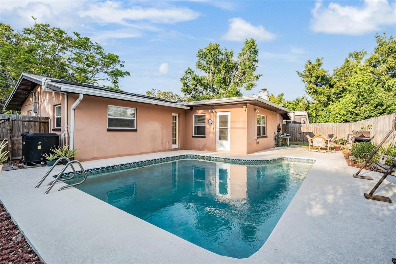 MOTIVATED SELLERS!!! Welcome to your next home in desirable Yacht Club Estates! This charming corner-lot property offers laid-back Florida living with plenty of space to relax and entertain. Inside, you’ll find 4 comfortable bedrooms, 2 full bathrooms, and a spacious 2-car garage. The smart SPLIT-BEDROOM layout provides privacy, while the open living areas make it easy to gather and connect. The large eat-in kitchen is perfect for everything from casual breakfasts to dinner parties, featuring SOLID WOOD CABINETRY, a generous snack bar, and plenty of room for cooking and conversation. Unwind by the cozy WOOD-BURNING FIREPLACE in the den—ideal for movie nights, quiet evenings, or simply curling up with a good book. The primary suite is a true retreat, complete with a luxurious JACUZZI TUB in the master bath, perfect for unwinding at the end of the day. Throughout the home, double-pane windows help with energy efficiency and comfort, and screen/storm doors provide year-round flexibility and ventilation. Step outside and enjoy your private backyard oasis. The HEATED POOL and patio are perfect for relaxing weekends, BBQs, or year-round evening swims. The guest BATHROOM includes direct ACCESS TO THE POOL, adding extra convenience when entertaining. You’ll appreciate the many practical upgrades, too—like the newer ROOF (2016), a 2022 A/C system, and a WHOLE-HOUSE WATER SOFTENER. In addition to the 2-car garage, there’s plenty of extra PARKING, including a STONE PAD WITH A 30-AMP PLUG that’s ideal for a 30-foot boat, RV, or other toys. This home is conveniently located near schools, shopping, dining, and recreation—just minutes from a boat ramp and the beautiful Gulf beaches, a short drive to vibrant downtown St. Petersburg, and less than 30 minutes from Tampa International Airport. Move-in ready and available for a quick close, this home blends comfort, convenience, and coastal charm. Don’t miss your chance to make it yours or possiblY use it as a SHORT TERM RENTAL —come see what relaxed Florida living is all about!
