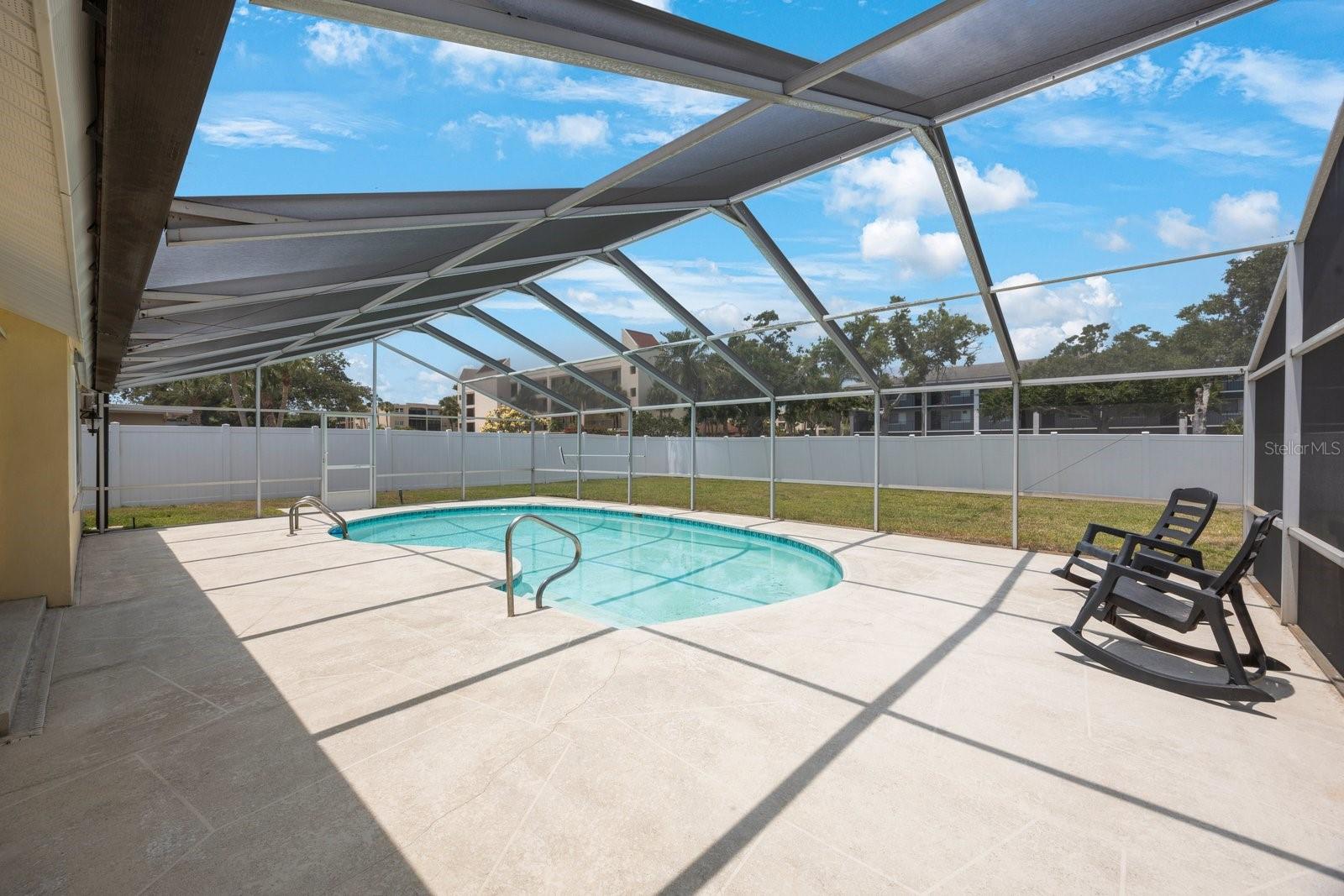 Under contract-accepting backup offers. Privacy & Elegance surround you in this spacious over 2400 Sq. Ft home in sought after neighborhood. Sprawling 3/2/2 with open concept Family room with fireplace opening to Living Room, Plus a Den/ TV/room which all lead to a sunny granite kitchen, dining and then out through sliders to the sparkling, caged pool area and humongous 85'x146' private fenced yard beyond! This is the ONE you've been waiting for with All Hurricane Impact windows, AC and hot water heater 3 years new. In addition, there is a separate laundry room, water softener, sprinkler system, 150 amp electric, extra long garage for the larger vehicle and all your toys, plus updated gutters and soffits. Top this off with a durable tile roof and you have al the "I Wants" at a reasonable price to make this one Yours NOW!