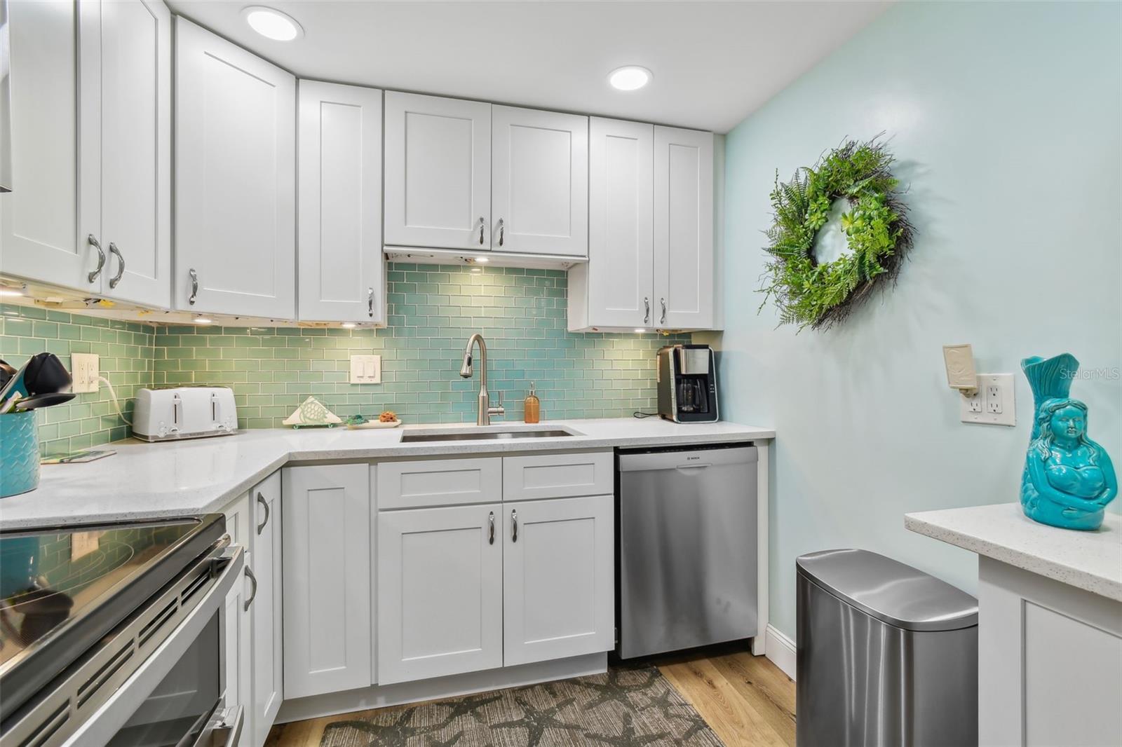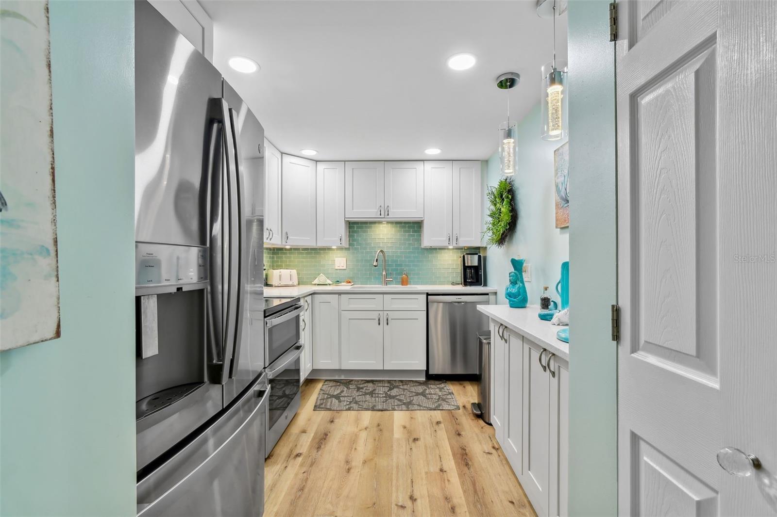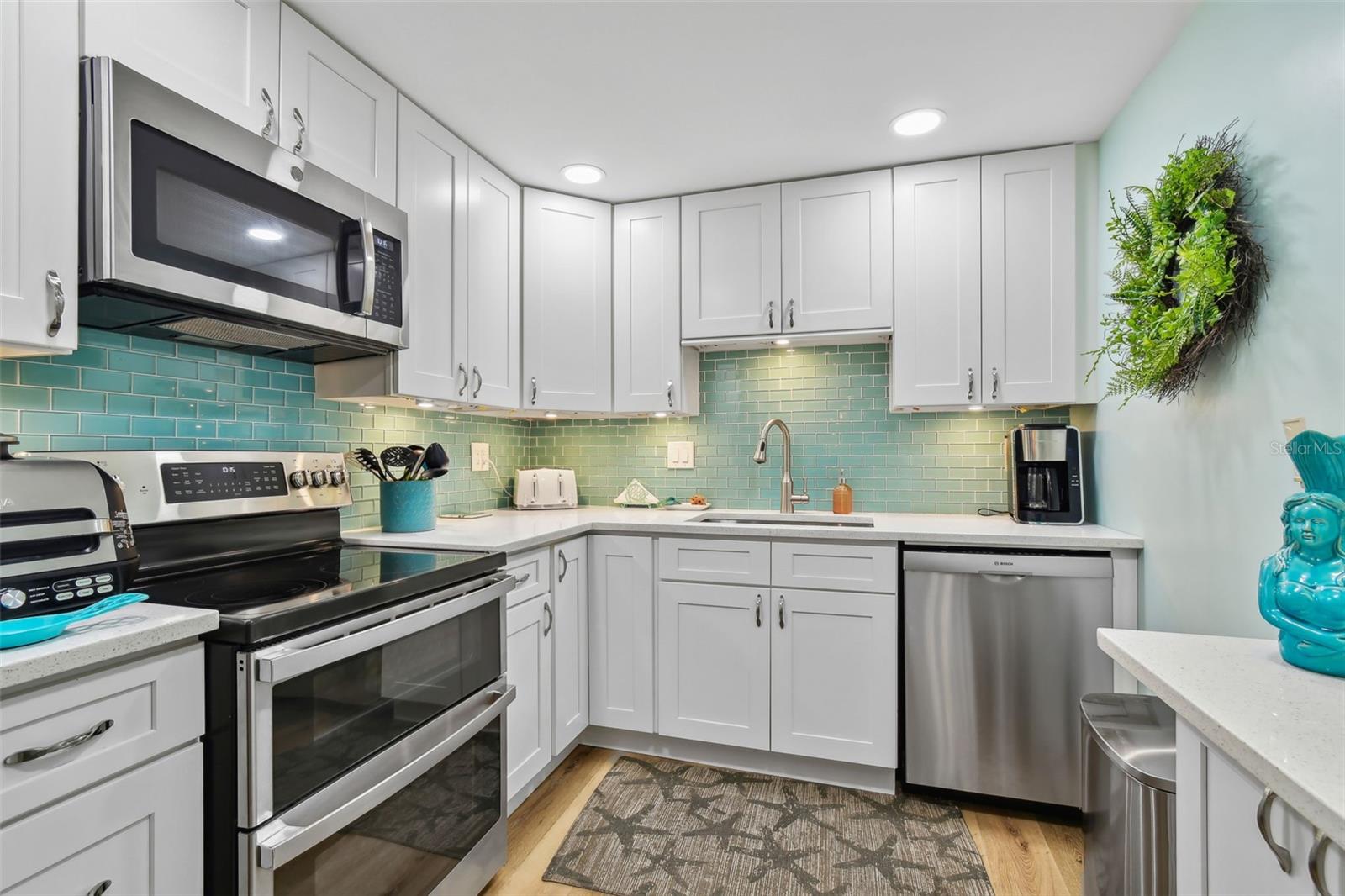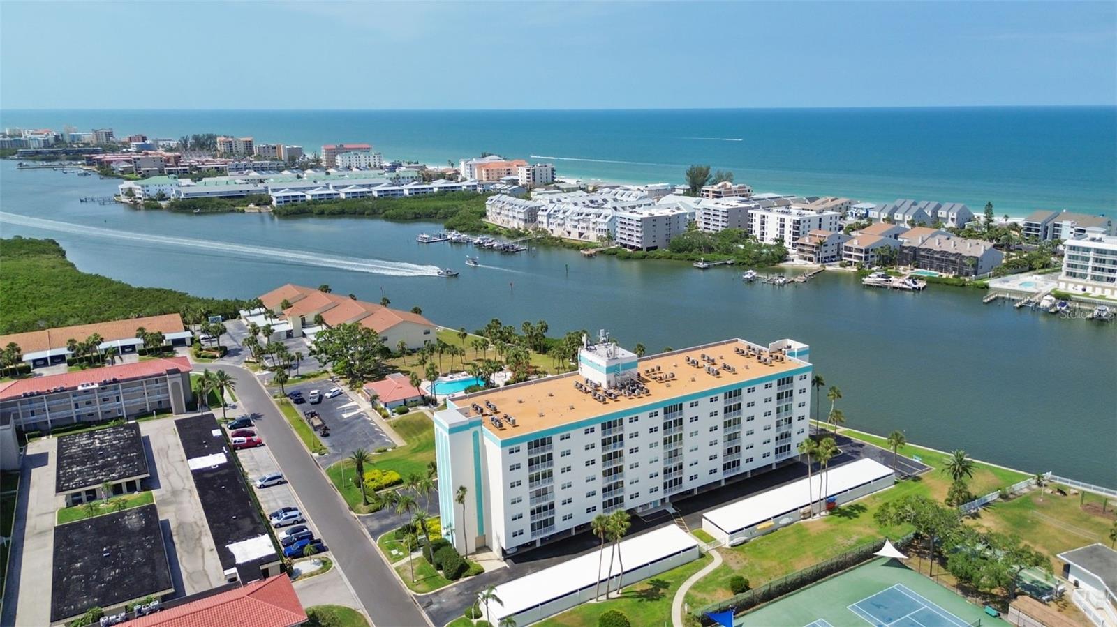 Lifestyle living at its best! Enjoy views of the intracoastal waterway from this exceptional gem in the highly sought after 55+ Imperial Point Community! This stunning 3rd floor, 2-bedroom, 2-bathroom newly renovated condo offers over 1,100 sq ft of beautifully crafted living space with luxury vinyl plank flooring throughout. Step into an inviting open floor plan that seamlessly transitions to a sun-drenched balcony, where you can enjoy morning coffee and breathtaking sunsets. Both bedrooms boast spacious layouts, while the oversized master suite features a walk in closet, balcony access, and updated expansive master bath ! The well-appointed kitchen provides ample cabinet and counter space, tile backsplash and stainless steel appliances, perfect for all your culinary needs. This condo is truly move-in ready, with a completed Milestone Inspection and no assessments! Residents enjoy amenities including 2 laundry rooms per floor, individual storage lockers , and you own reserved parking spot under the building. The Imperial Point community is just 5 minutes from the world-famous Gulf beaches and offers an array of amenities: 2 pools (a heated Olympic-sized pool for all ages and a south pool for adults), 2 clubhouses, a 24-hour fitness center, ping pong, an adult billiard room, a library, a community boat ramp, fishing dock, shuffleboard, tennis courts, outdoor grills, a playground, plenty of guest parking and more!