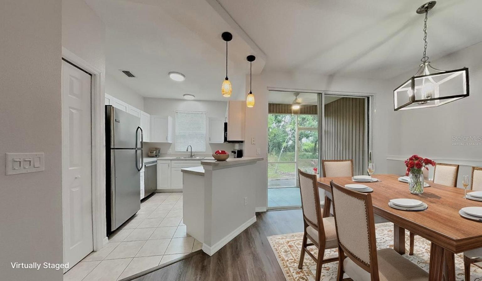 One or more photo(s) has been virtually staged. Welcome Home to Forest Lakes at Largo! Discover this beautifully maintained 2-bedroom, 1.5-bathroom corner-unit townhome nestled in the highly sought-after Forest Lakes at Largo community. Enjoy the convenience of assigned parking located directly in front of your home, and step into a bright, airy living space that immediately makes you feel at home. The open-concept main floor features a convenient half bathroom for guests and a modern kitchen equipped with stainless steel appliances, a breakfast bar for extra seating, and ample counter space for meal prep. Sliding glass doors lead to a screened-in porch overlooking a tranquil pond—perfect for relaxing mornings or peaceful evenings outdoors. Upstairs, you'll find the spacious primary bedroom with vaulted ceilings and a large walk-in closet. The full bathroom is easily accessible through a private entrance from the primary bedroom, offering both comfort and privacy. The laundry closet is conveniently located upstairs and comes complete with a washer and dryer. Ideally located just minutes from Florida’s top beaches, with easy access to US-19, this home is close to premier shopping, dining, entertainment, and medical facilities. Don’t miss your chance to own this charming townhome in a prime location—schedule your private showing today!