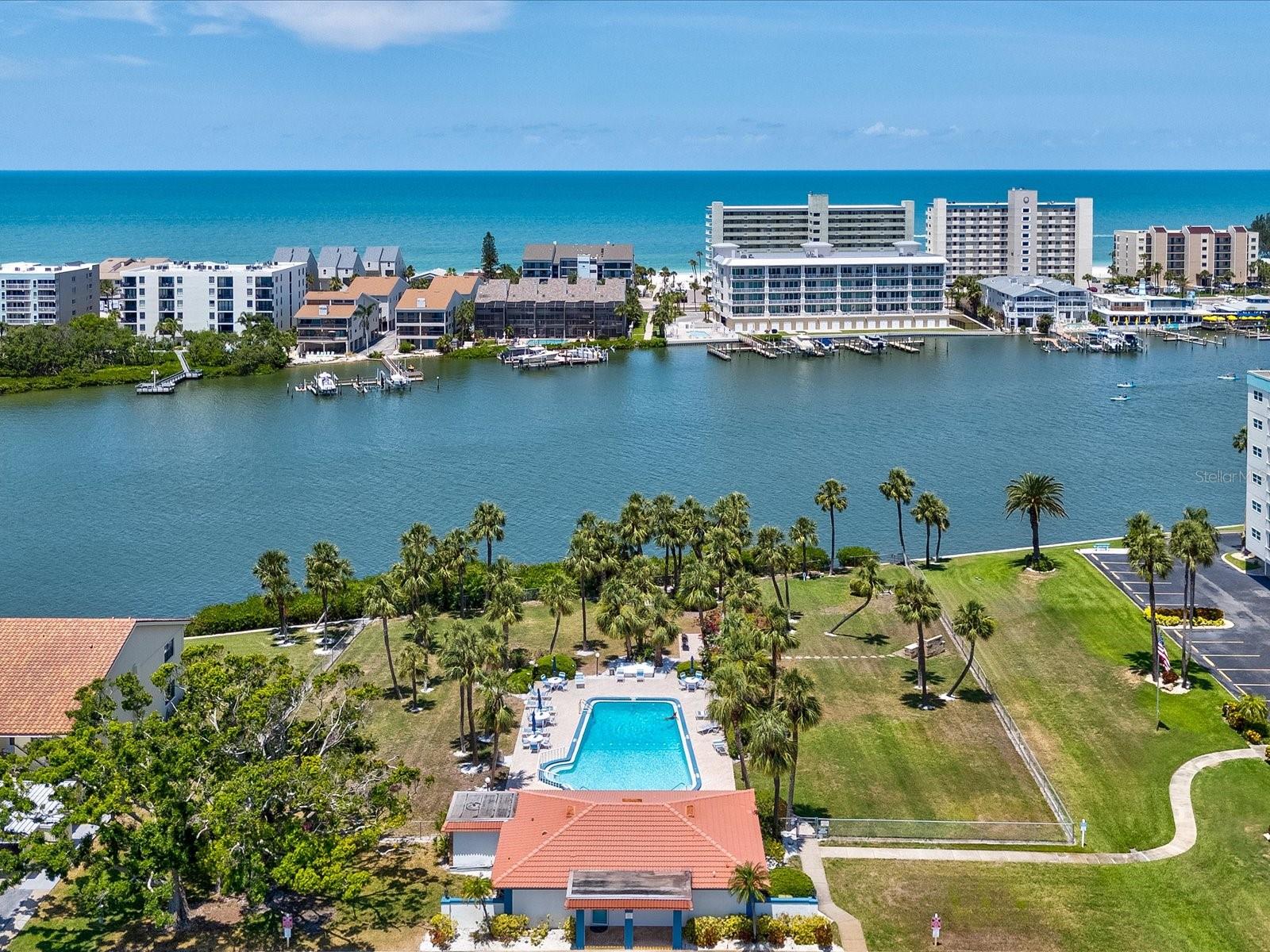 Enjoy the gorgeous panoramic views from this waterfront condo in the beautiful 55+ Imperial Point! Intracoastal water views from every room in this corner unit! South-facing views of the intracoastal from every window and balcony are perfect for watching boats, dolphins and sunsets from your patio, or even right from bed. The beautiful refreshed kitchen is light and bright, with stainless appliances and updated cabinet hardware. The living room/dining room combo space provides great flow, leading you straight out to the enclosed patio with beautiful natural light. Huge master suite is a peaceful retreat, featuring a large walk-in closet and an ensuite bath with tub. The large guest bedroom has a walk-in shower. All exterior doors and windows have been upgraded to hurricane grade for an added layer of safety. Block construction of the building AND a whole-building generator will give you peace of mind. Laundry room is conveniently located right next door to the unit. New roof in 2024, new dishwasher in 2024, water heater and AC replaced in 2022. One assigned under-building carport parking space plus open parking, and two assigned storage spaces. One space on the 4th floor and one under the building that's perfect for storing all the sandy beach stuff! This waterfront community has phenomenal amenities, including: a community boat ramp, fishing pier/dock with fish-cleaning stations, two clubhouses (with gym, library, game rooms, and a full social calendar), two pools (one being Olympic-sized that is heated or cooled), a playground, grilling stations, tennis and pickleball courts, shuffleboard and more! Please note: service pets only. Milestone Inspection has been completed on this Building with NO deficiencies found. Embrace the waterfront lifestyle you deserve—where every day feels like a vacation!