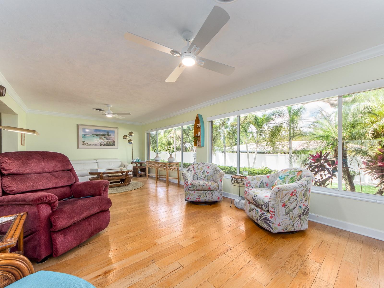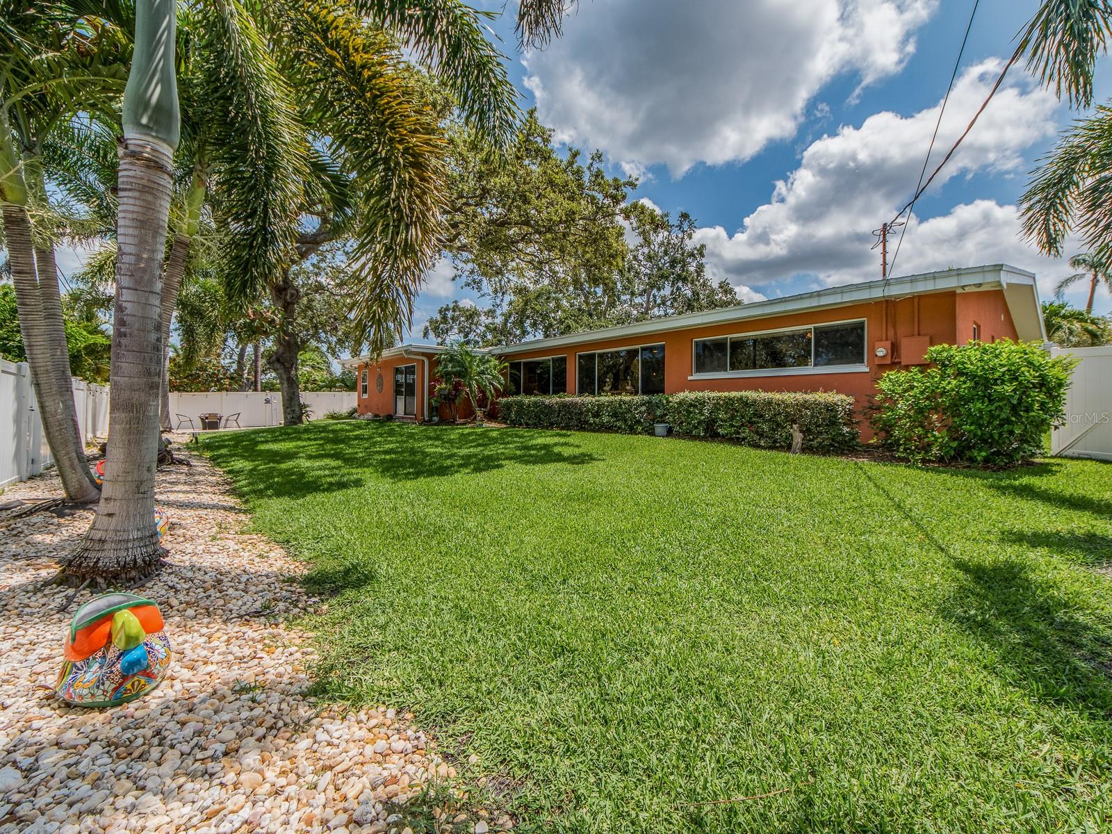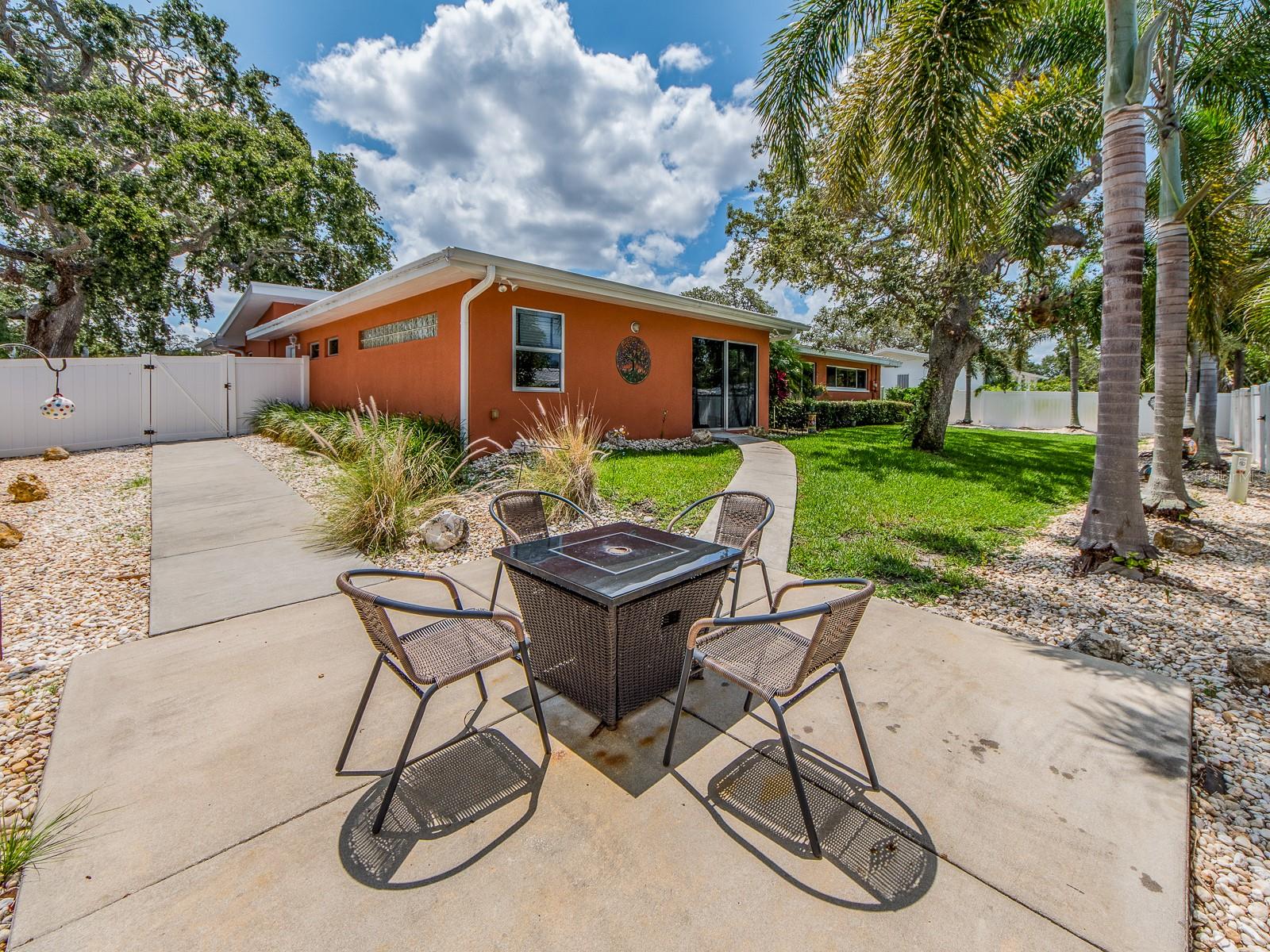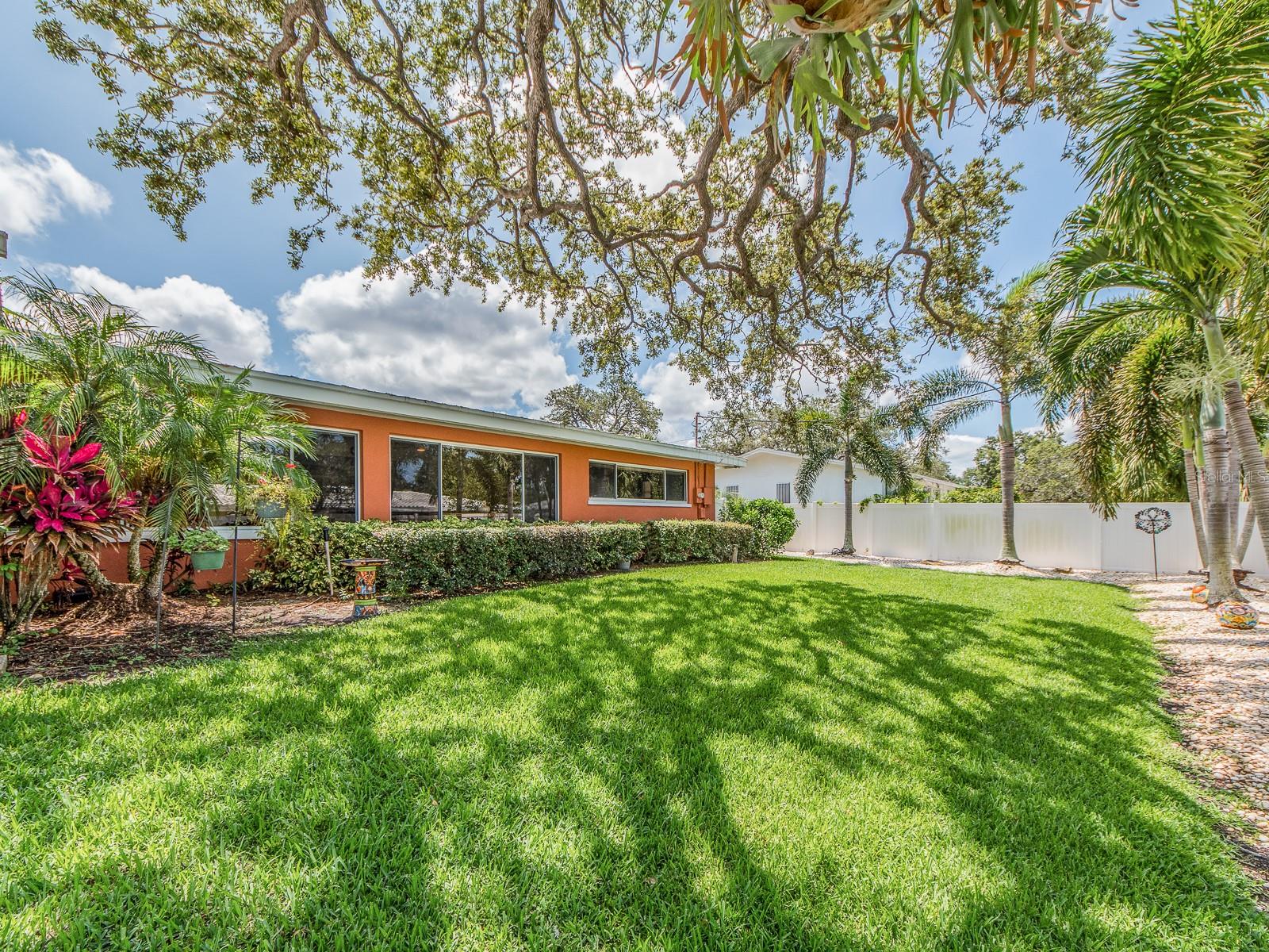 Nestled in a highly desirable neighborhood, this meticulously and well maintained home (4 bedroom / 3 full baths) offers the perfect blend of comfort and convenience. This home boasts lush, beautifully landscaped grounds, creating a serene retreat in a quiet and welcoming community. Entering into your new home you will quickly notice the openness from front to back as the living room flows into the family room, and the backyard comes into view with practically floor to ceiling glass panel windows that stretch the length (25"+) of the family room. Turning your attention to the kitchen (just to the right of entry) it possesses white cabinetry and appliances, a large window to view the front exposure of the home and soft neutral Corian countertops that complements the wooden flooring. Not to feel enclosed, the back of the kitchen opens up to the dining room and view of the family room. The South wing of the home shares three bedrooms with two full baths. The primary bedroom is the last of these three and is quite large with plenty of light coming from full length windows. The primary bath is quite spacious and could easily have a dual sink countertop in place. The shower is a full size walk-in, that was designed for wheel chair accessibility. Down the hallway, leading to the other two bedrooms are three sets of double door closets for additional storage. Moving back to the northern portion of the home you have a forth bedroom (or office) that is equipped with the third full bathroom. Just directly behind this room is the bonus room that is currently themed as the "50"s" room. A fantastic room for festive gatherings. This leads out to the amazing, lush and well maintained backyard which consists of a fire pit area. This area could potentially contain a pool if you so desired. Finally, some notable features include: washer & dryer in garage (could easily be placed inside if wished too); North Star water softener; water sprinkler system that contains a deep well system; updated electric panel; metal roof (10 years); HVAC system (2019); two separate water heaters (one in home 2020) while the other is located in the garage; wooden flooring (13 years). Located outside any flood zone (NO FLOOD INSURANCE required) and just minutes from stunning beaches, Belleair boat ramp, restaurants, shops, and golf courses. Whether you're looking for relaxation or easy access to local attractions, this home is an exceptional find!