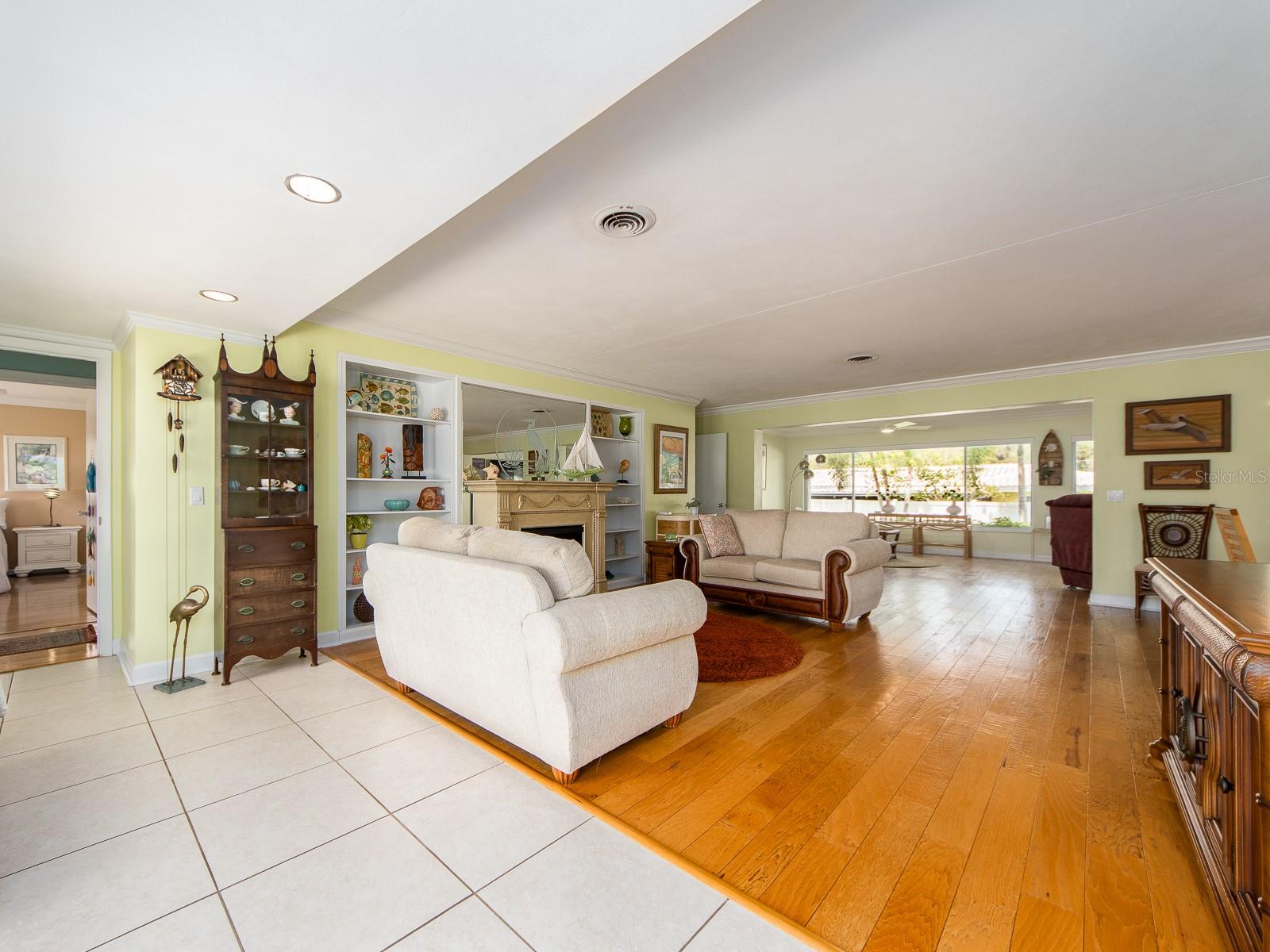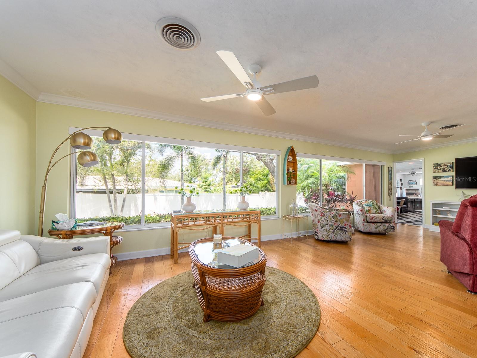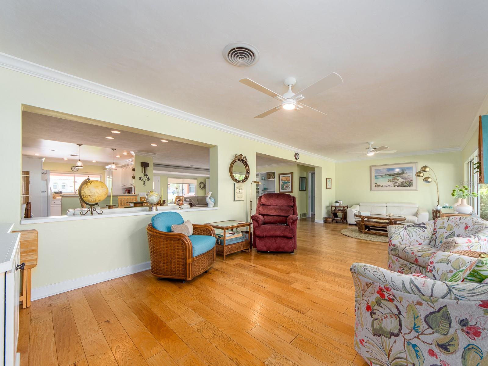 Nestled in a highly desirable neighborhood, this meticulously and well maintained home (4 bedroom / 3 full baths) offers the perfect blend of comfort and convenience. This home boasts lush, beautifully landscaped grounds, creating a serene retreat in a quiet and welcoming community. Entering into your new home you will quickly notice the openness from front to back as the living room flows into the family room, and the backyard comes into view with practically floor to ceiling glass panel windows that stretch the length (25"+) of the family room. Turning your attention to the kitchen (just to the right of entry) it possesses white cabinetry and appliances, a large window to view the front exposure of the home and soft neutral Corian countertops that complements the wooden flooring. Not to feel enclosed, the back of the kitchen opens up to the dining room and view of the family room. The South wing of the home shares three bedrooms with two full baths. The primary bedroom is the last of these three and is quite large with plenty of light coming from full length windows. The primary bath is quite spacious and could easily have a dual sink countertop in place. The shower is a full size walk-in, that was designed for wheel chair accessibility. Down the hallway, leading to the other two bedrooms are three sets of double door closets for additional storage. Moving back to the northern portion of the home you have a forth bedroom (or office) that is equipped with the third full bathroom. Just directly behind this room is the bonus room that is currently themed as the "50"s" room. A fantastic room for festive gatherings. This leads out to the amazing, lush and well maintained backyard which consists of a fire pit area. This area could potentially contain a pool if you so desired. Finally, some notable features include: washer & dryer in garage (could easily be placed inside if wished too); North Star water softener; water sprinkler system that contains a deep well system; updated electric panel; metal roof (10 years); HVAC system (2019); two separate water heaters (one in home 2020) while the other is located in the garage; wooden flooring (13 years). Located outside any flood zone (NO FLOOD INSURANCE required) and just minutes from stunning beaches, Belleair boat ramp, restaurants, shops, and golf courses. Whether you're looking for relaxation or easy access to local attractions, this home is an exceptional find!