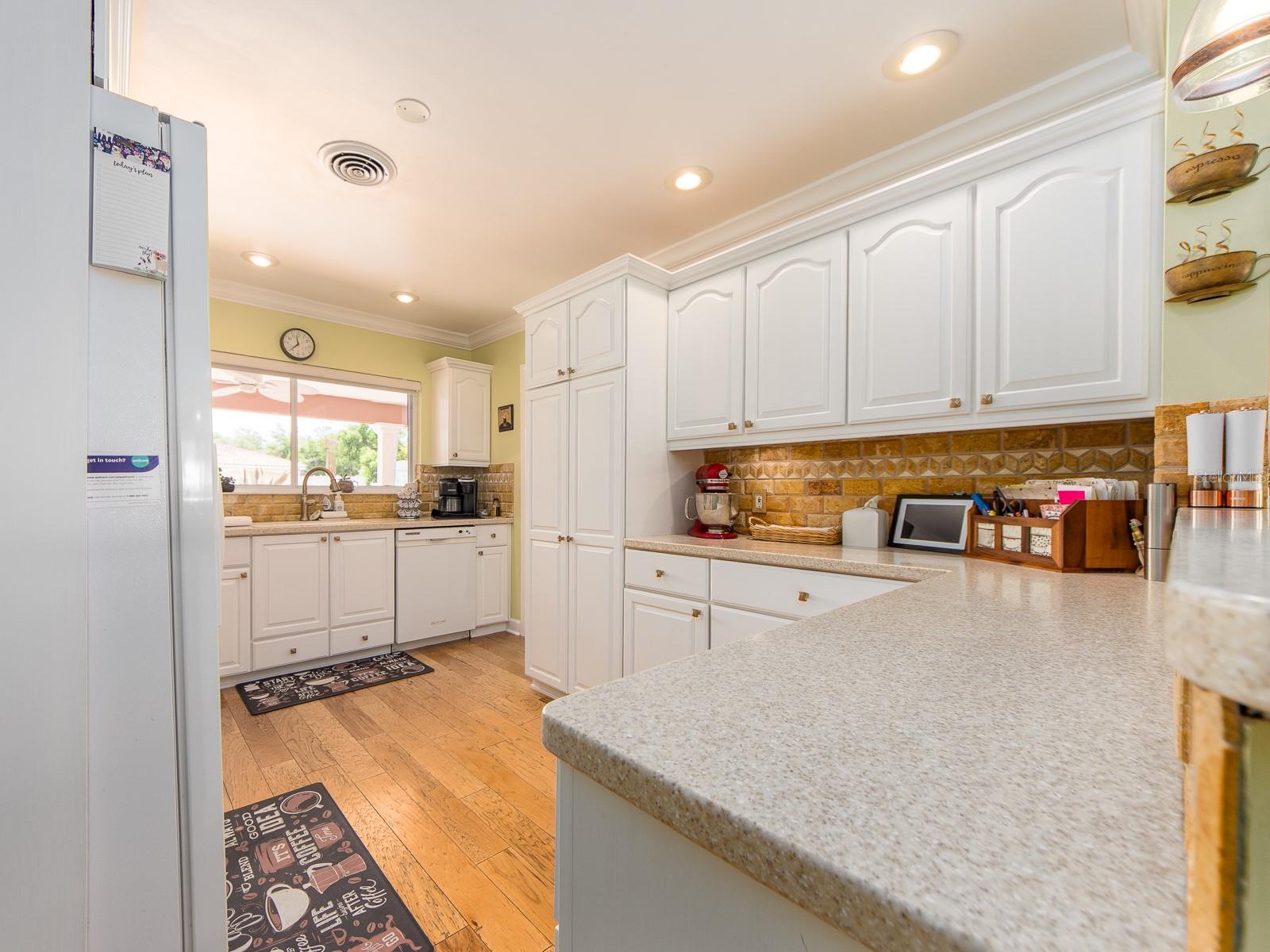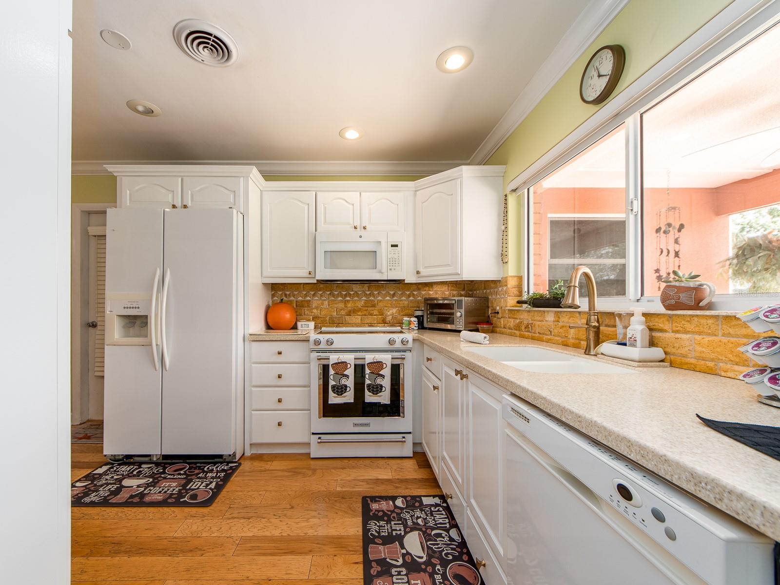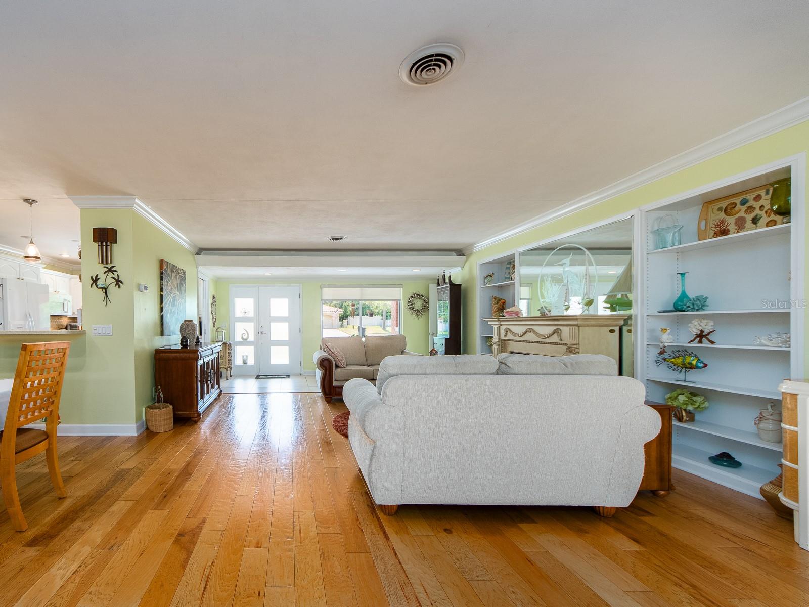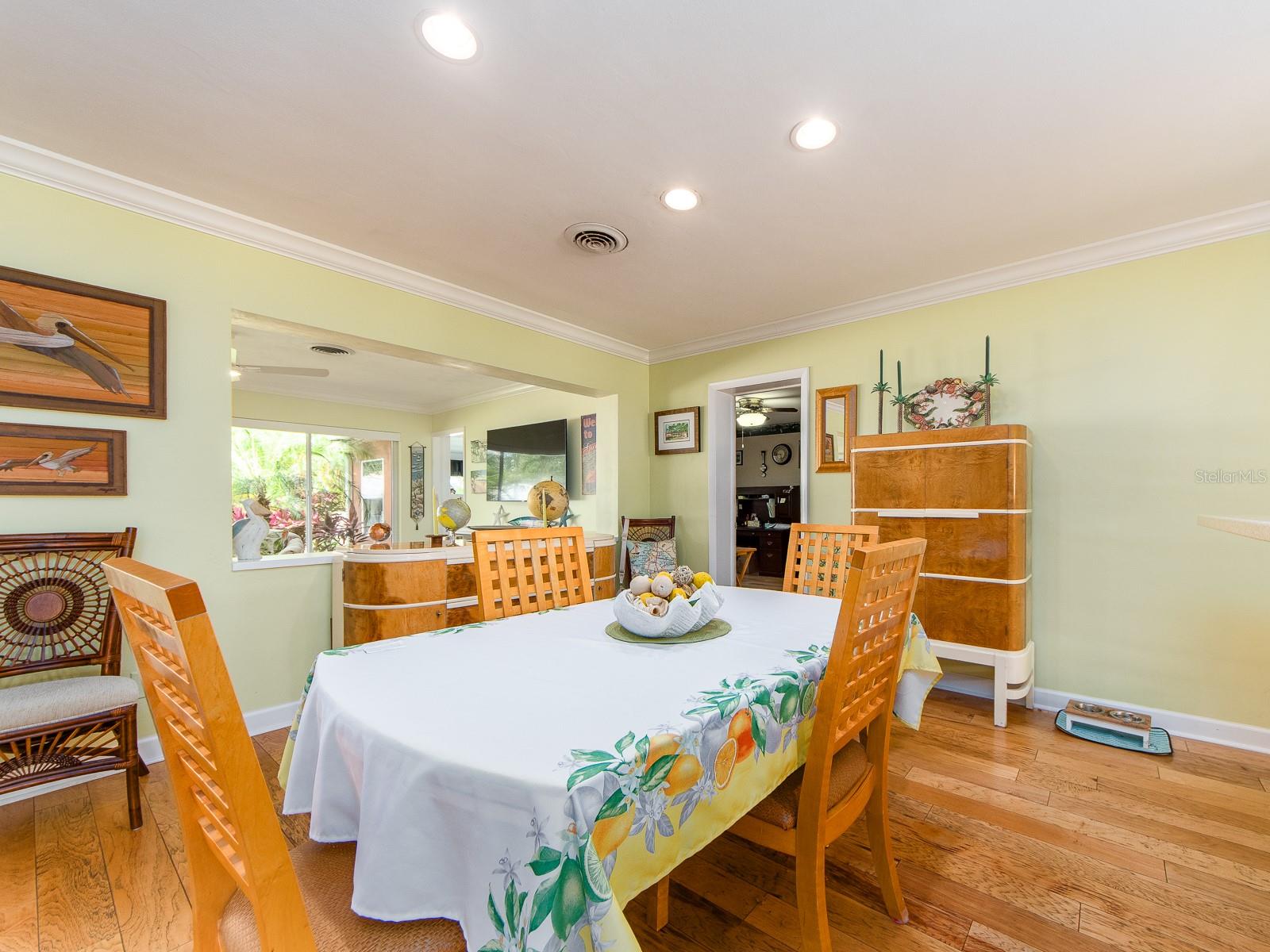 Nestled in a highly desirable neighborhood, this meticulously and well maintained home (4 bedroom / 3 full baths) offers the perfect blend of comfort and convenience. This home boasts lush, beautifully landscaped grounds, creating a serene retreat in a quiet and welcoming community. Entering into your new home you will quickly notice the openness from front to back as the living room flows into the family room, and the backyard comes into view with practically floor to ceiling glass panel windows that stretch the length (25"+) of the family room. Turning your attention to the kitchen (just to the right of entry) it possesses white cabinetry and appliances, a large window to view the front exposure of the home and soft neutral Corian countertops that complements the wooden flooring. Not to feel enclosed, the back of the kitchen opens up to the dining room and view of the family room. The South wing of the home shares three bedrooms with two full baths. The primary bedroom is the last of these three and is quite large with plenty of light coming from full length windows. The primary bath is quite spacious and could easily have a dual sink countertop in place. The shower is a full size walk-in, that was designed for wheel chair accessibility. Down the hallway, leading to the other two bedrooms are three sets of double door closets for additional storage. Moving back to the northern portion of the home you have a forth bedroom (or office) that is equipped with the third full bathroom. Just directly behind this room is the bonus room that is currently themed as the "50"s" room. A fantastic room for festive gatherings. This leads out to the amazing, lush and well maintained backyard which consists of a fire pit area. This area could potentially contain a pool if you so desired. Finally, some notable features include: washer & dryer in garage (could easily be placed inside if wished too); North Star water softener; water sprinkler system that contains a deep well system; updated electric panel; metal roof (10 years); HVAC system (2019); two separate water heaters (one in home 2020) while the other is located in the garage; wooden flooring (13 years). Located outside any flood zone (NO FLOOD INSURANCE required) and just minutes from stunning beaches, Belleair boat ramp, restaurants, shops, and golf courses. Whether you're looking for relaxation or easy access to local attractions, this home is an exceptional find!