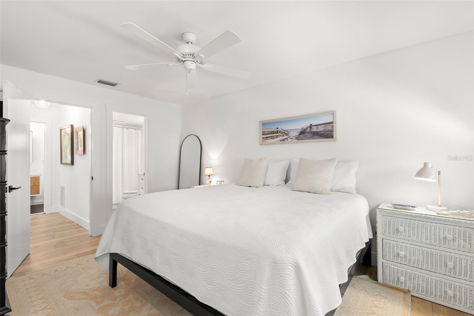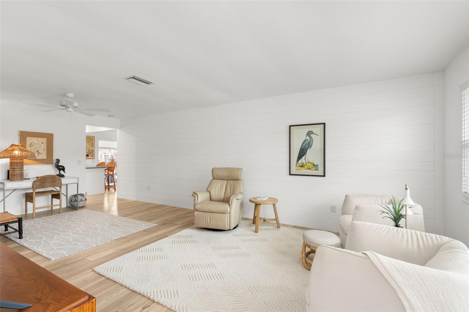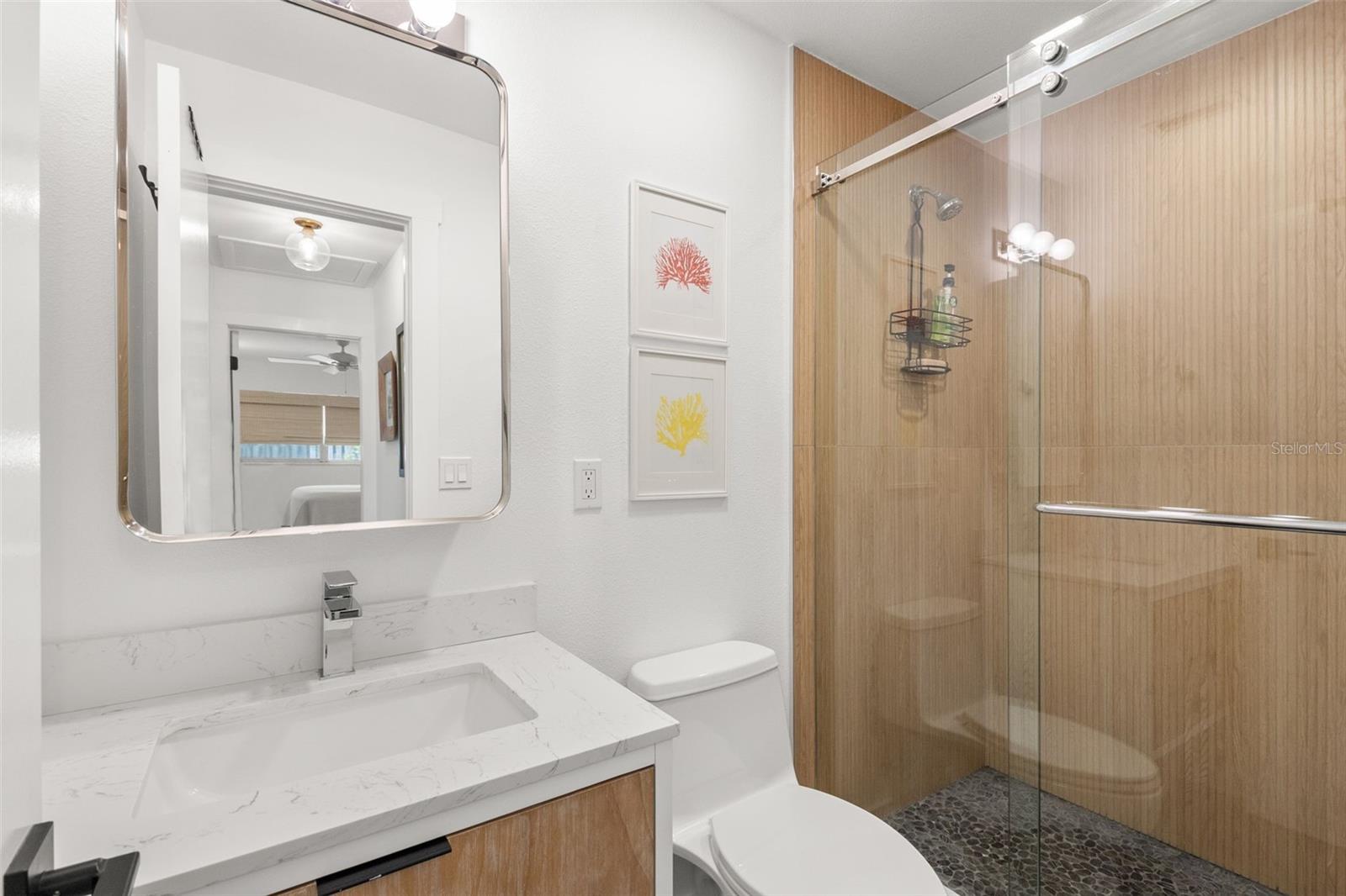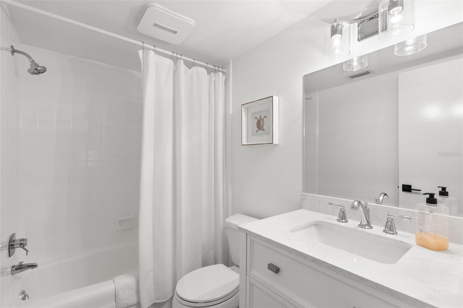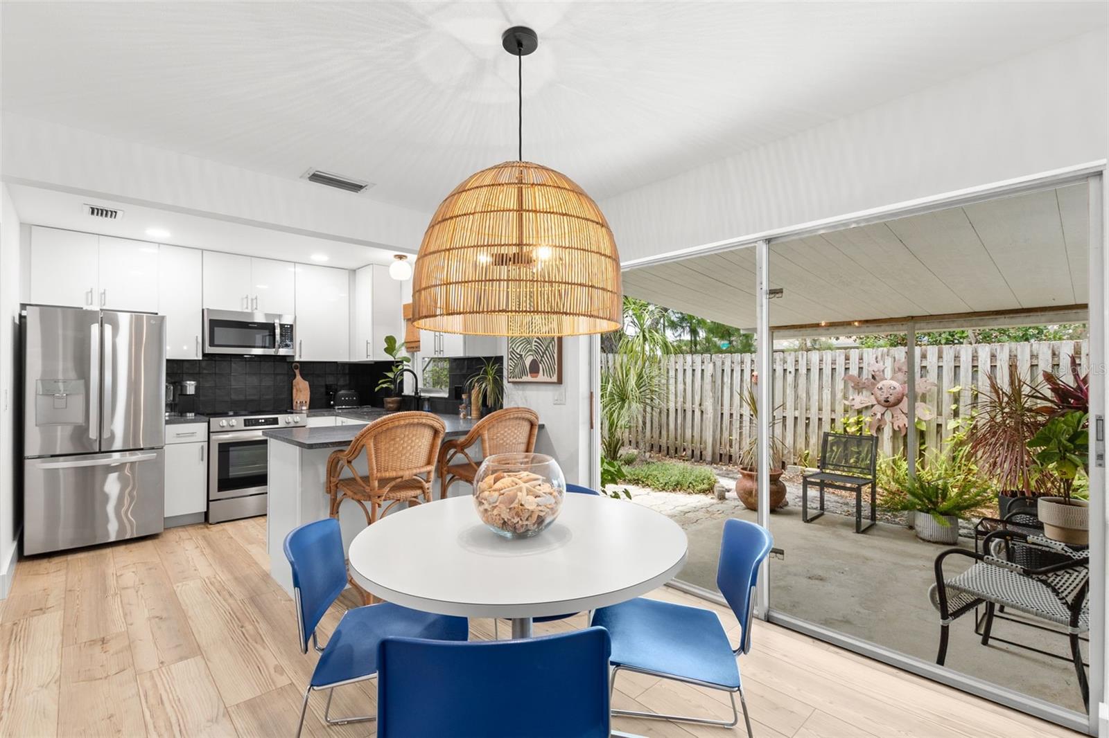 Your opportunity to be in the 55+ community of Rothmoor Estates!! A true gem, this 1BR/2BA/1CG villa style condominium has been almost completely renovated. Starting with impact rated front two windows and storm door, enter into the bright, freshly painted living room with a shiplap accent wall. You will immediately notice new luxury vinyl plank floors, 6" baseboards, retextured ceiling, ceiling fans, and hardware through out. A full bathroom off the living room has a new vanity and gorgeous tile shower with a clear glass barn style door. Nicely sized primary bedroom has plenty of closet space and attached bath with new vanity and refinished shower. Stunning kitchen has all new Kraft Maid cabinets, granite countertops, recessed lighting, stainless steel appliances, with an eat in dining area. Enjoy quiet mornings in your private back yard patio area. New electrical panel 2023, water heater 2023. Community amenities include pool, clubhouse, exterior maintenance, cable, internet, water, sewer, trash. Great central county location close to the beaches, shopping, and great restaurants. Tampa airport only 30 minutes away. Don't let this opportunity get away!!
